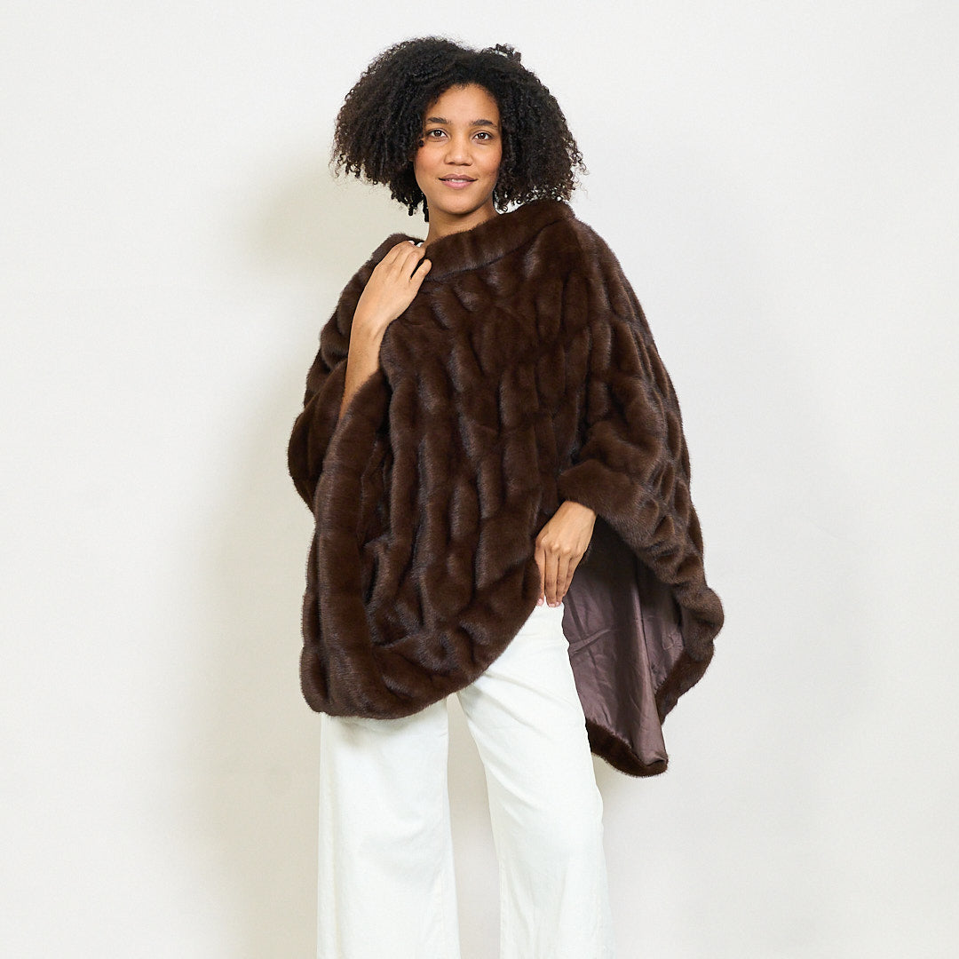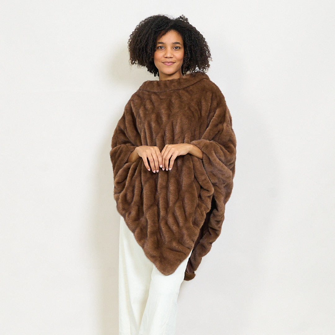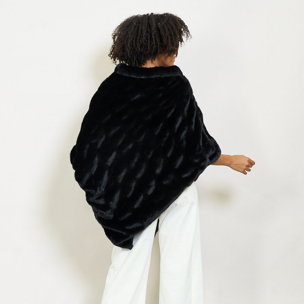 Pehmoinen fux -turkis poncho -viitta pehmeällä veneen pääntie tukkumyyntillä