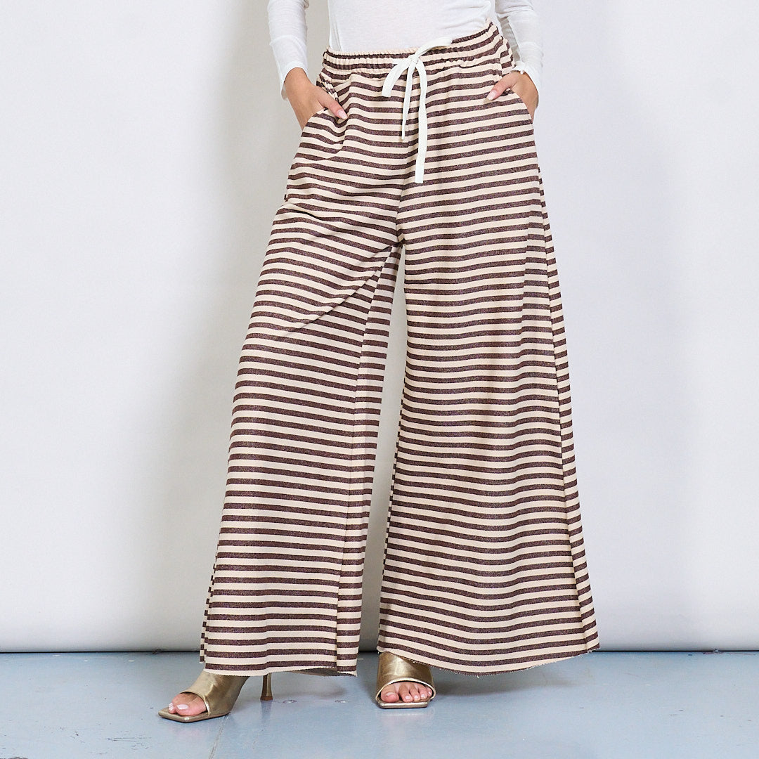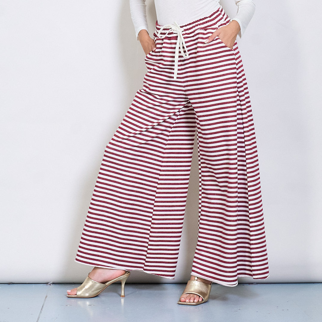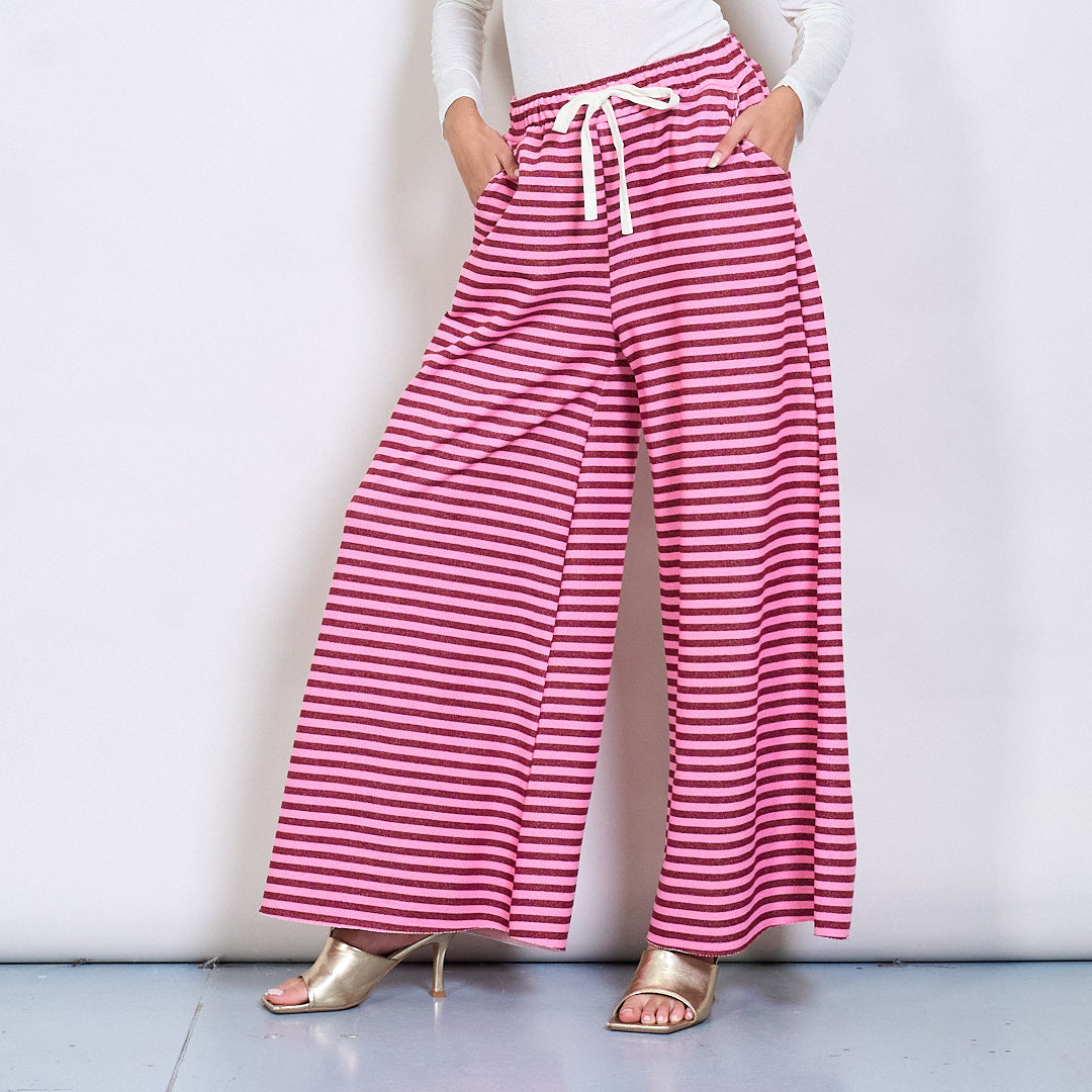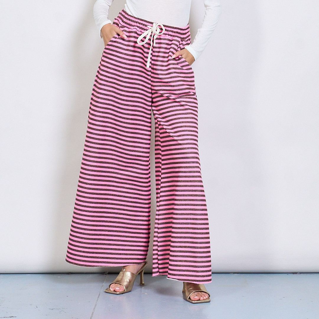 Pantalon à jambes larges rayés avec ceinture élastique et cordon de cordon en gros