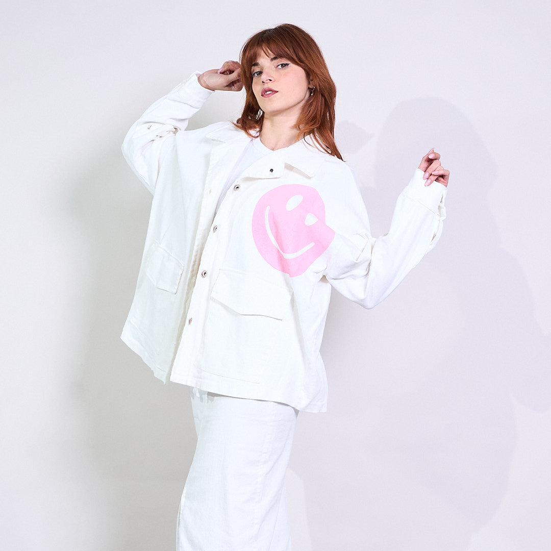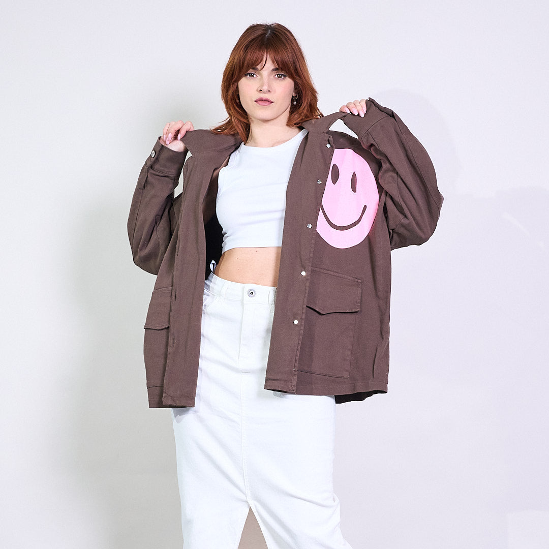 Veste de chemise boutonnée graphique souriante surdimensionnée en gros