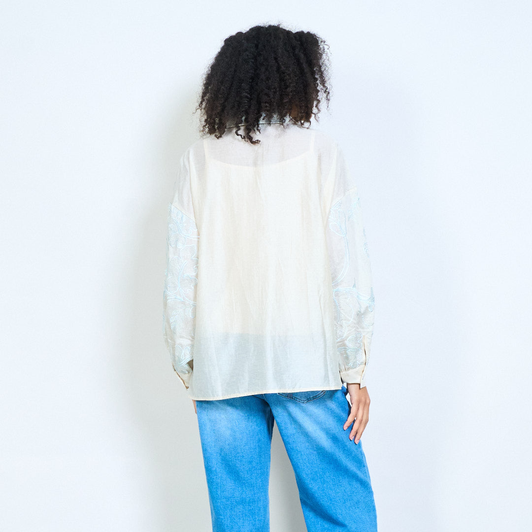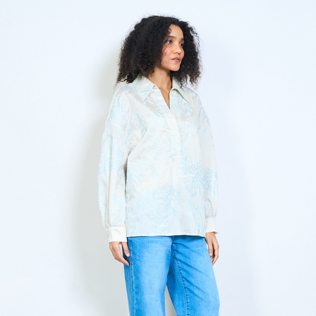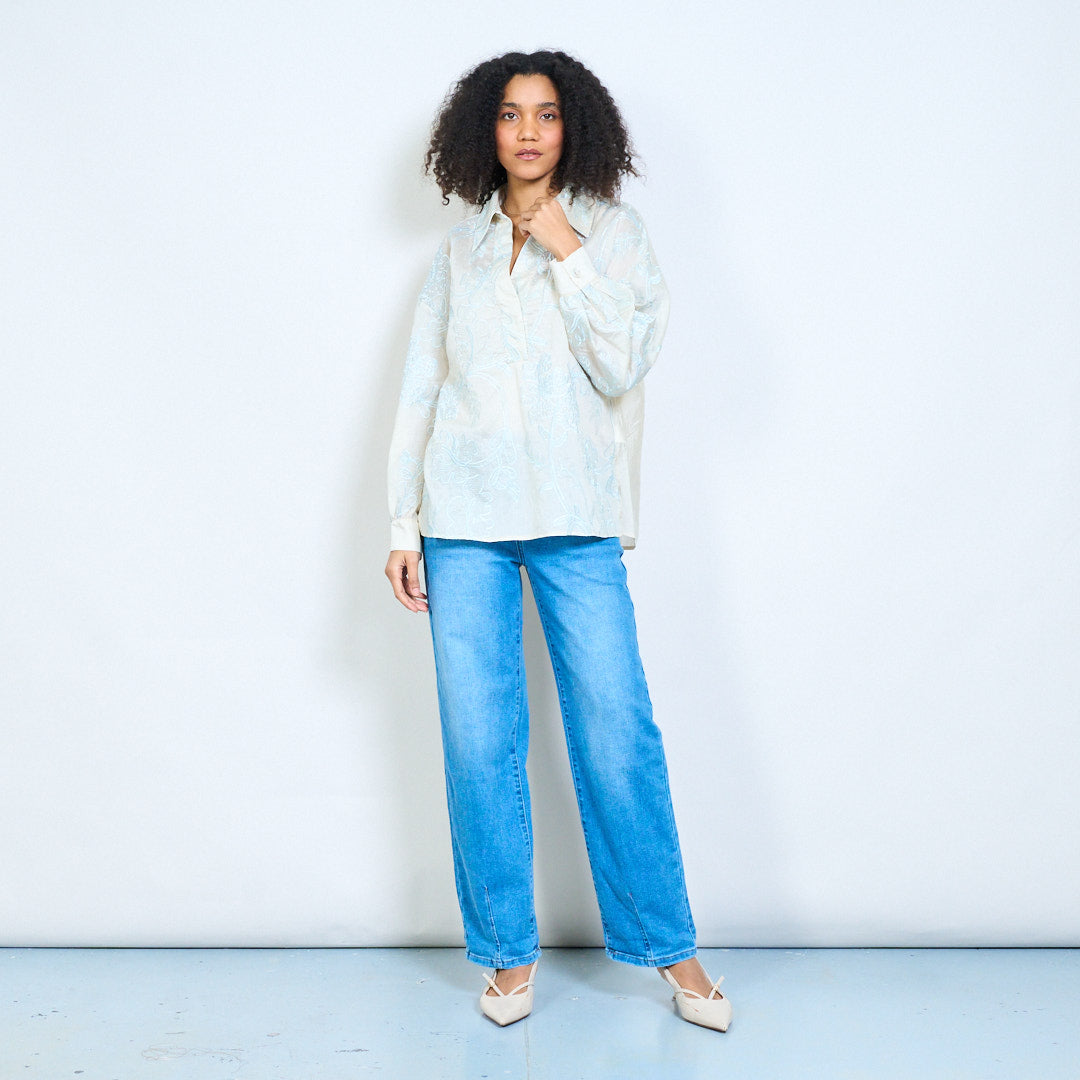 Chemisier à manches longues et col en V en jacquard texturé floral, vente en gros