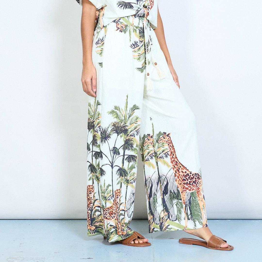 - Pantalon large avec imprimé safari jungle sur l'ensemble