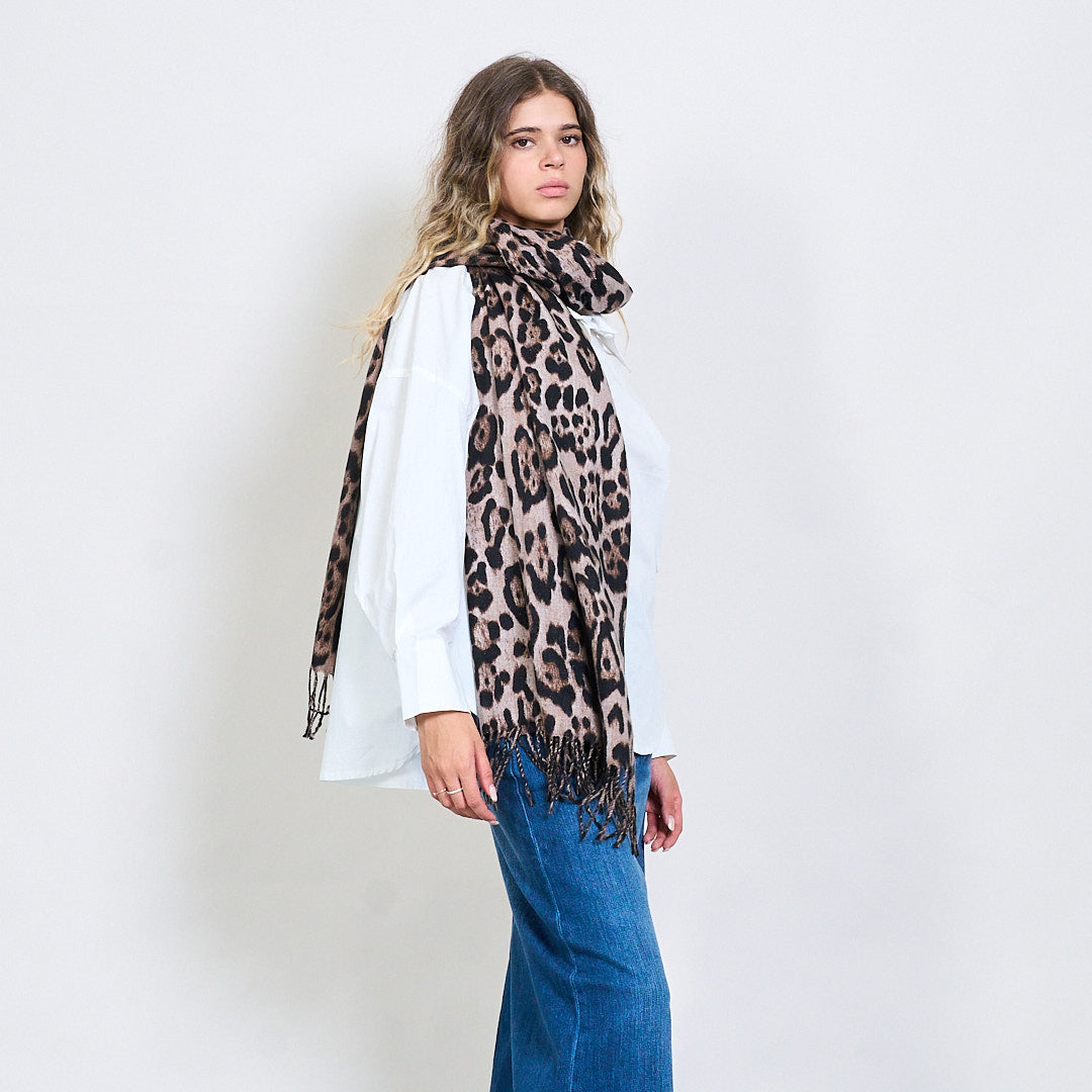 Écharpe à motif d'ombre léopard avec le bord de gland en gros