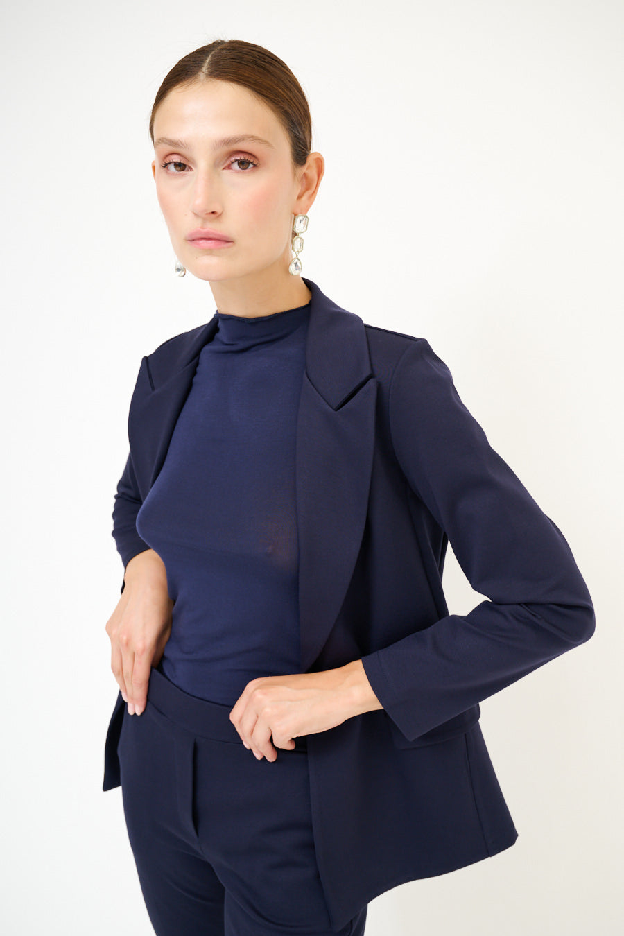 Blazer de la marine sur mesure avec des revers classiques et des poches de volet en gros