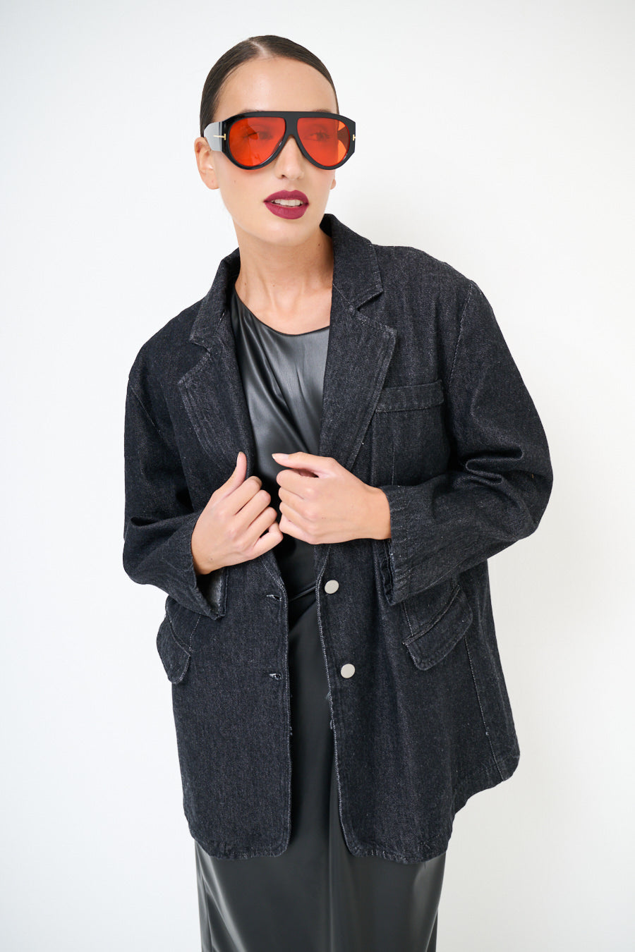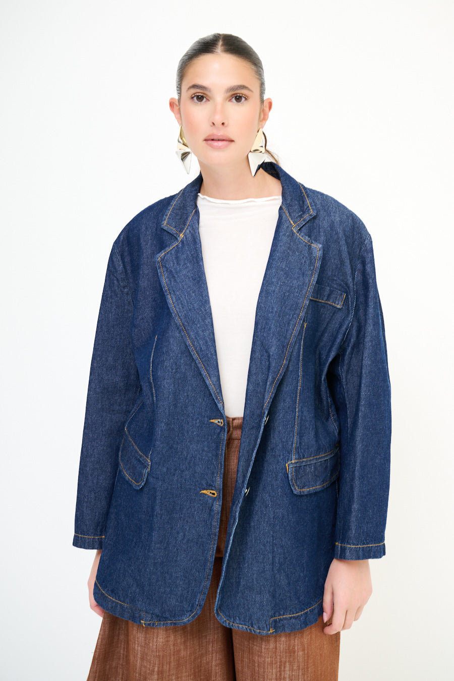 - Conception structurée d'inspiration du blazer en tissu en denim