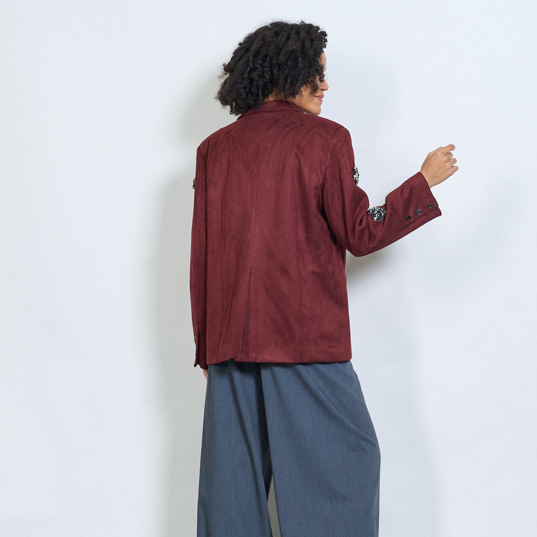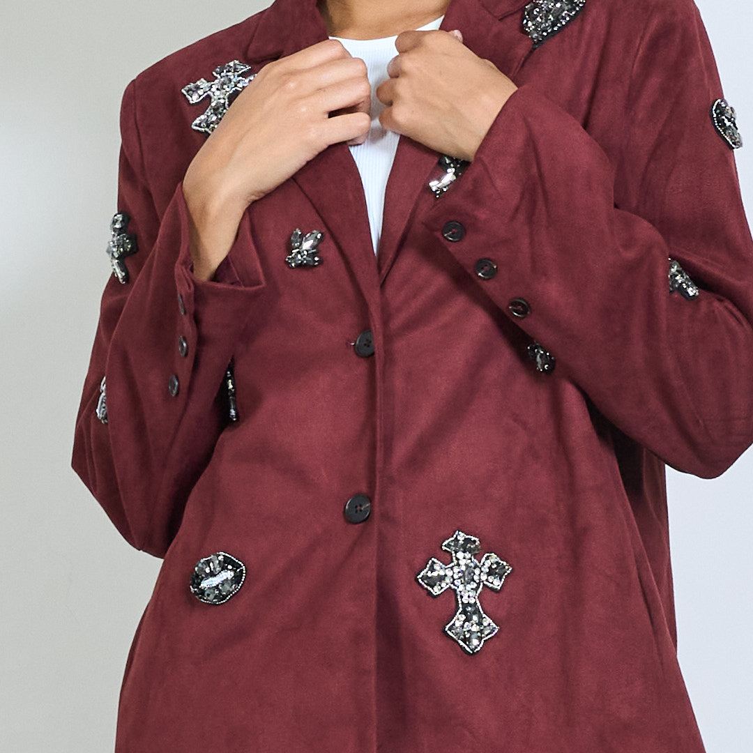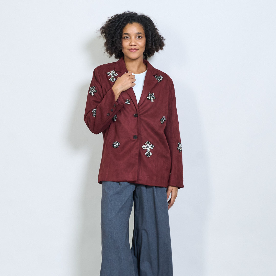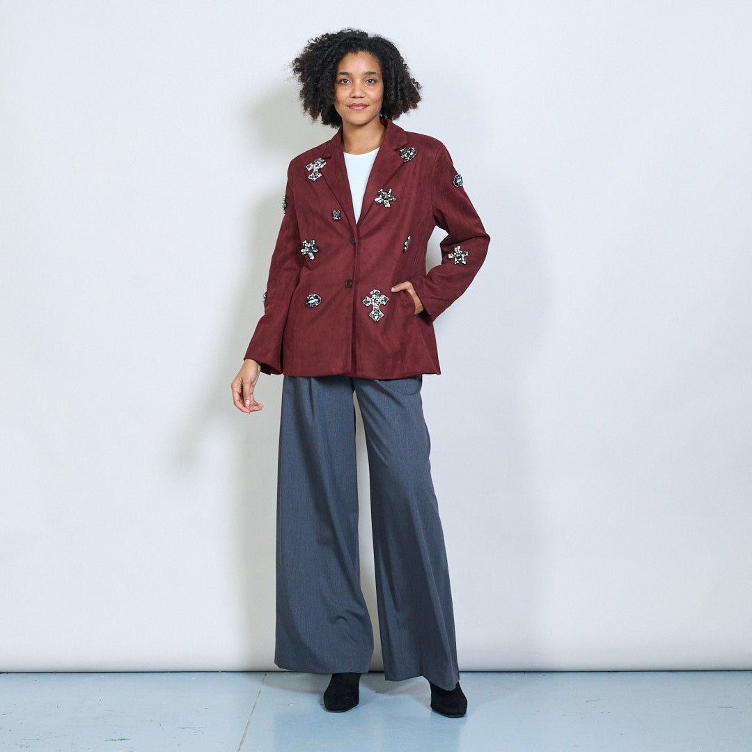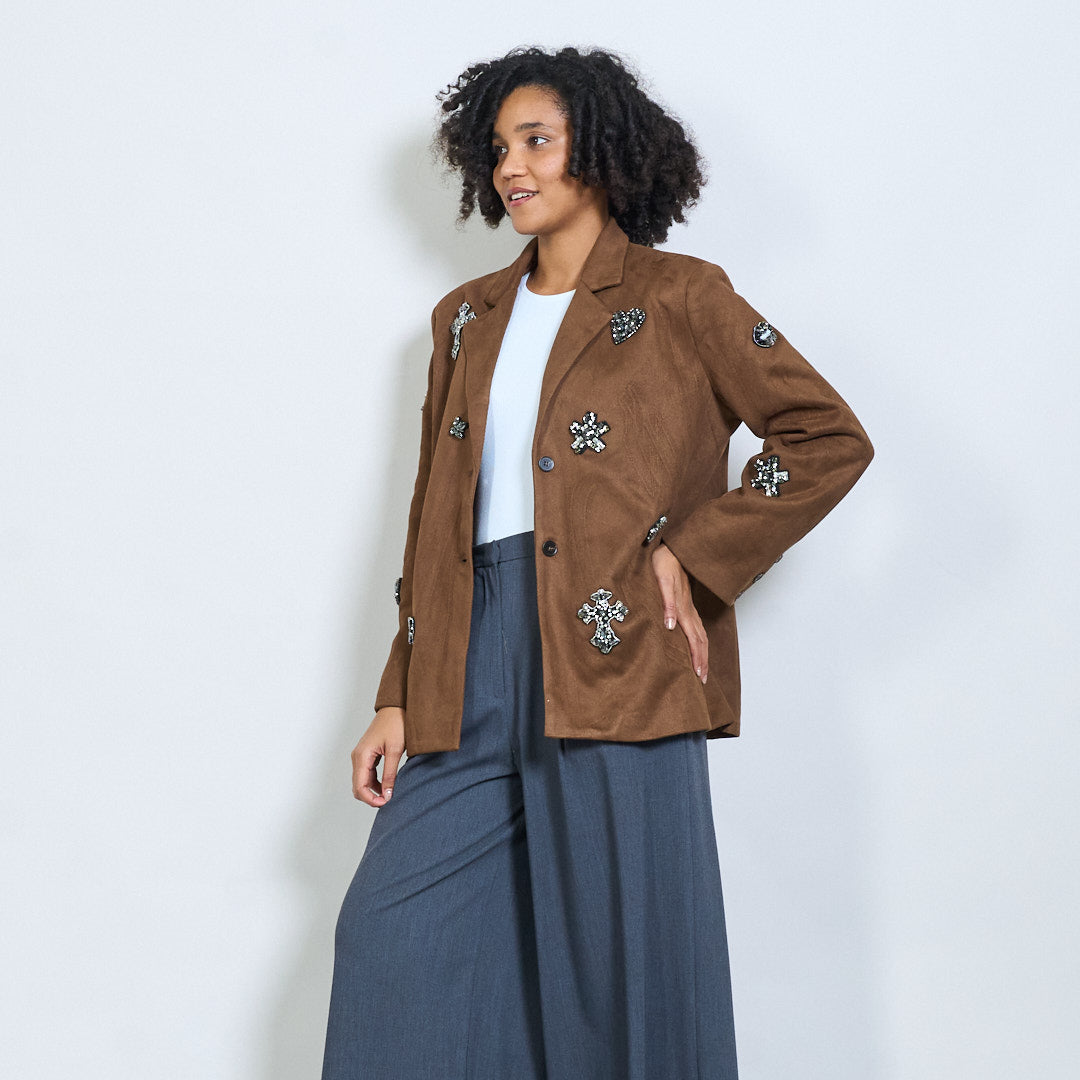 - Blazer sur mesure audacieux enrichi d'applications de style bijou