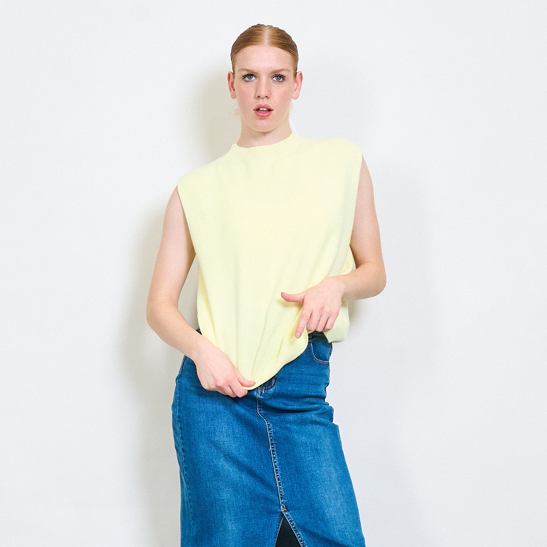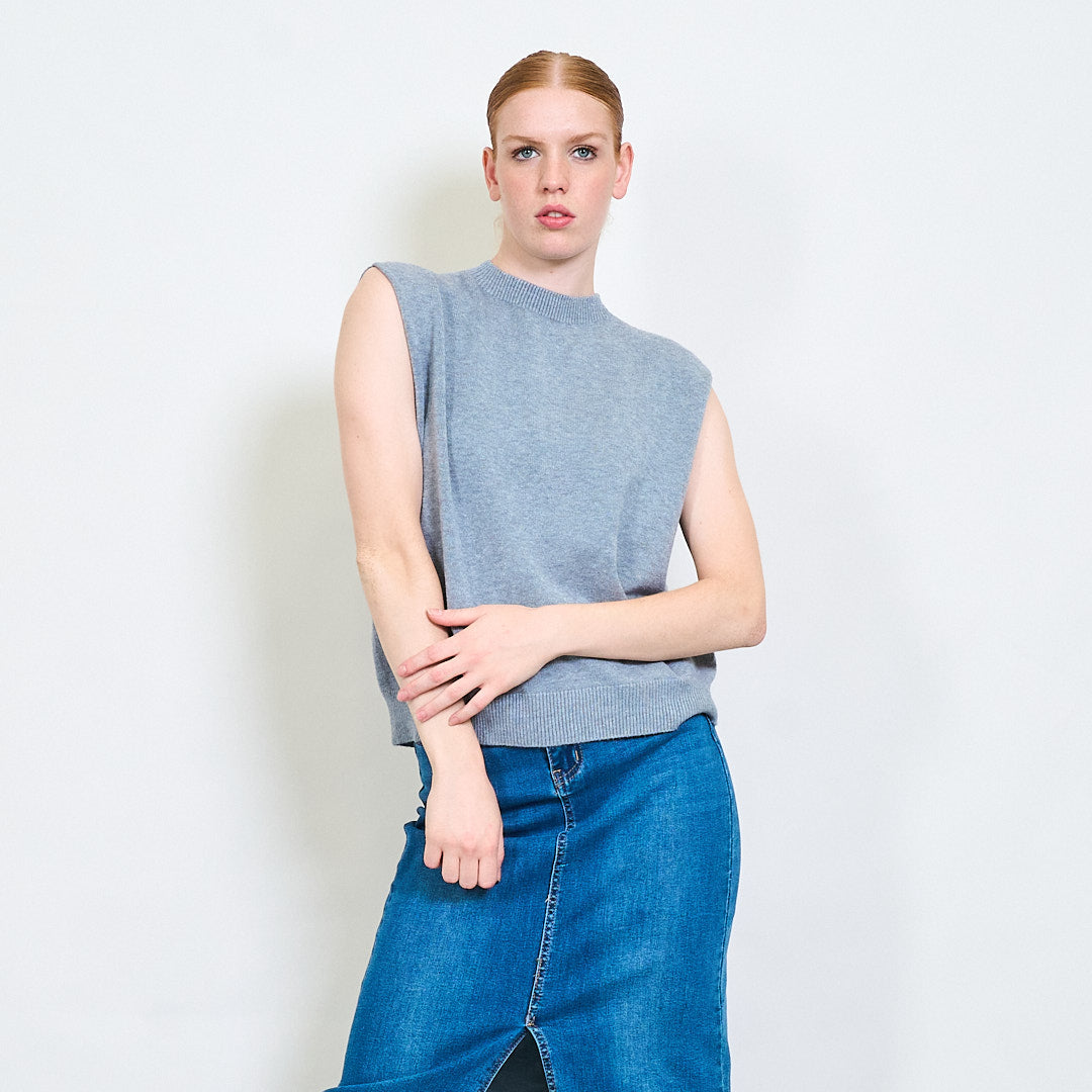 Gilet en tricot sans manches à l'équipage avec finition côtelée en gros