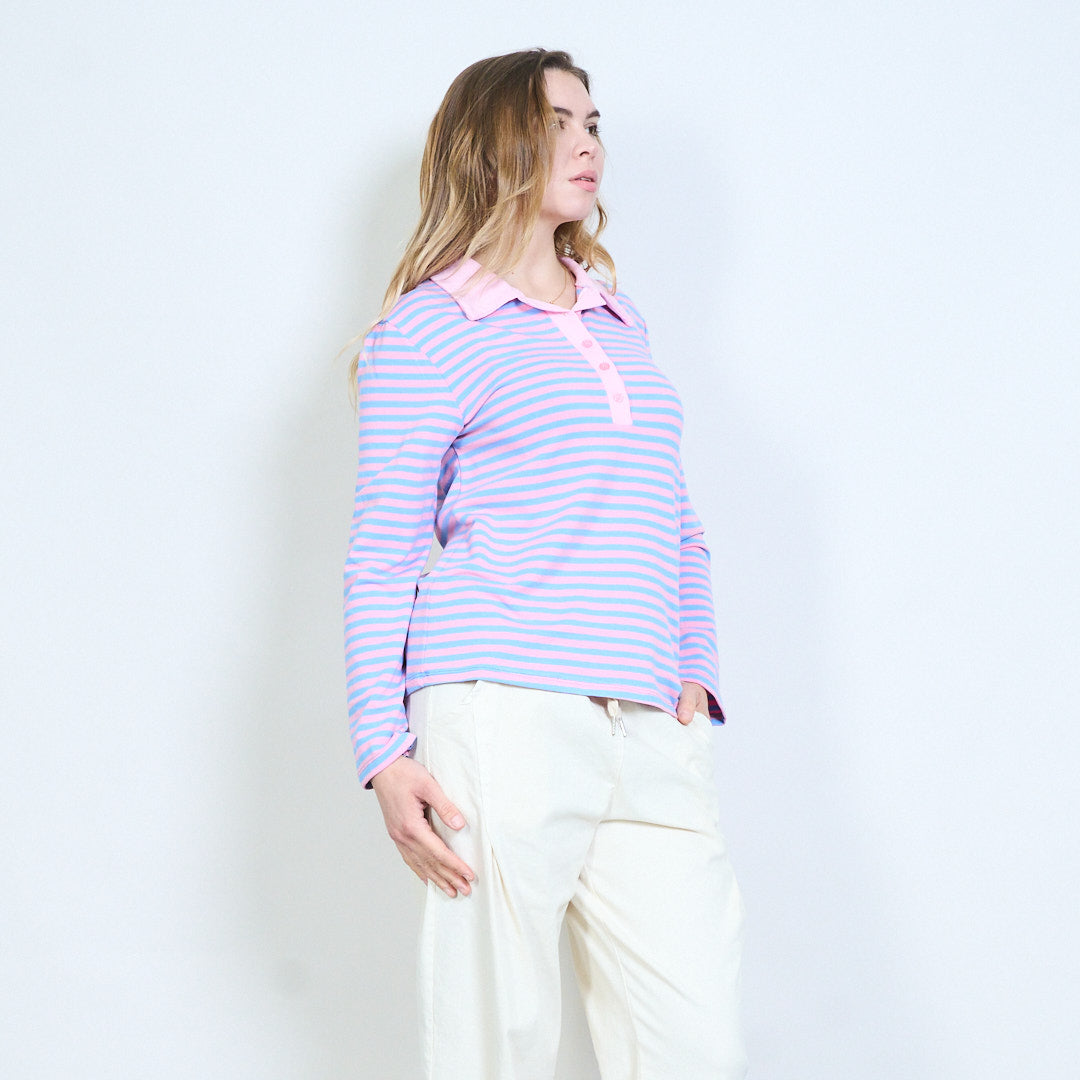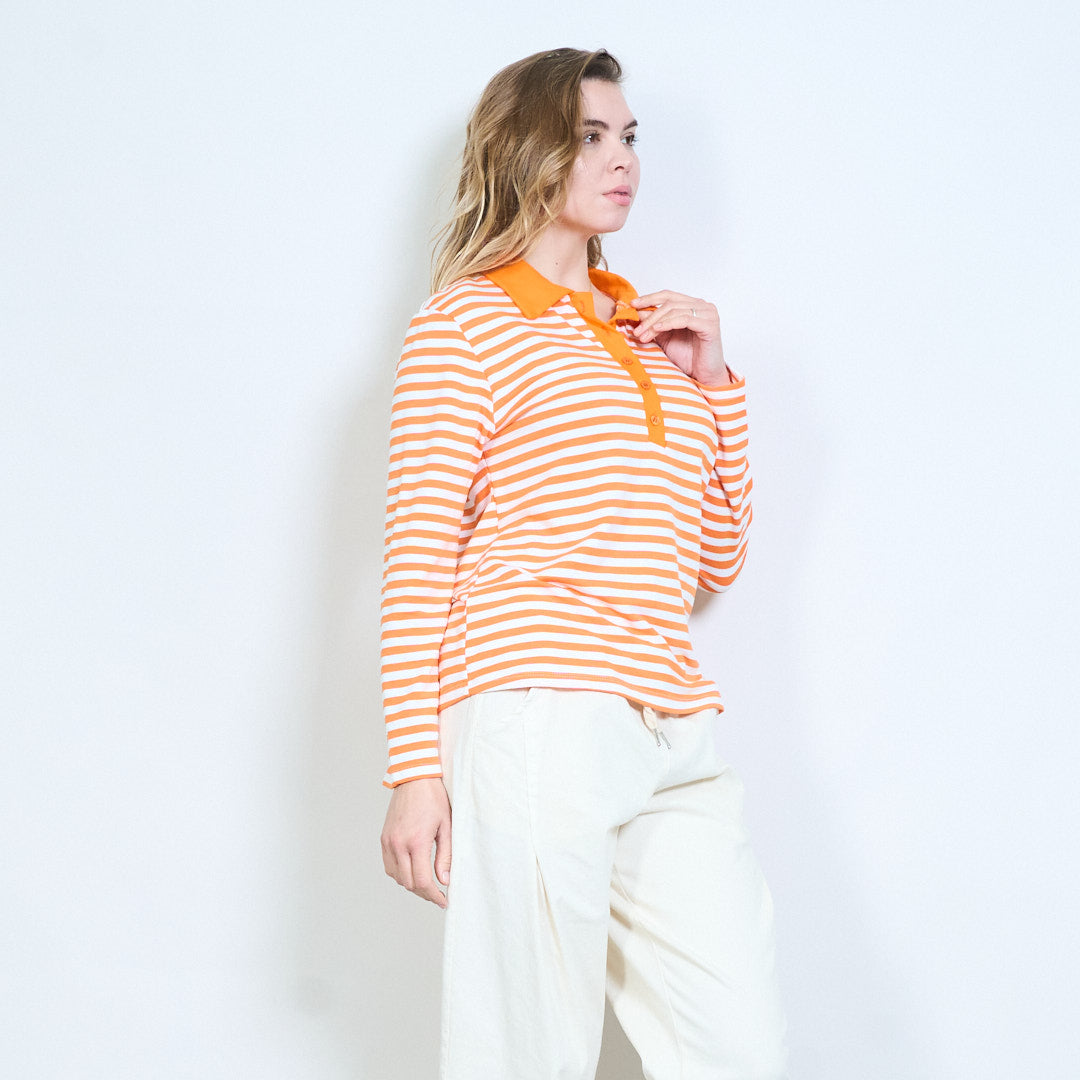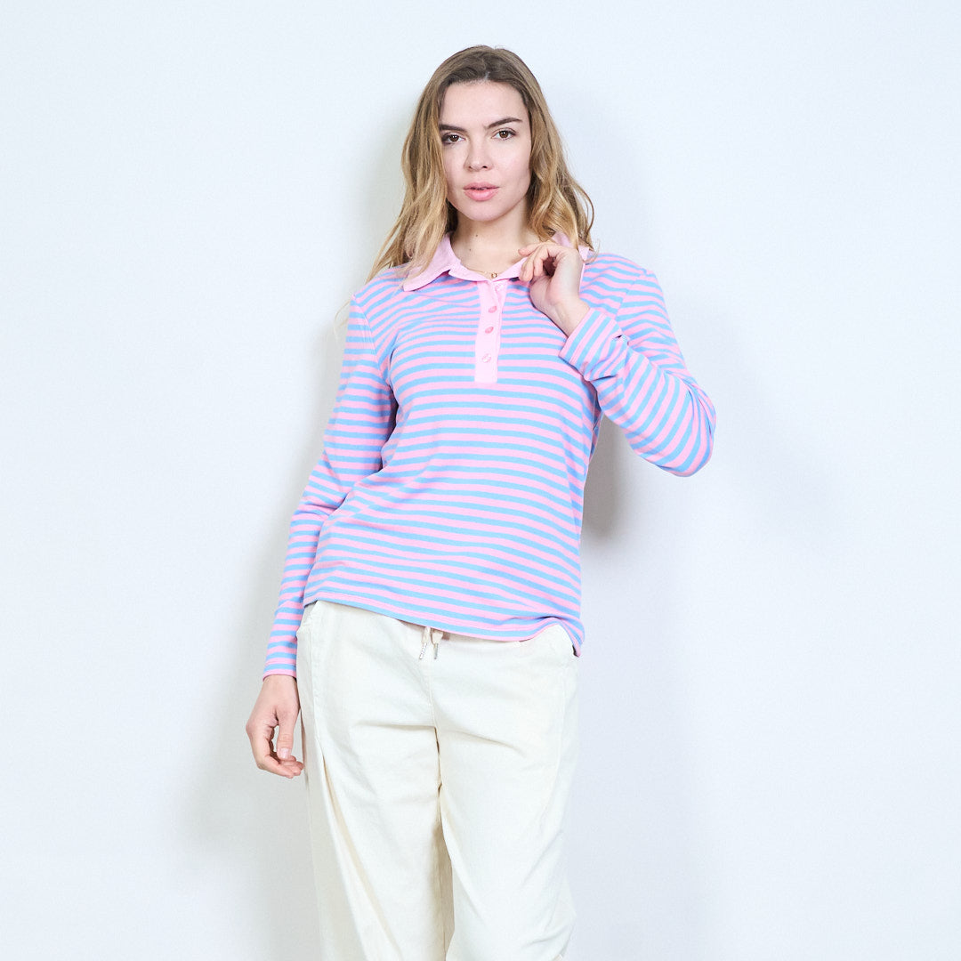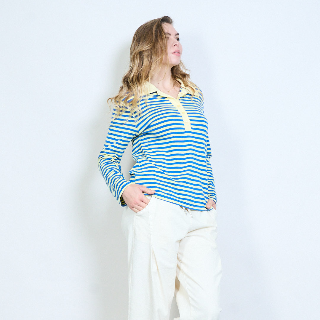 Pull polo rayé à manches longues avec patte de boutonnage en gros