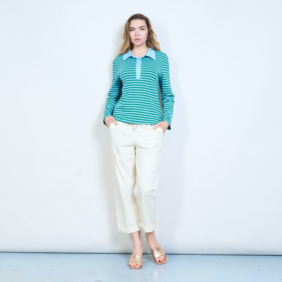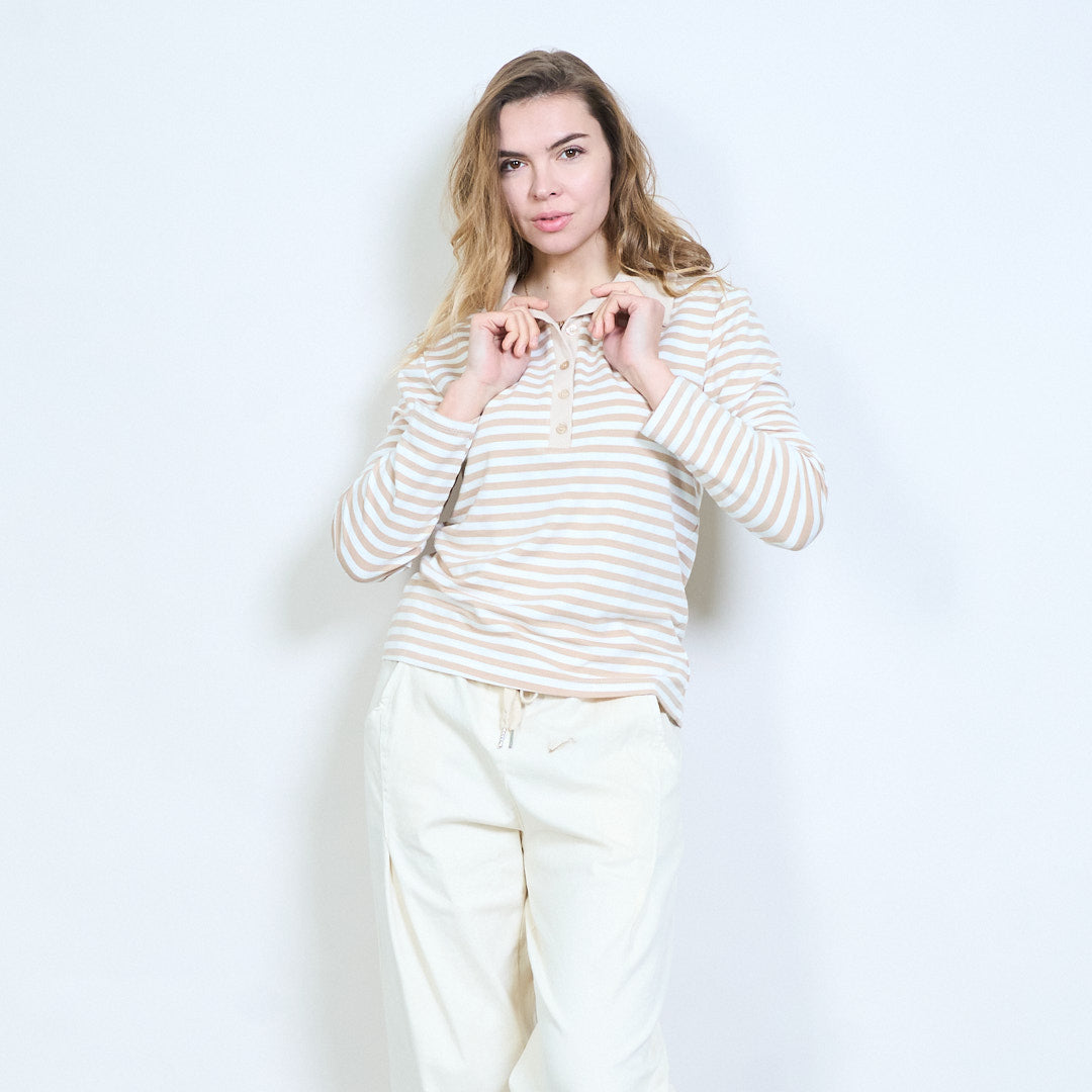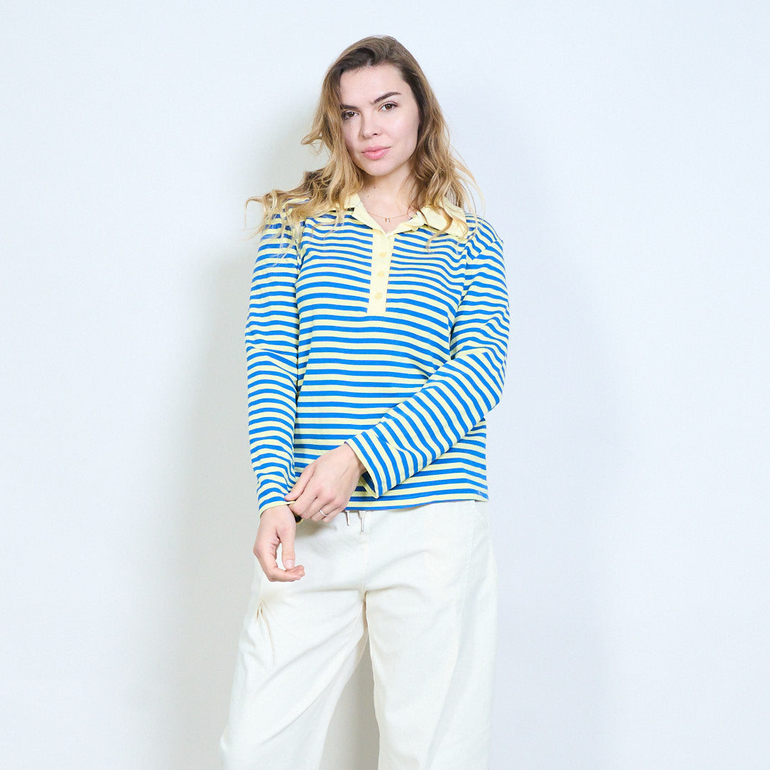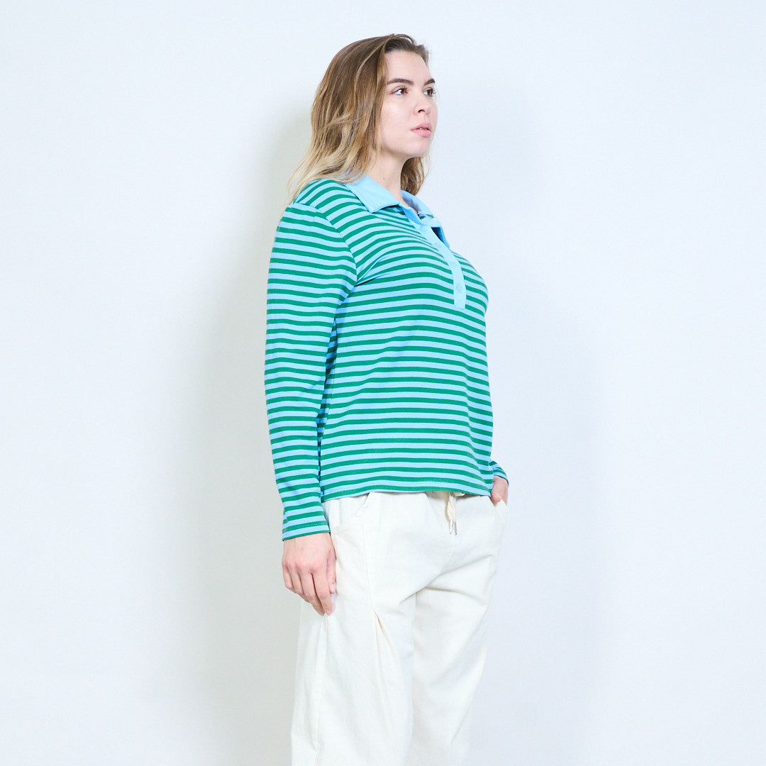 Pull polo rayé à manches longues avec patte de boutonnage en gros