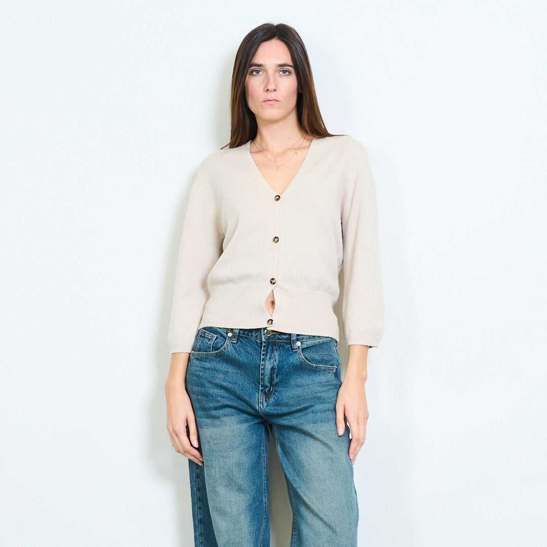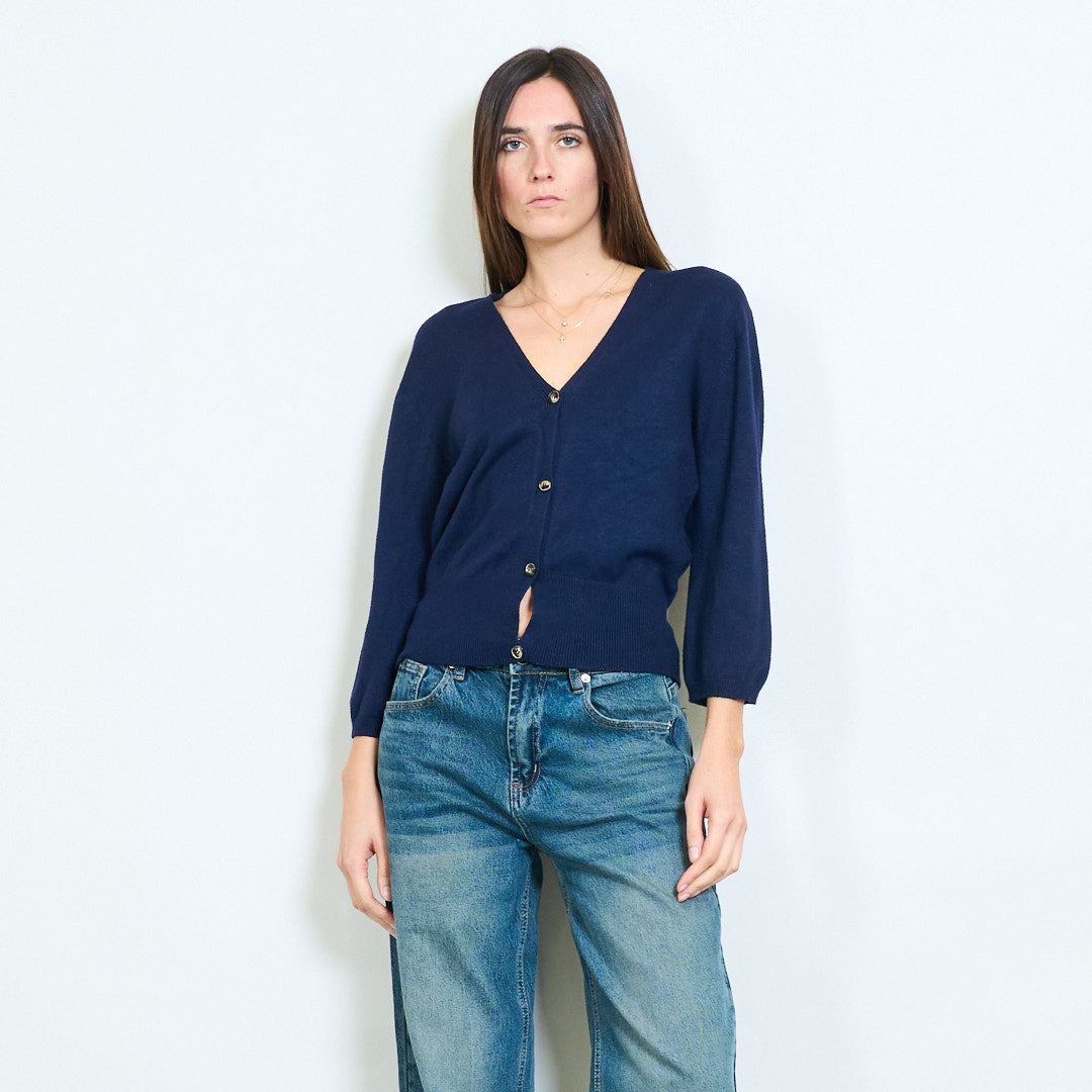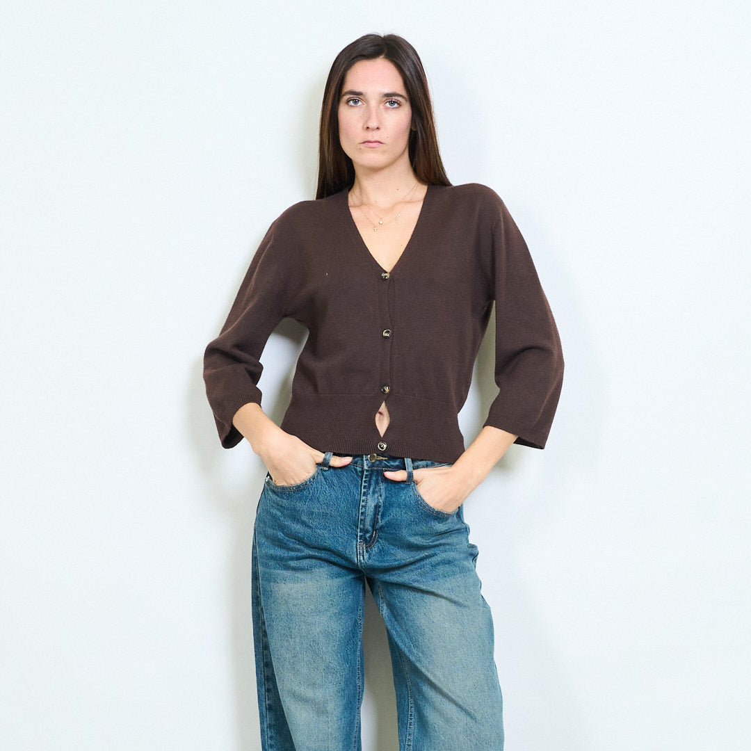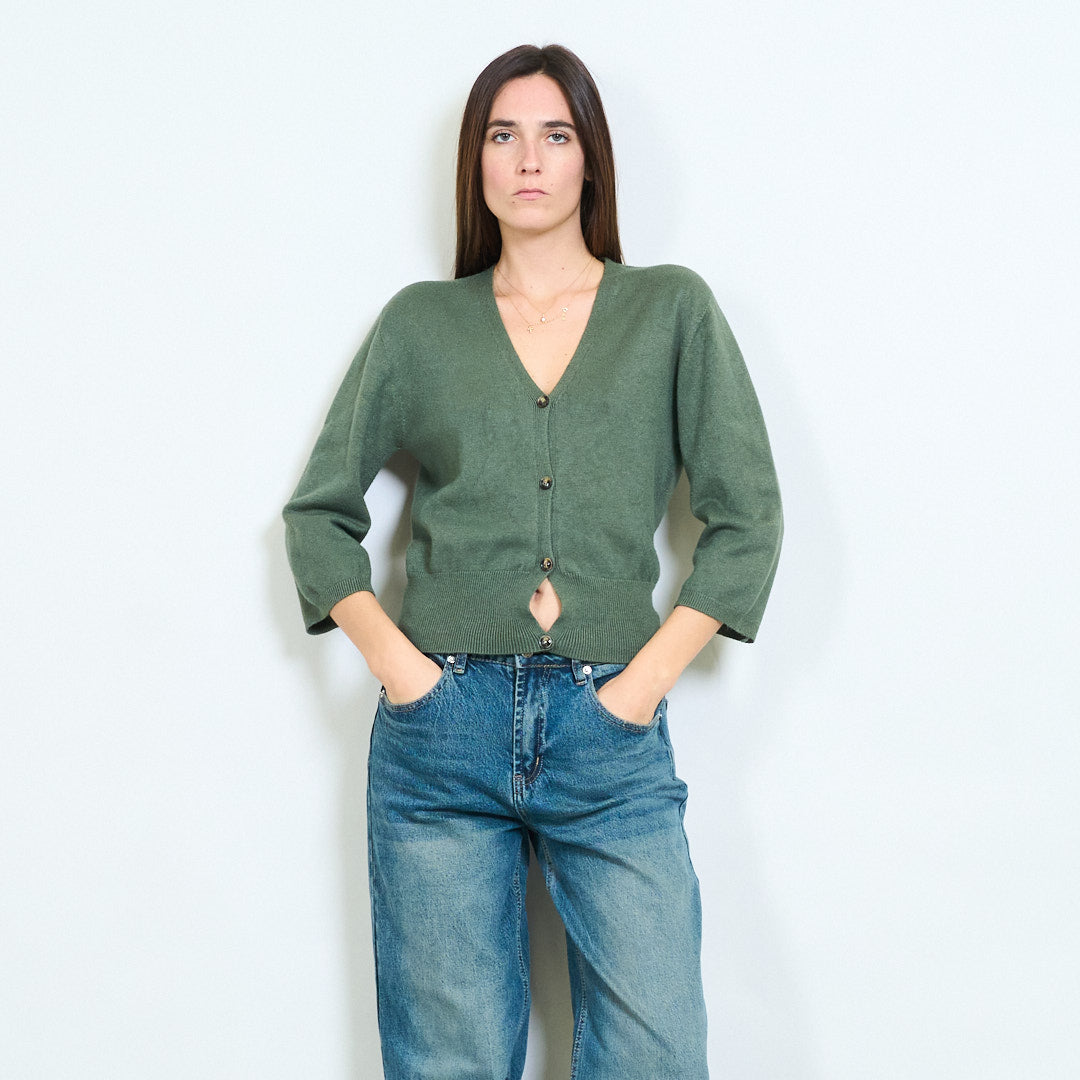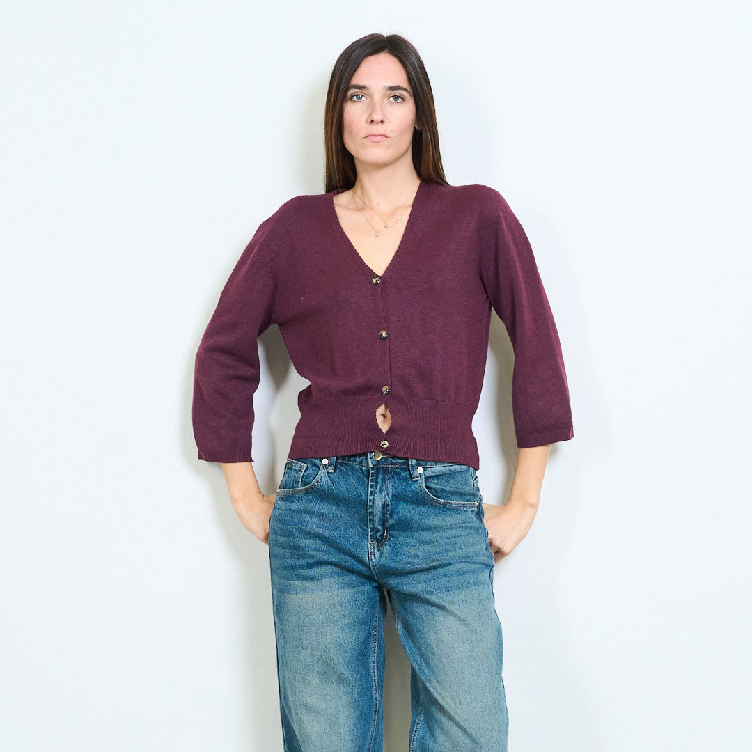 Cardigan en tricot boutonné sur le devant à col en V en gros
