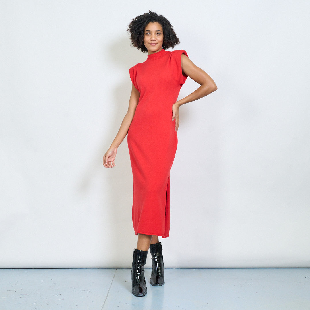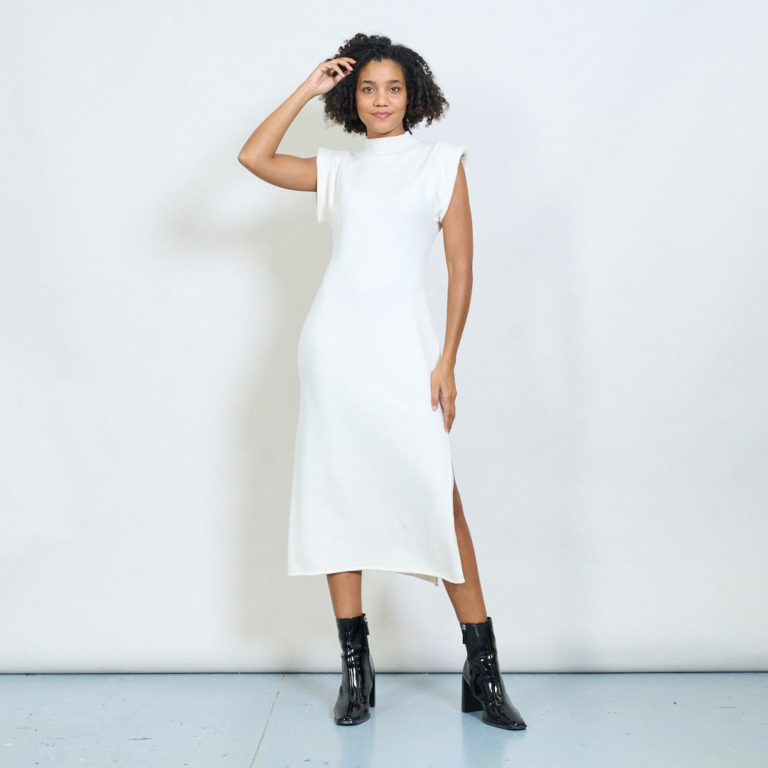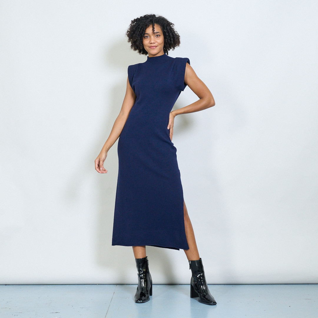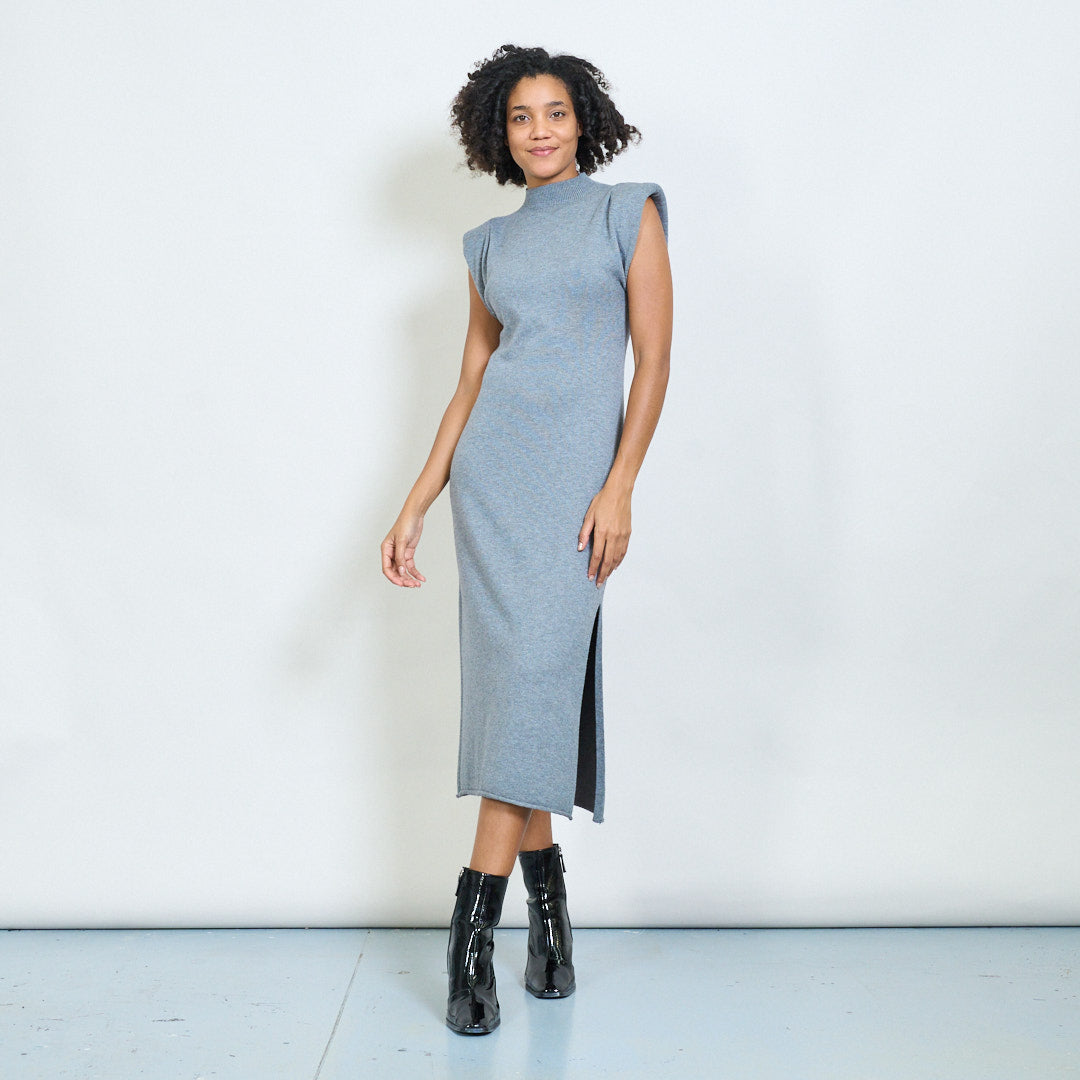 - Le décolleté côtelé haut ajoute un look chic et surélevé