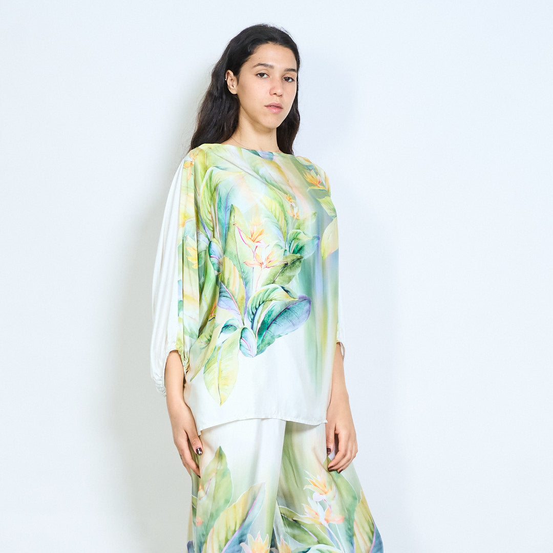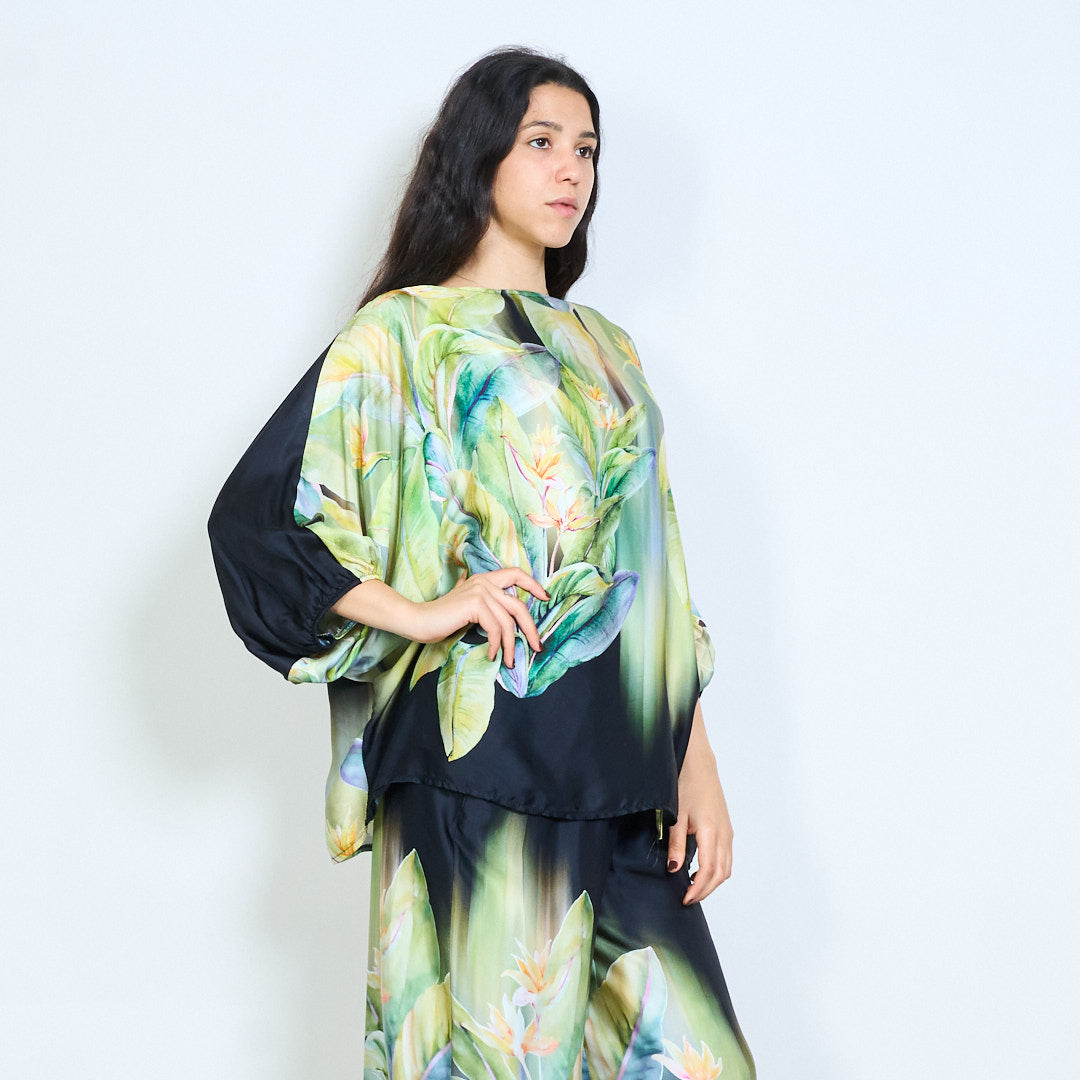 Blouse chauve-souris surdimensionnée à imprimé feuilles tropicales et fleurs en gros