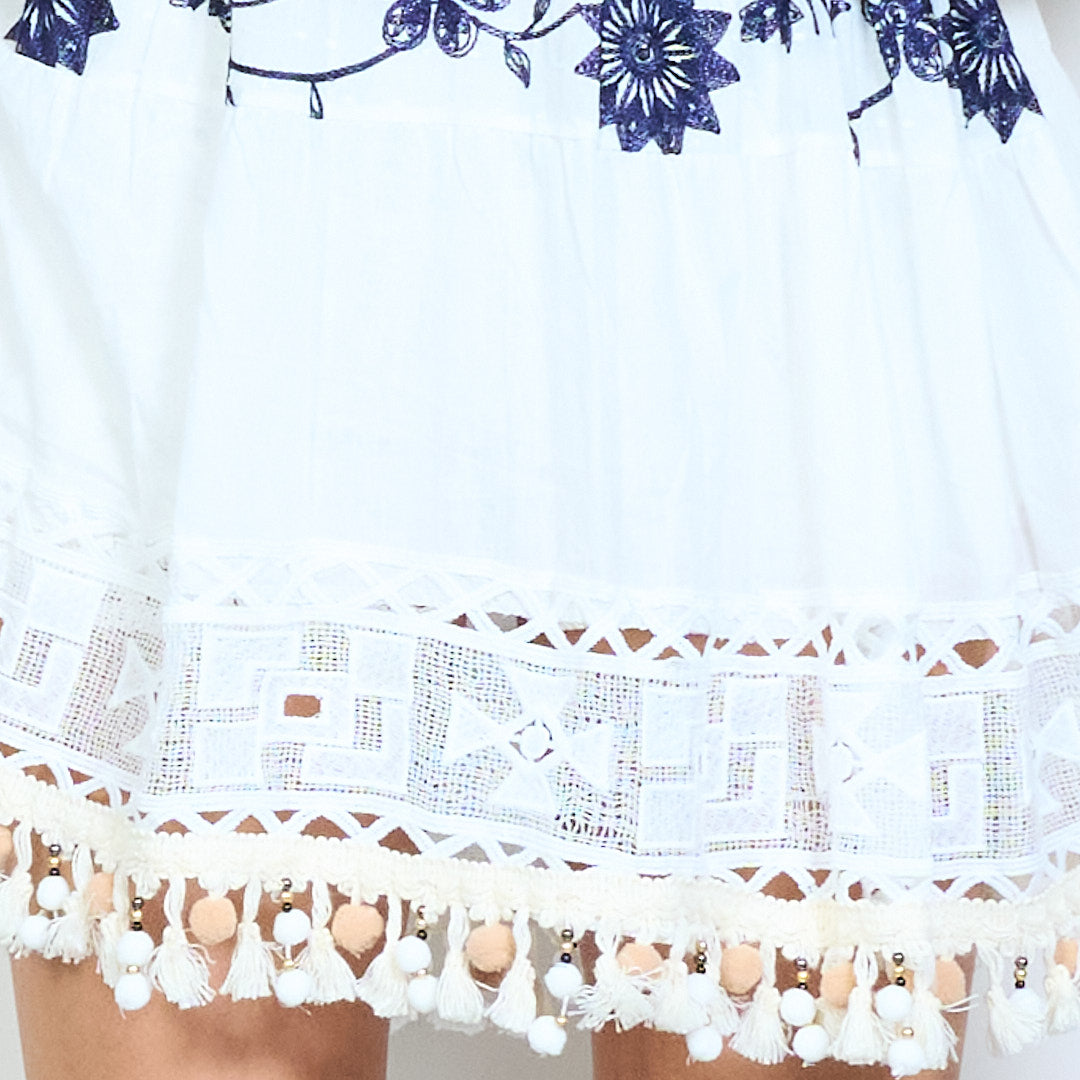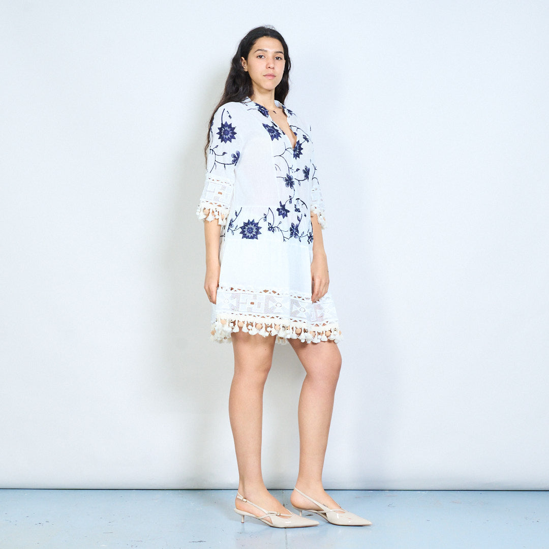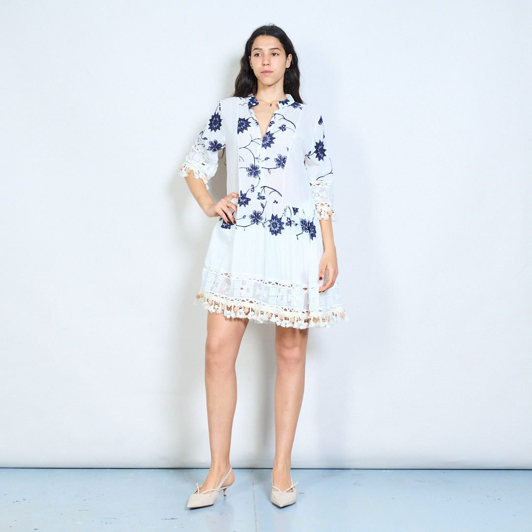 Mini-robe superposée en dentelle brodée florale, ourlet à pampilles, vente en gros
