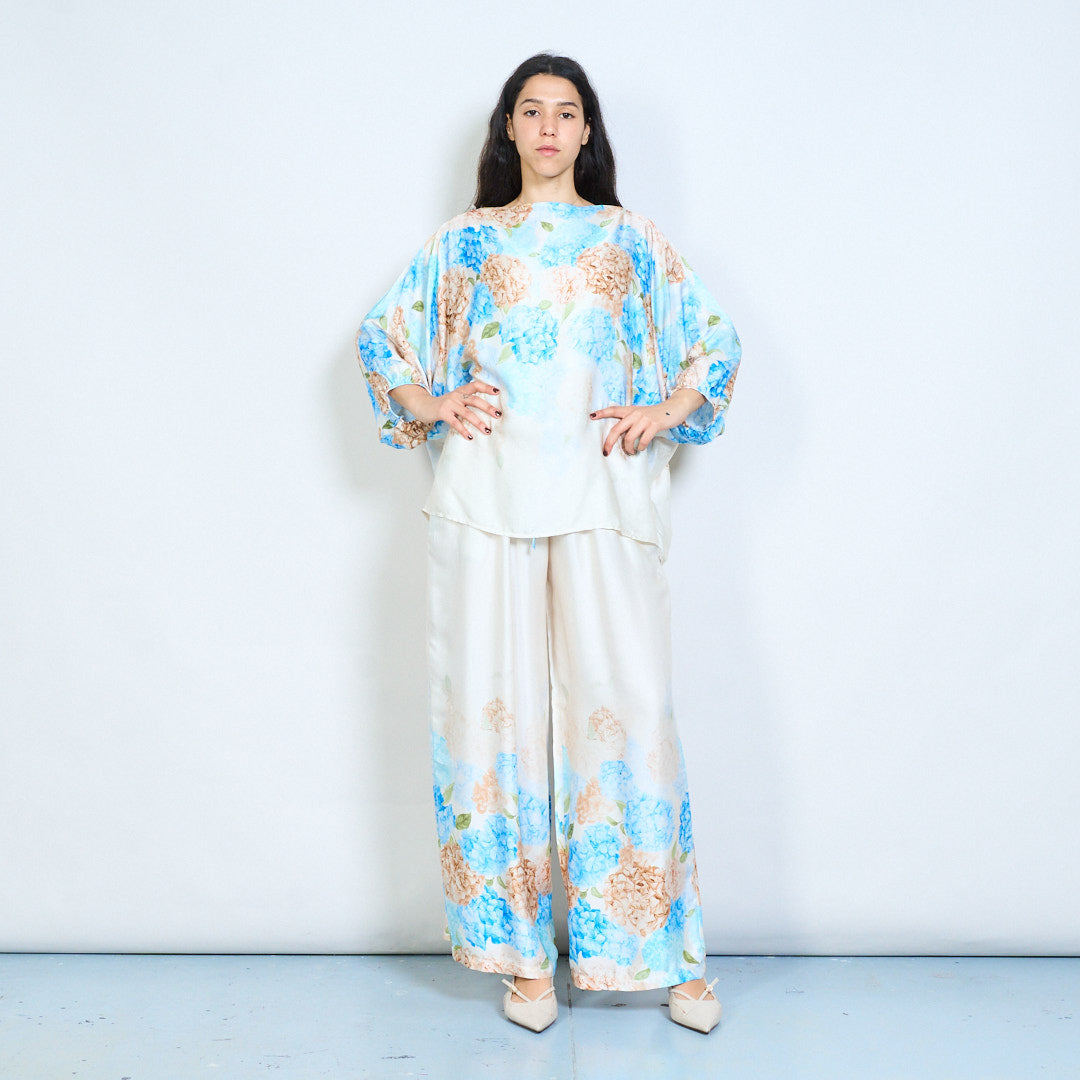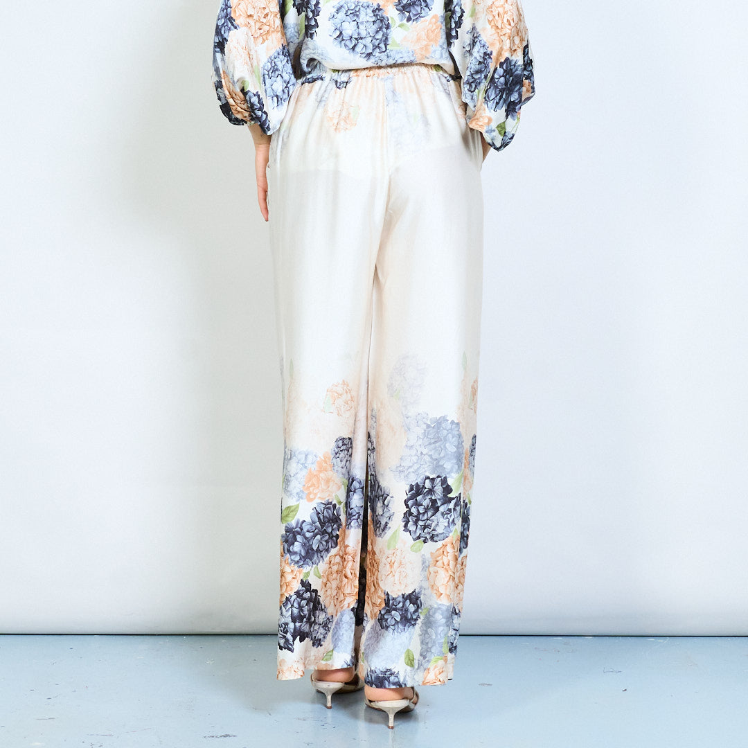 Pantalon large à taille élastique imprimé floral Hortensia, vente en gros