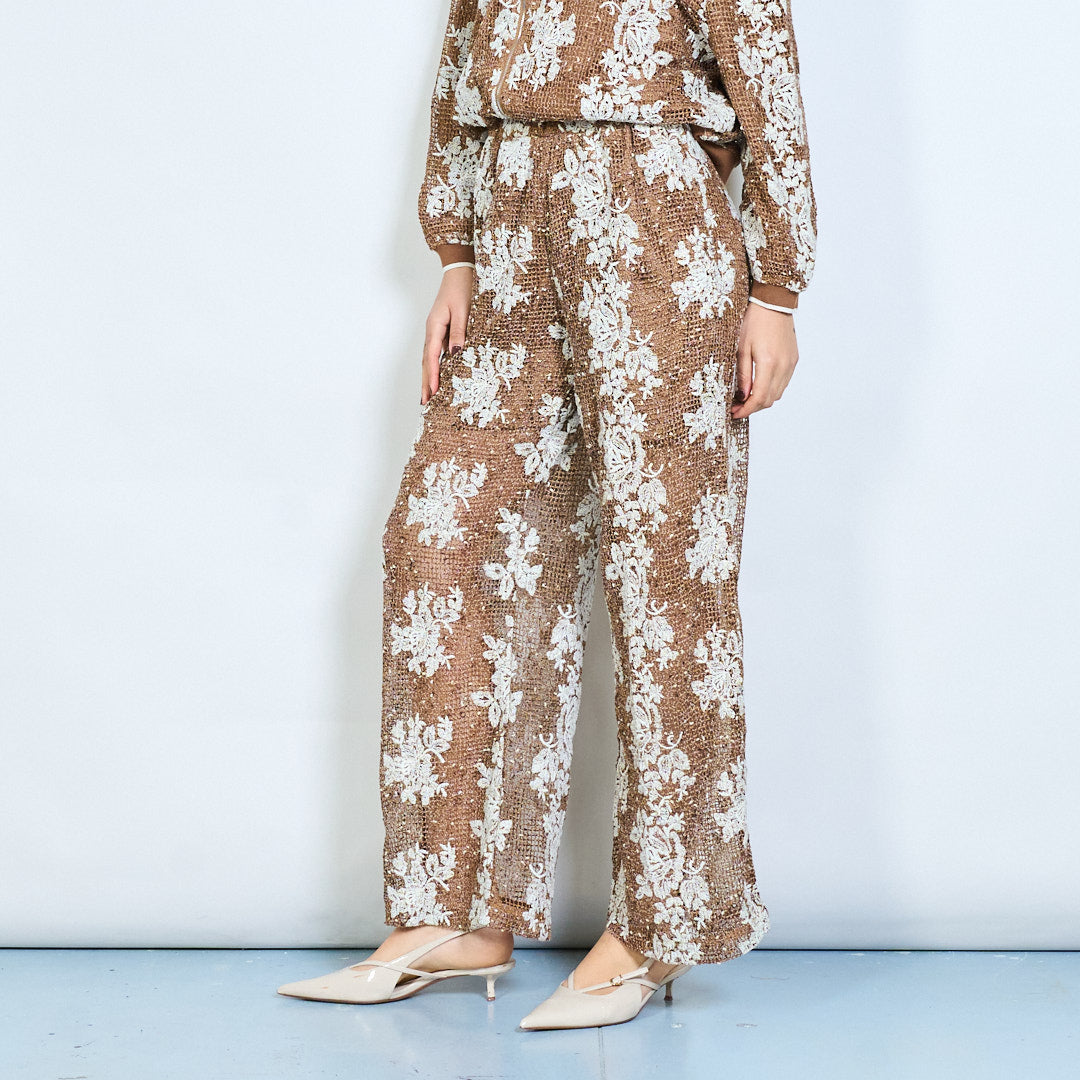 - Tissu texturé avec motif floral en relief sur toute la surface