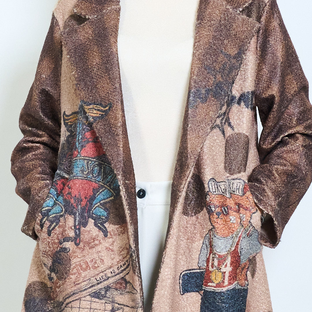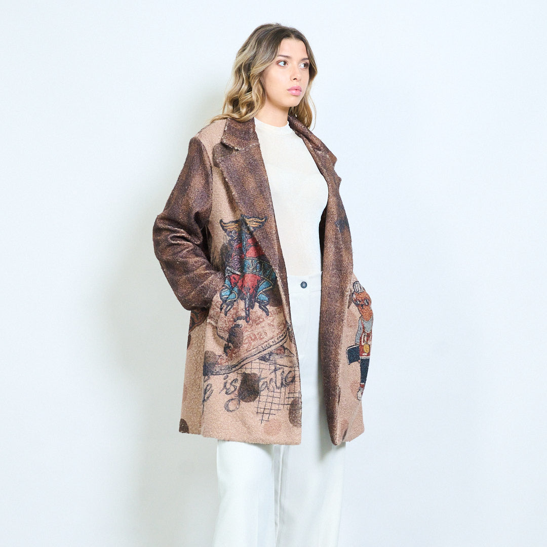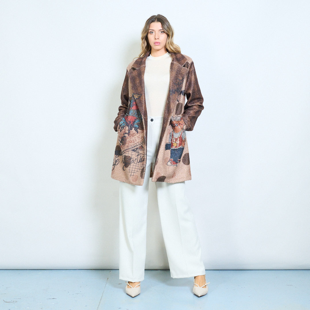 - Conception de blazer unique avec des imprimés ludiques inspirés des dessins animés et des textes