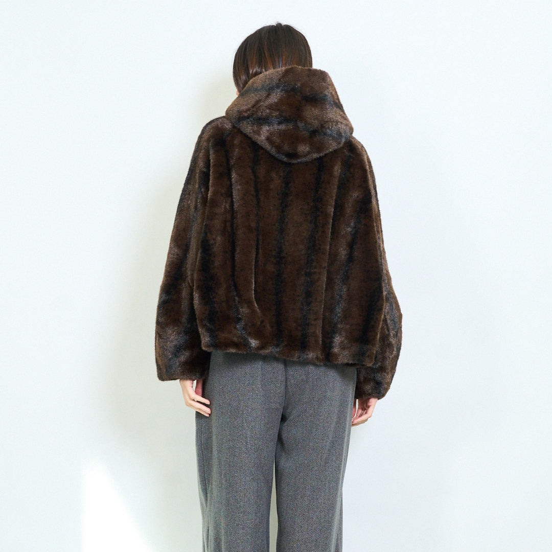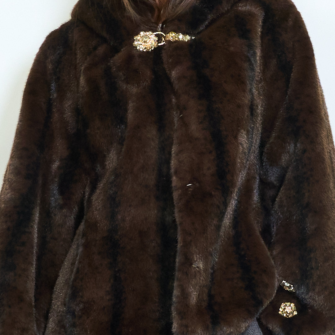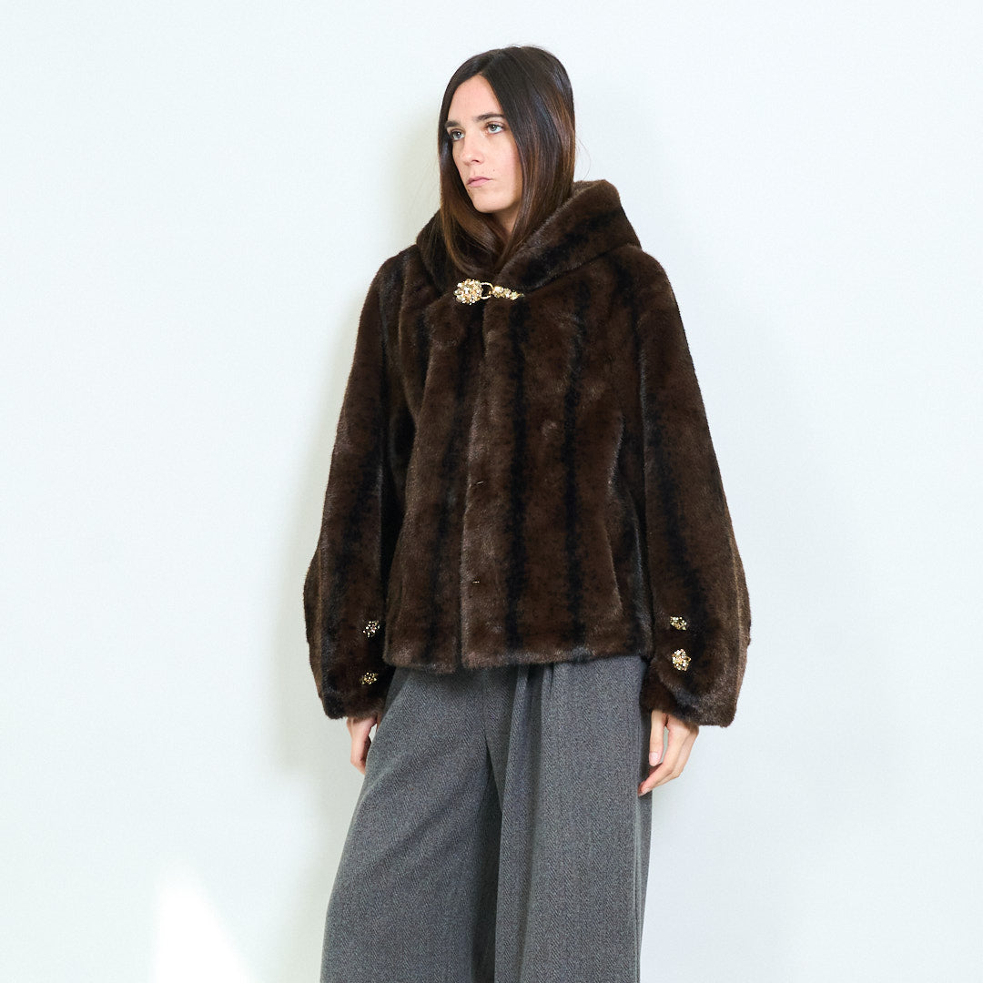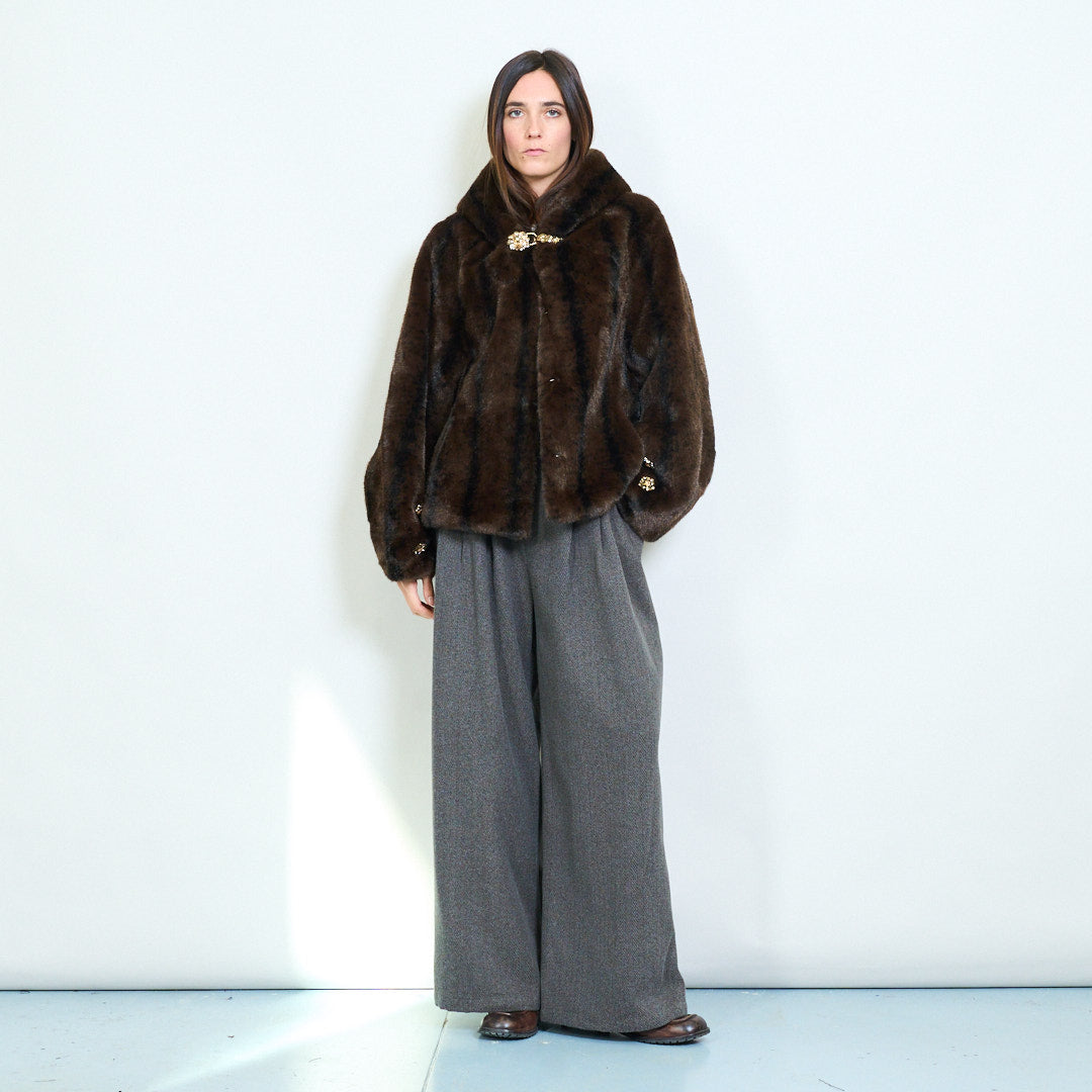 Manteau court chic en fausse fourrure avec fermoir bijou, vente en gros