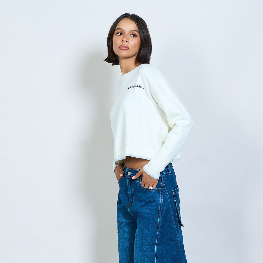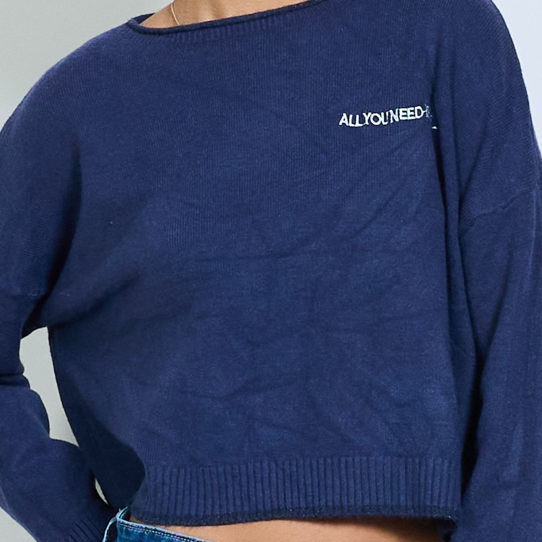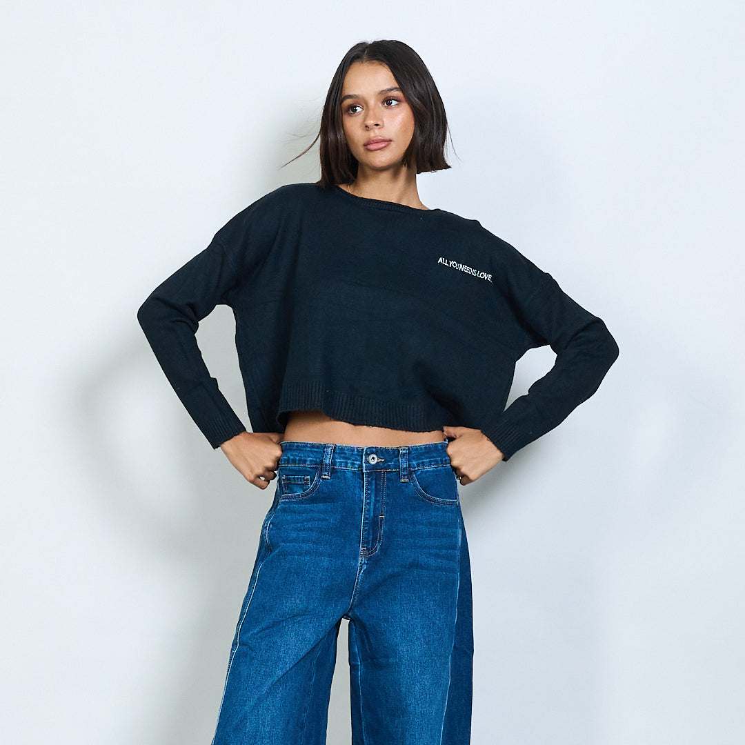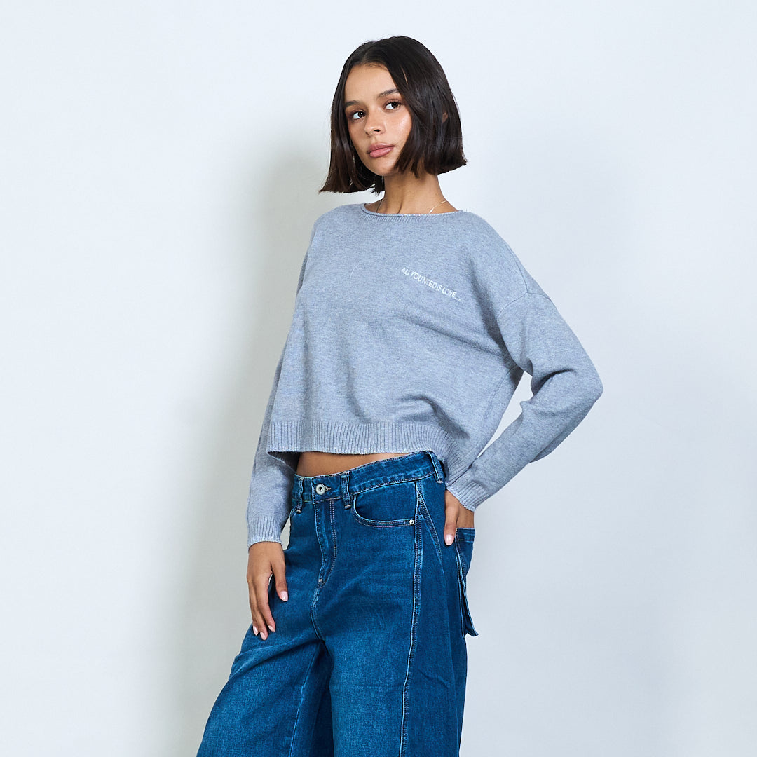 Pull en tricot recadré avec broderie de texte "Tout ce dont vous avez besoin est l'amour" en gros