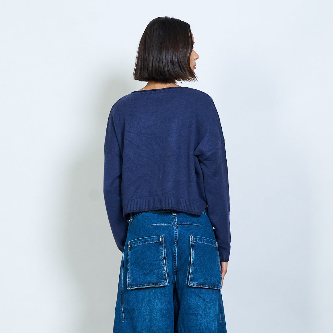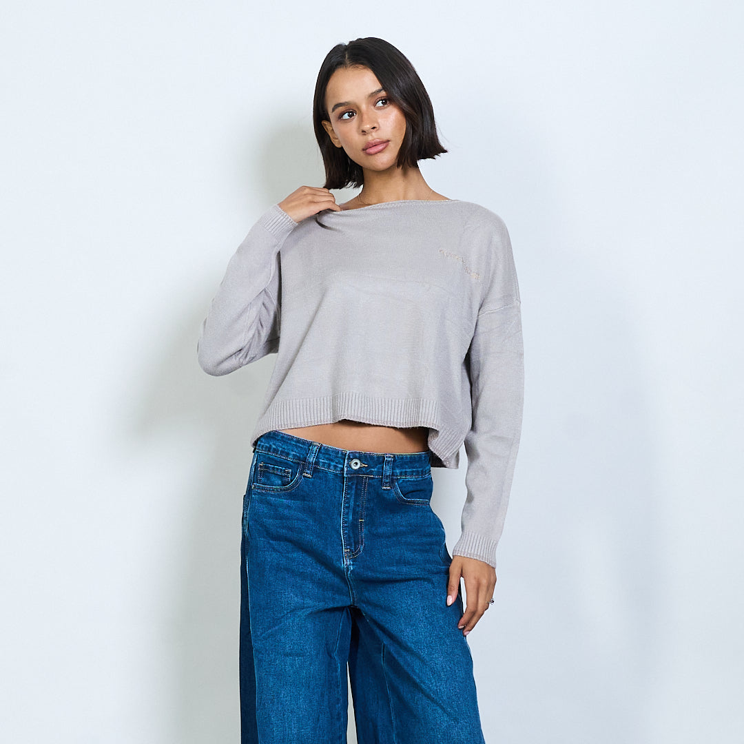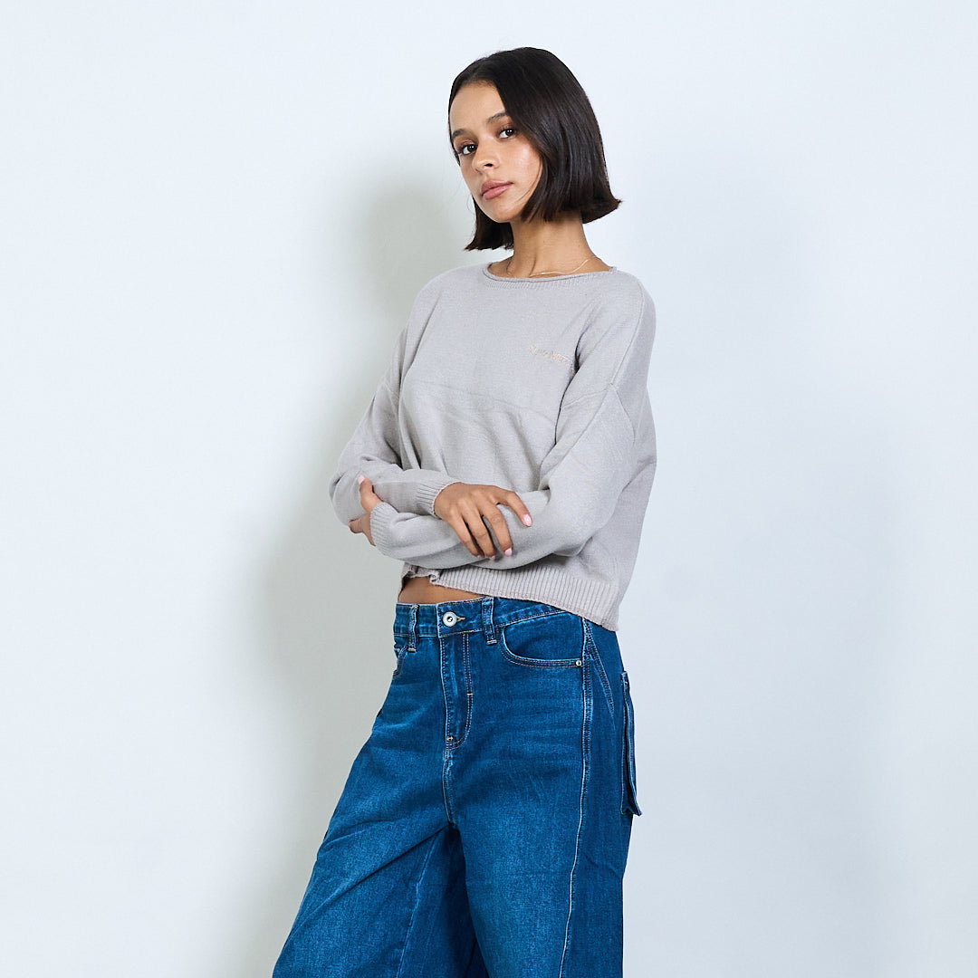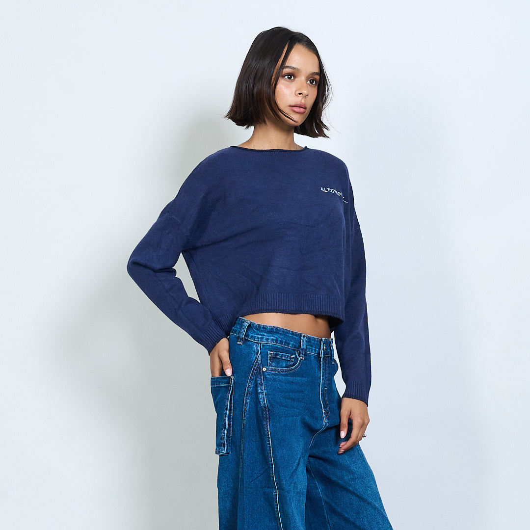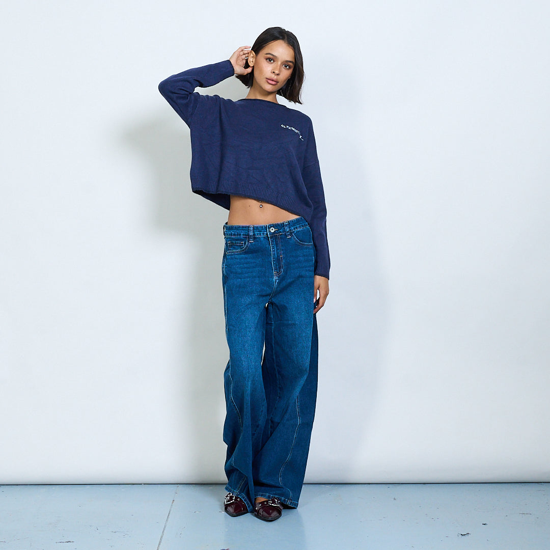 Pull en tricot recadré avec broderie de texte "Tout ce dont vous avez besoin est l'amour" en gros