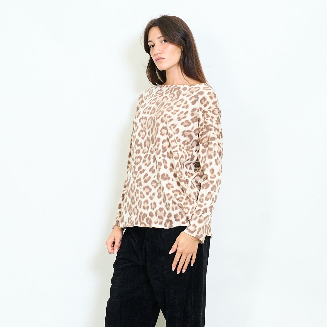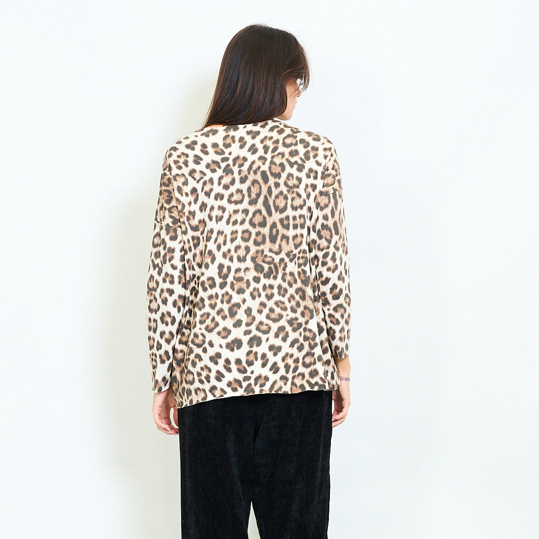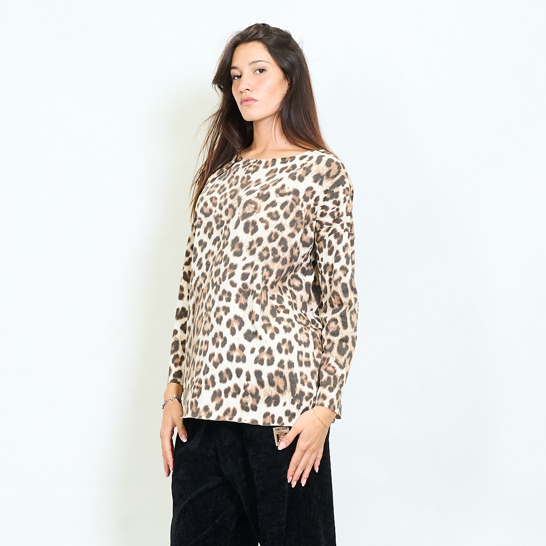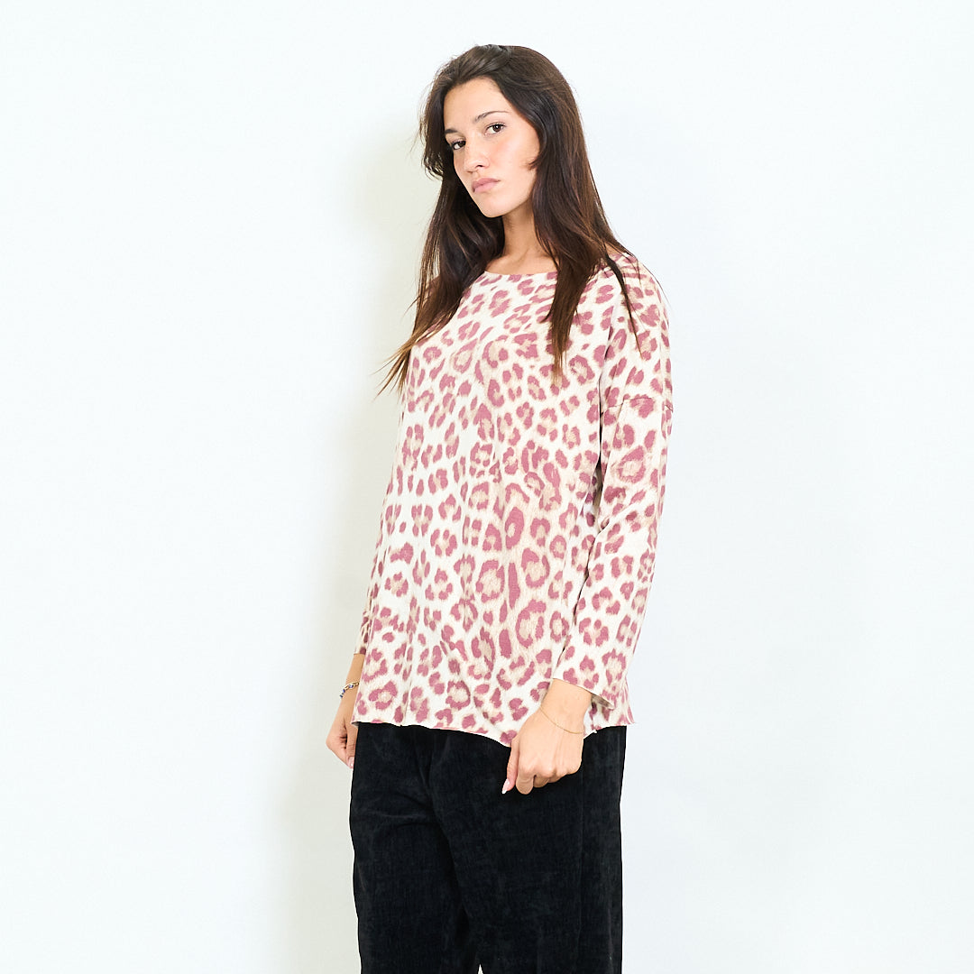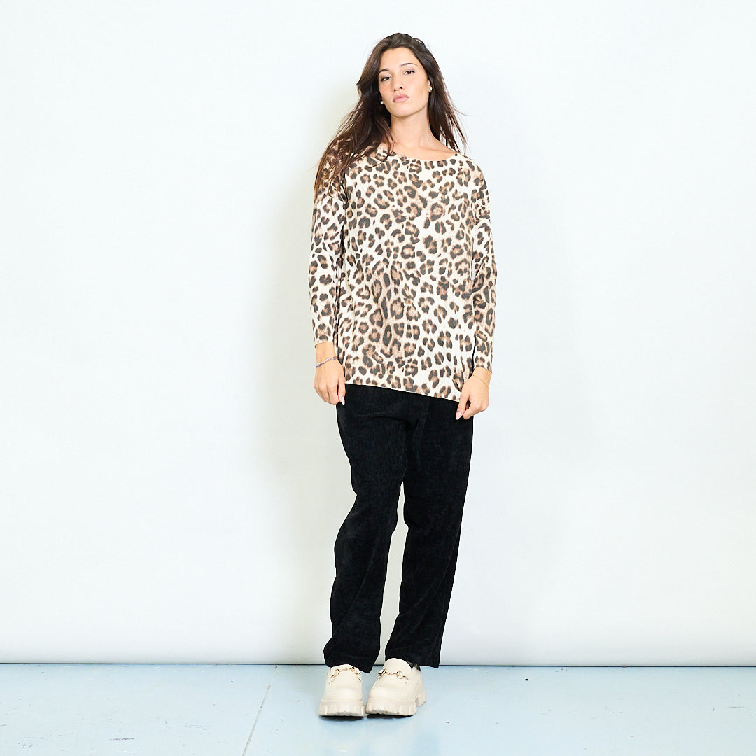 Top à manches longues avec imprimés léopard mélangés en gros