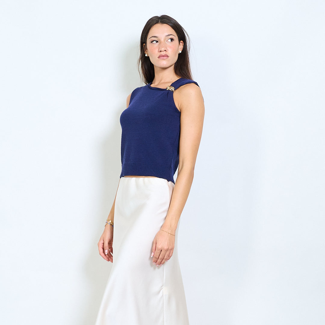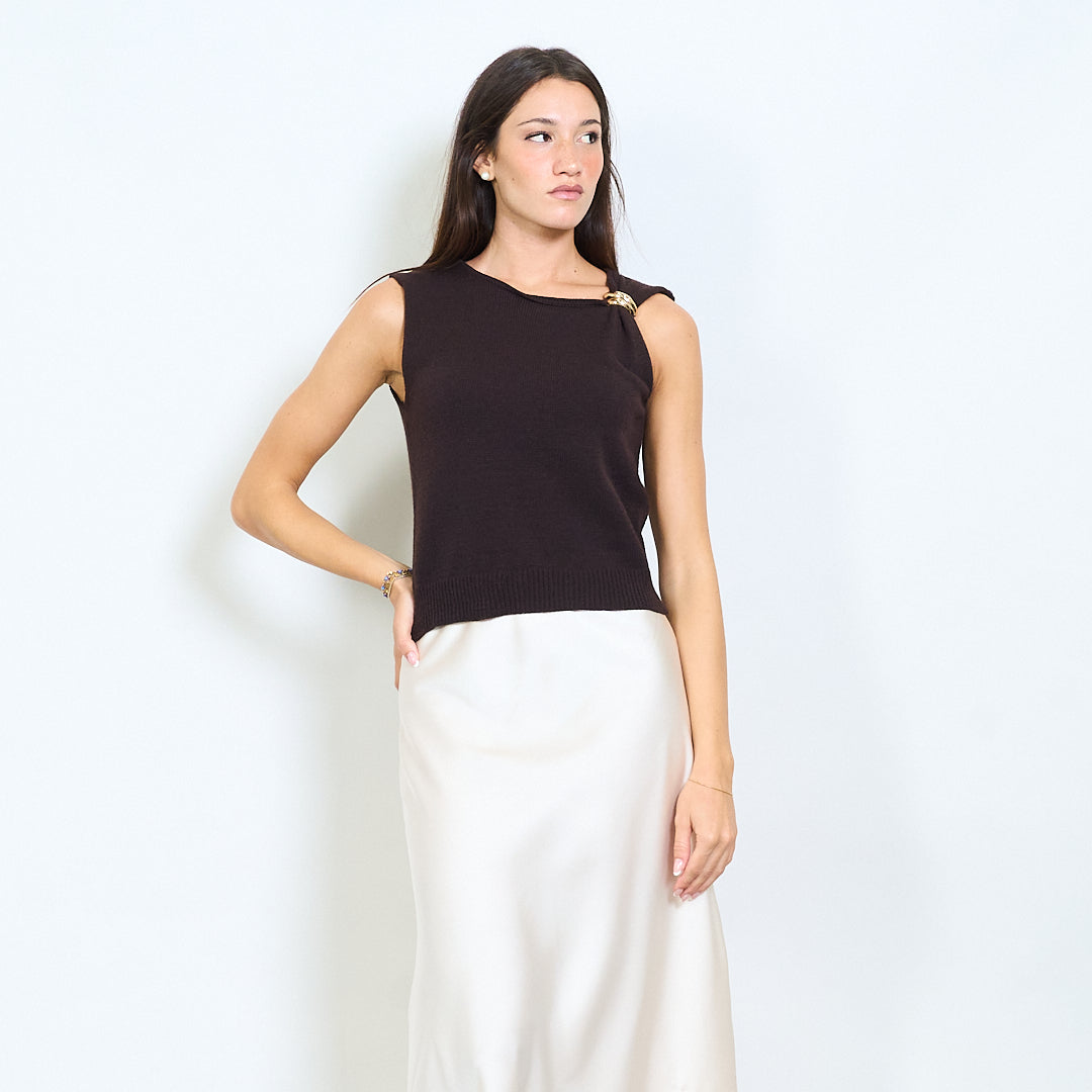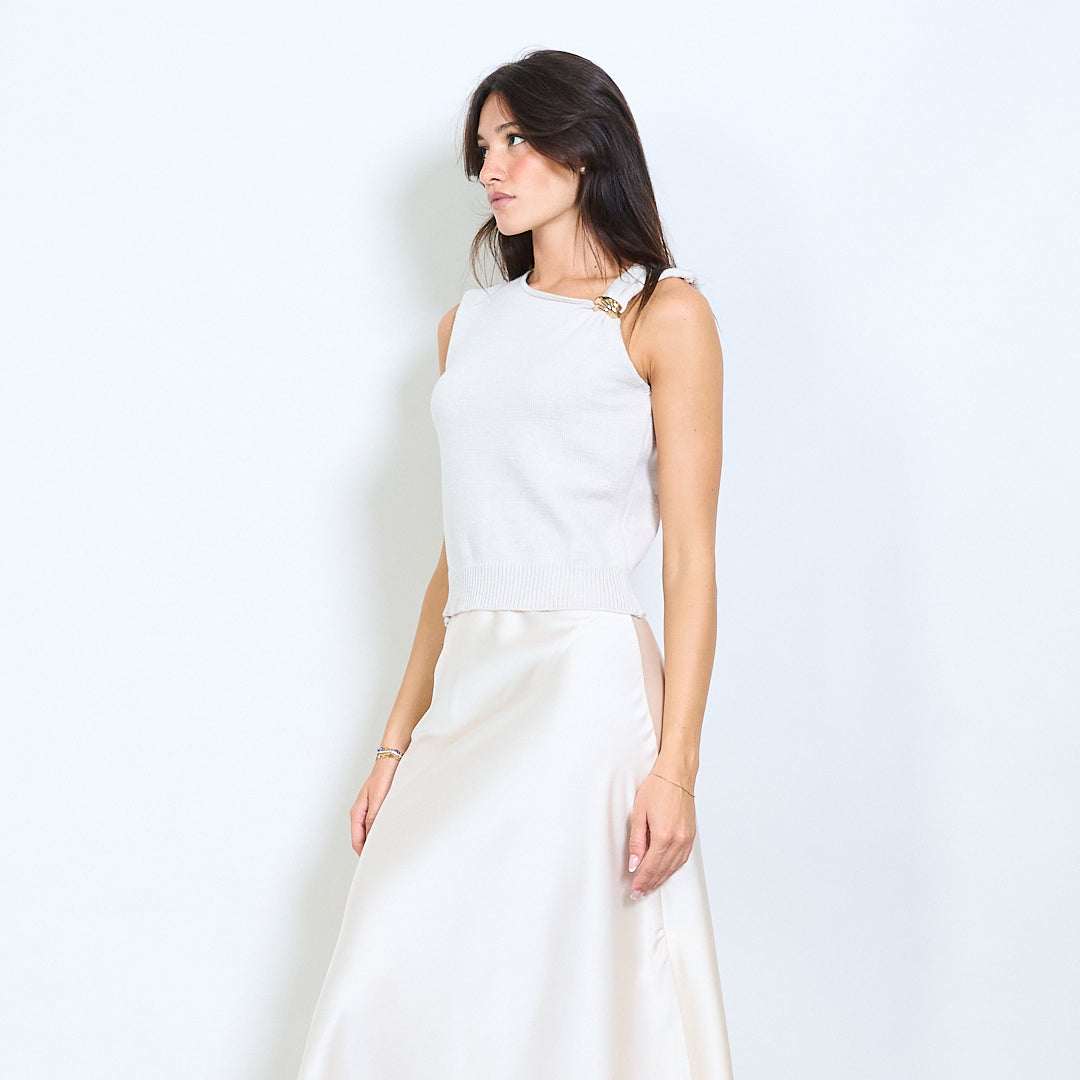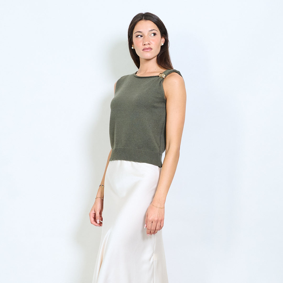 Top en tricot sans manches avec un détail de bague décorative en gros