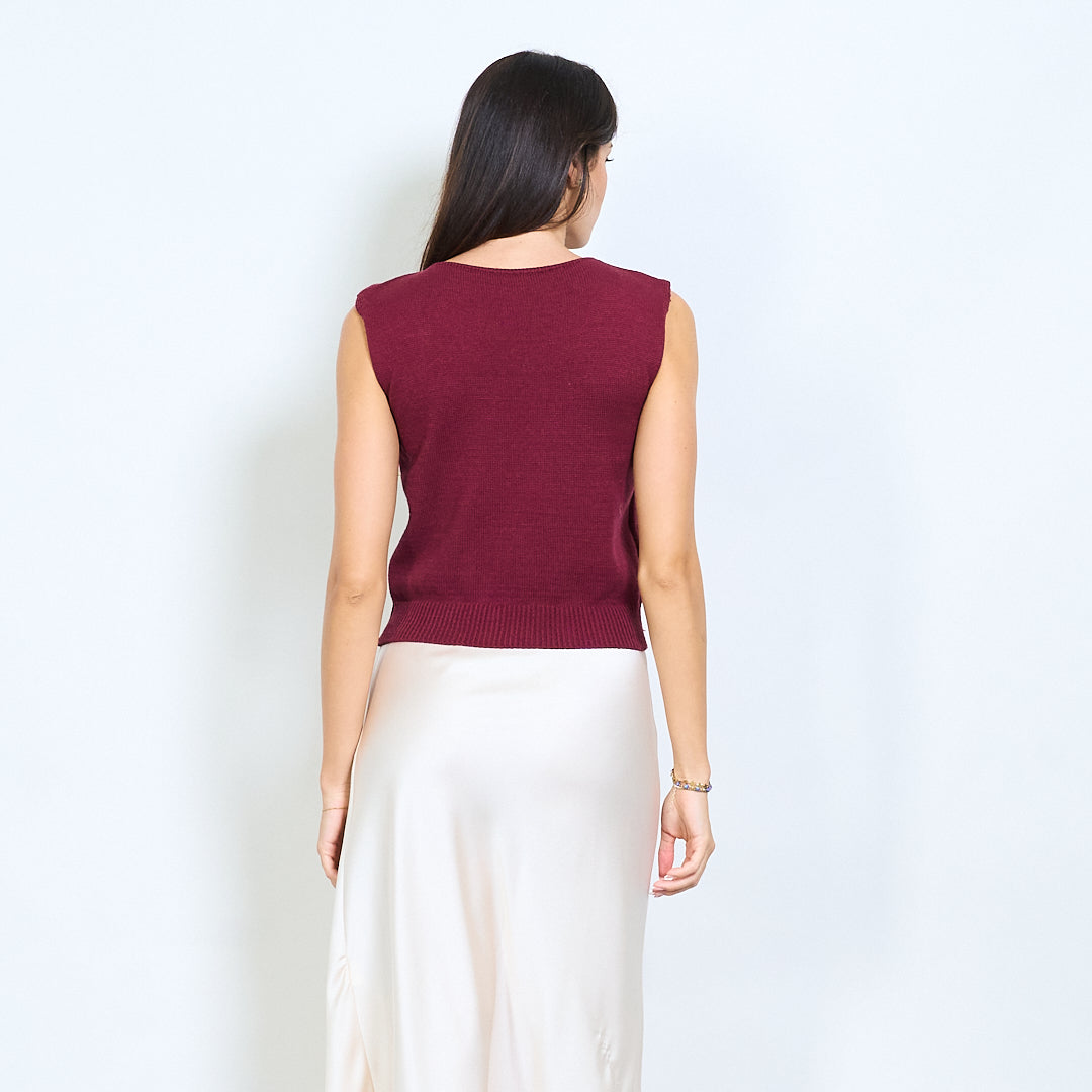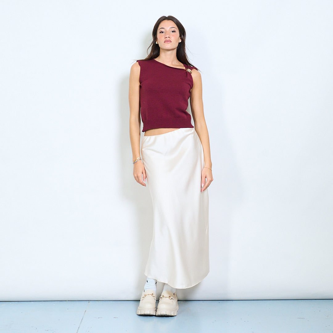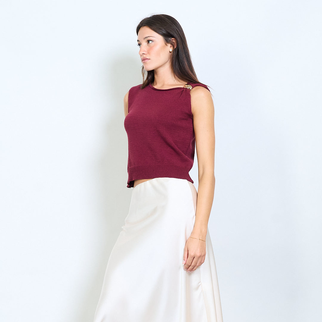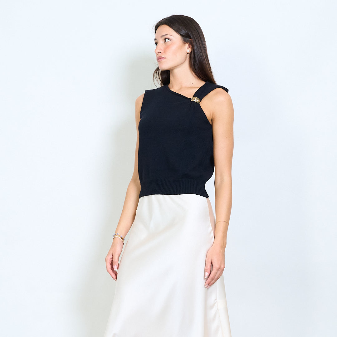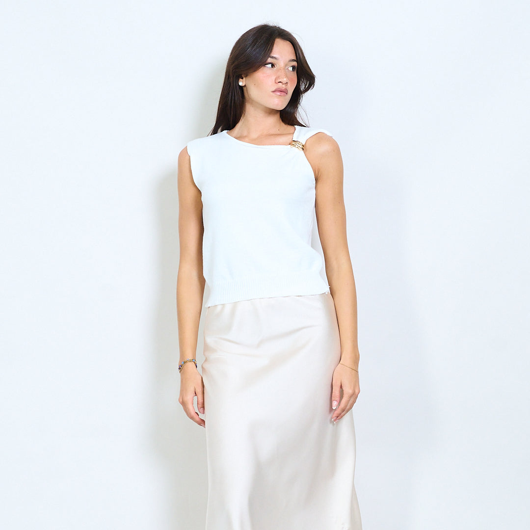 Top en tricot sans manches avec un détail de bague décorative en gros