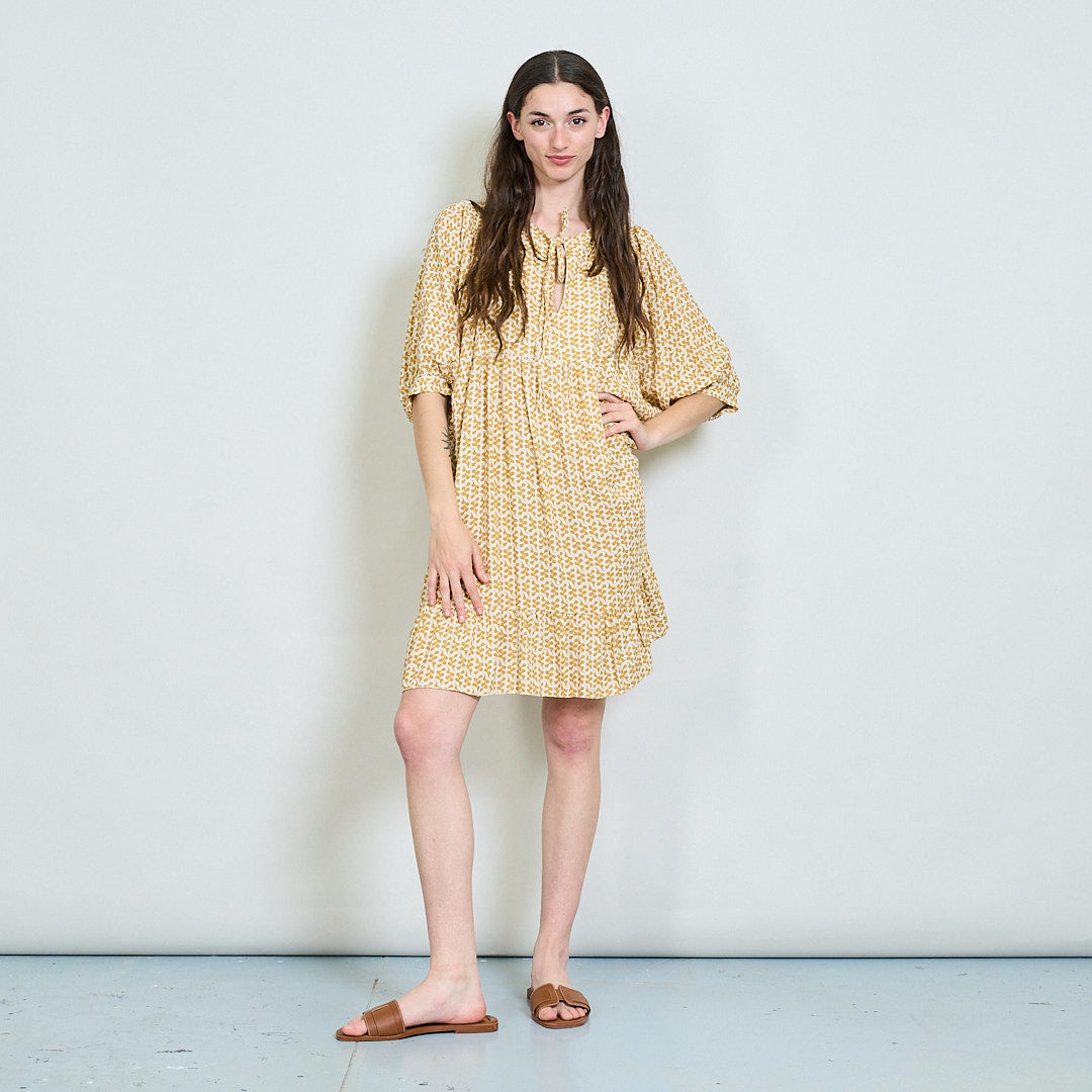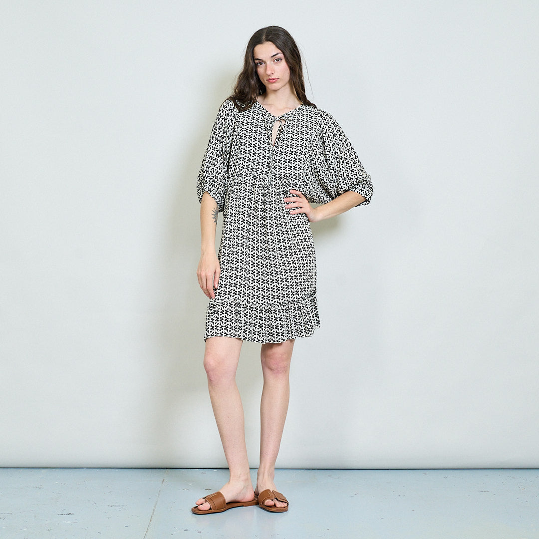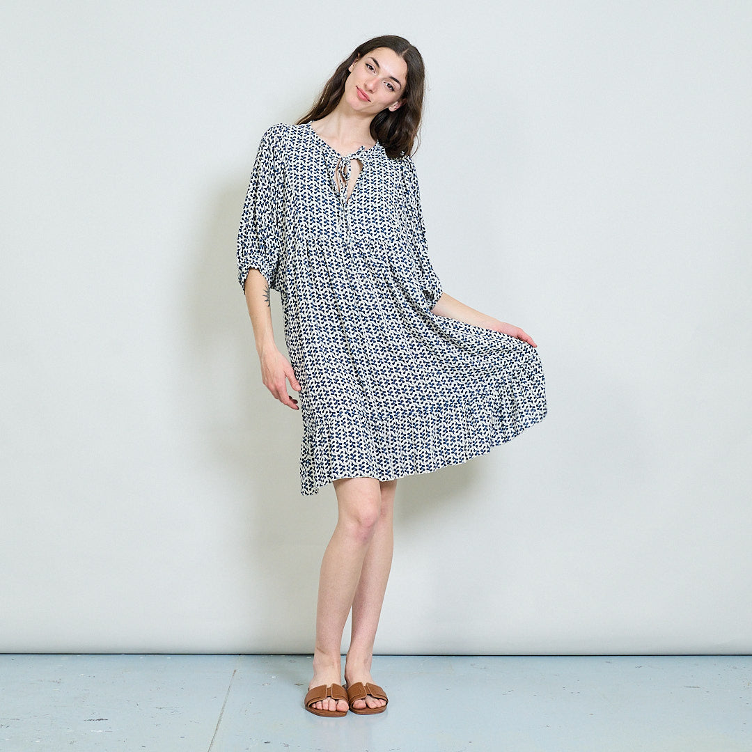 - Silhouette facile à ajuster avec des détails de taille rassemblés