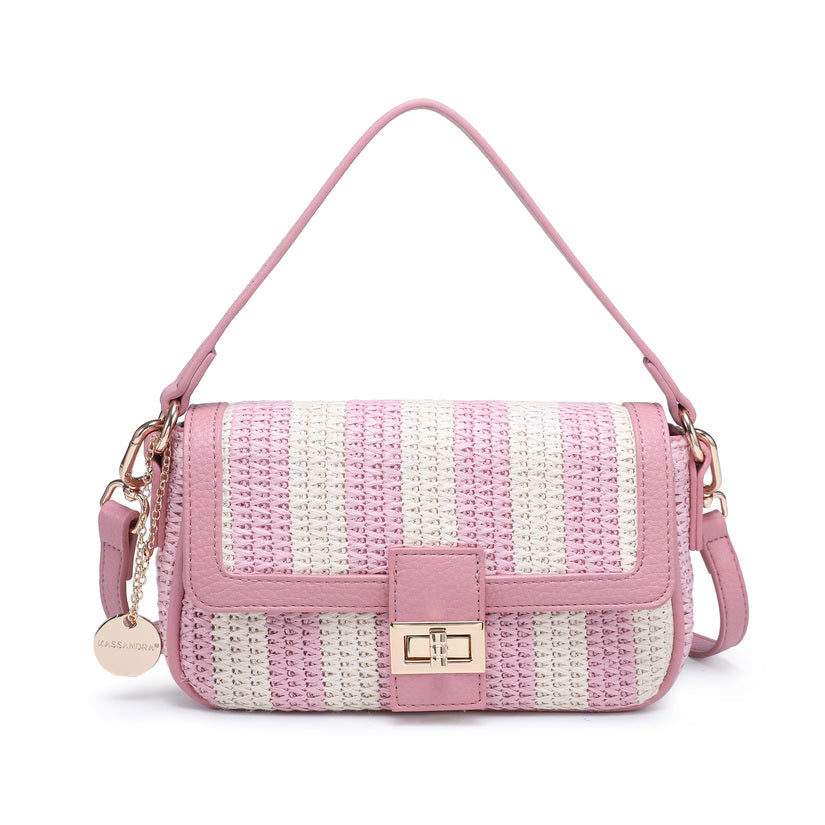Sac à volet tissé à rayures avec garniture en faux cuir et fermeture en gros de la fermeture en gros