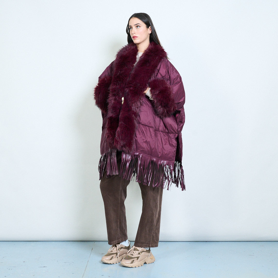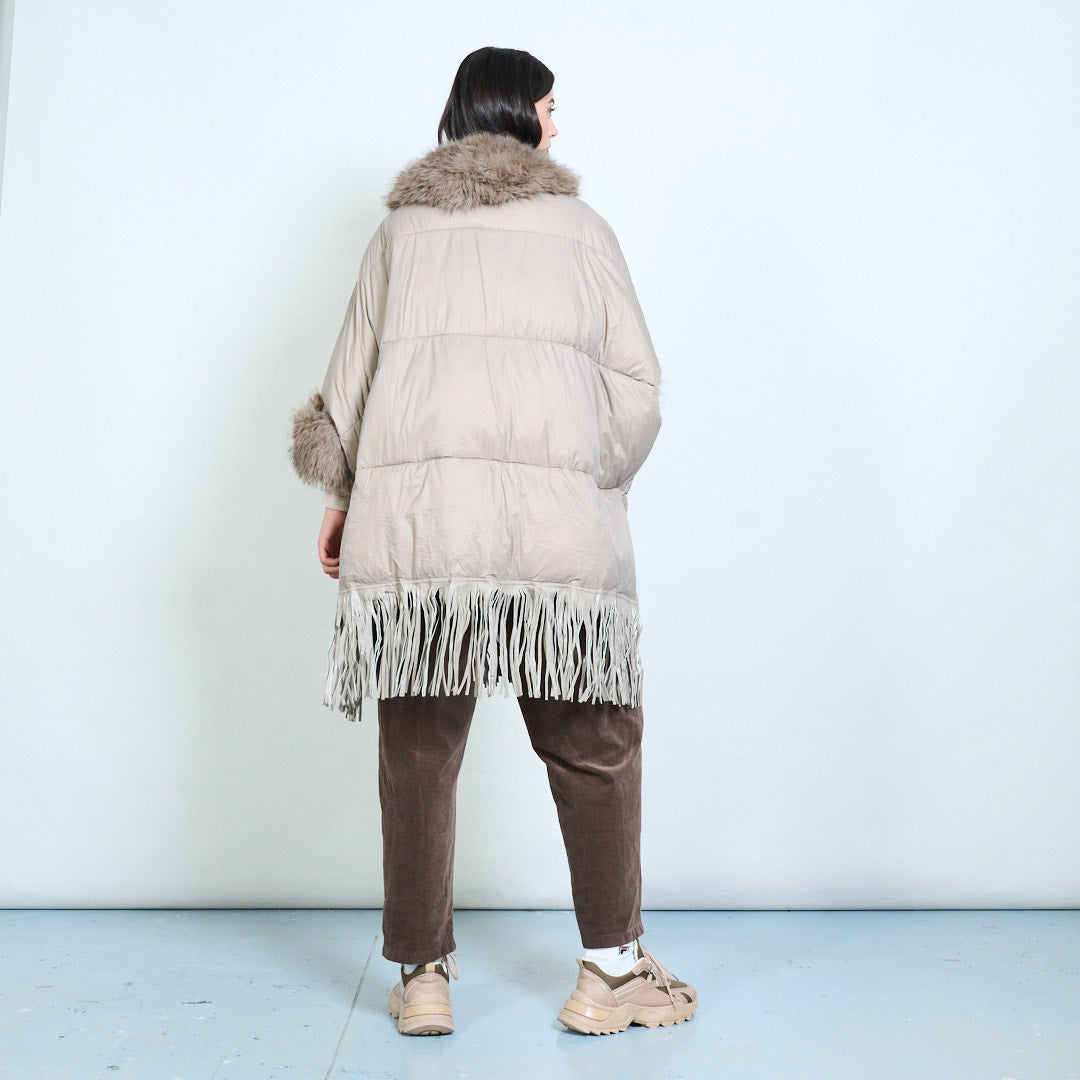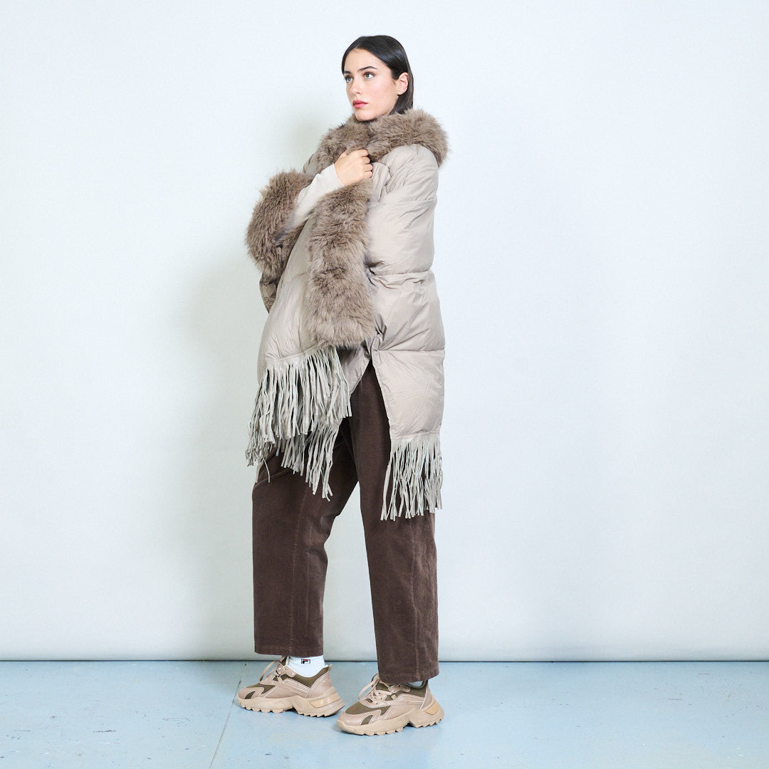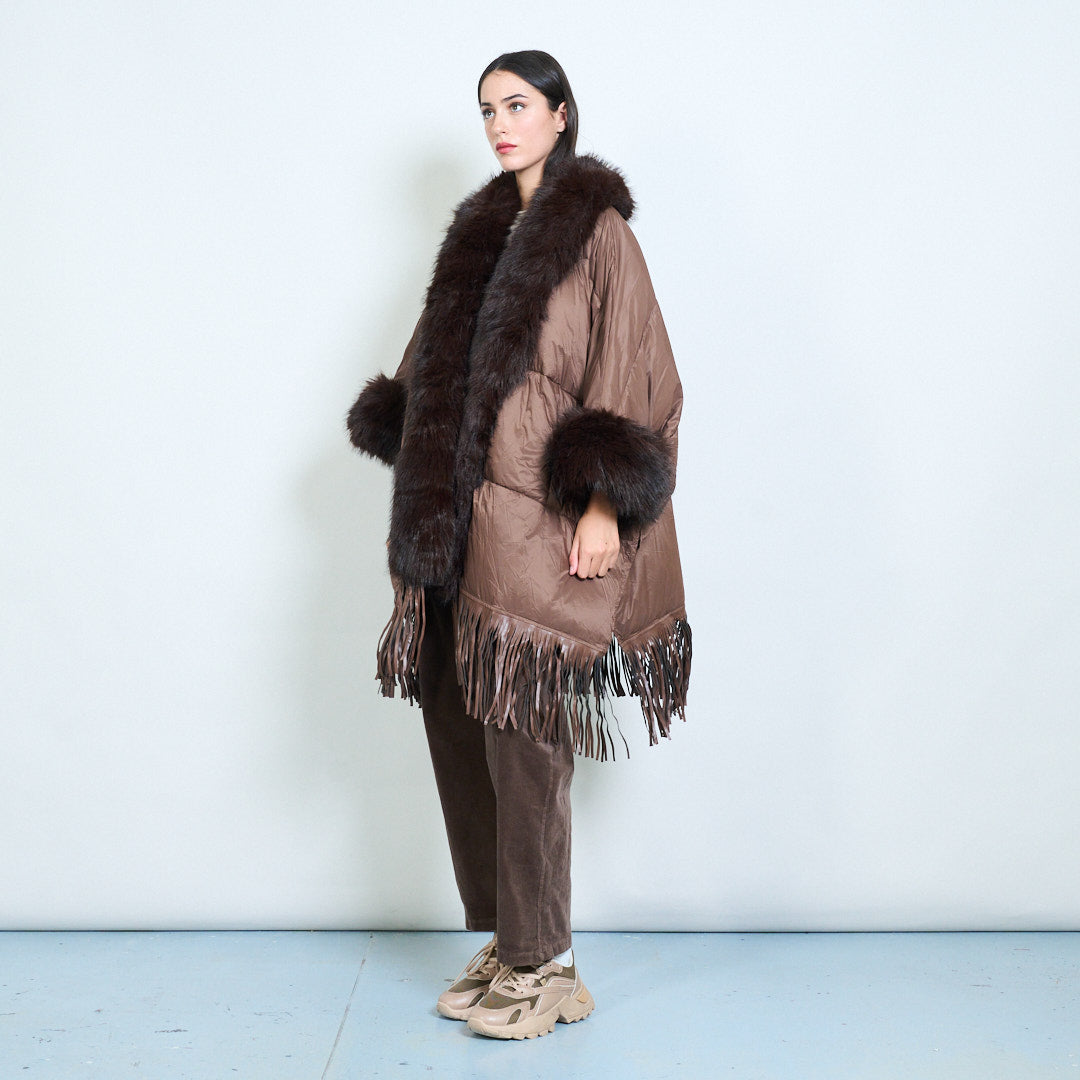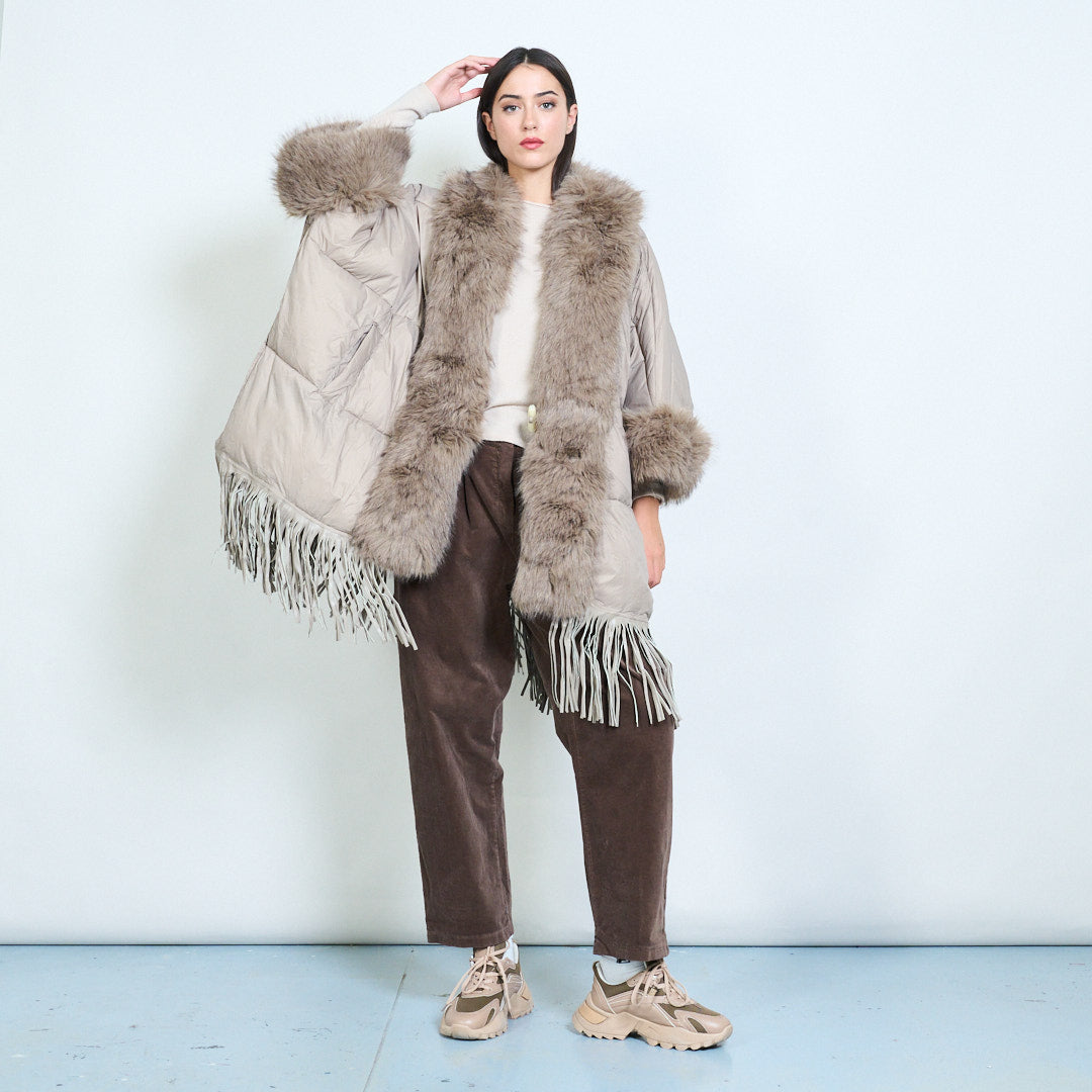 Manteau bouffant avec ourlet à franges et bordure en fausse fourrure, vente en gros