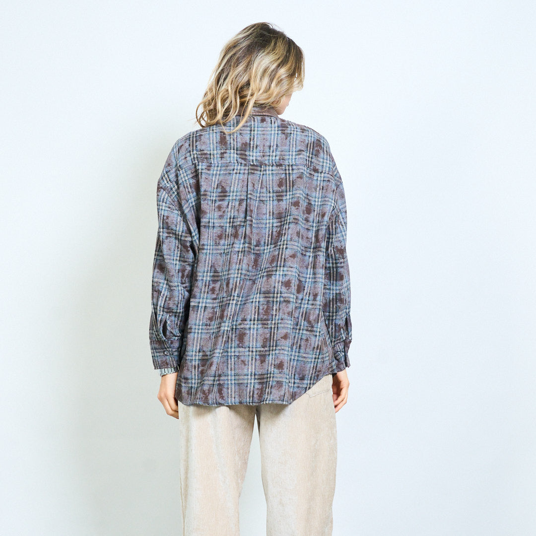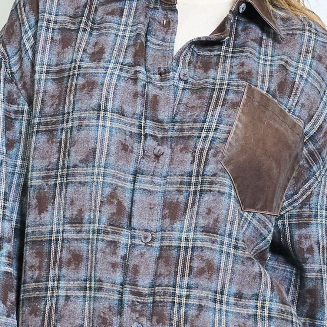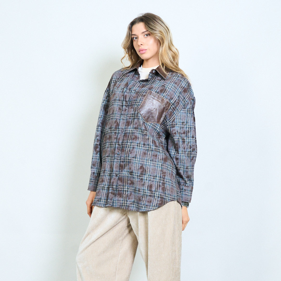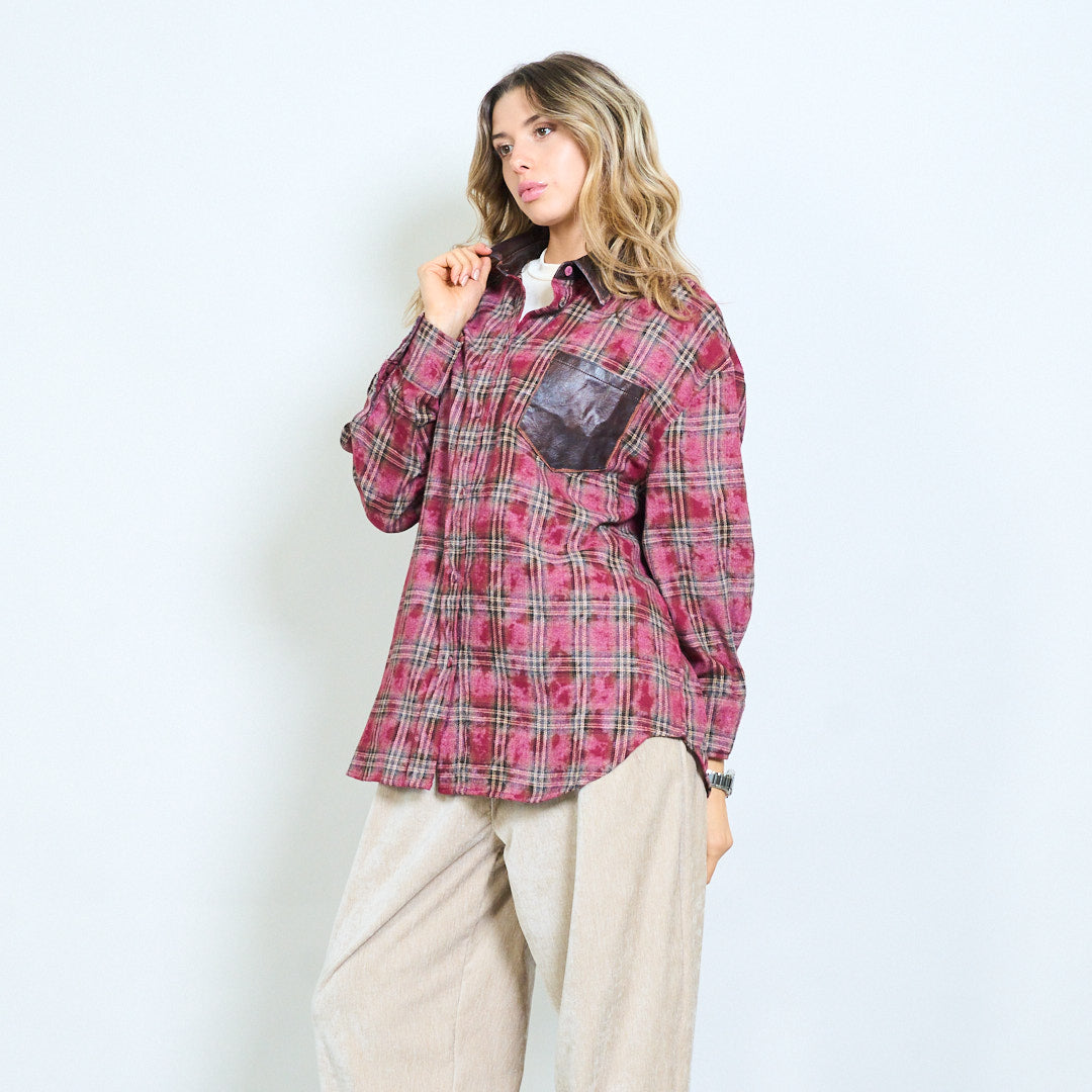 Chemise boutonnée à carreaux avec col et poche contrastés en gros