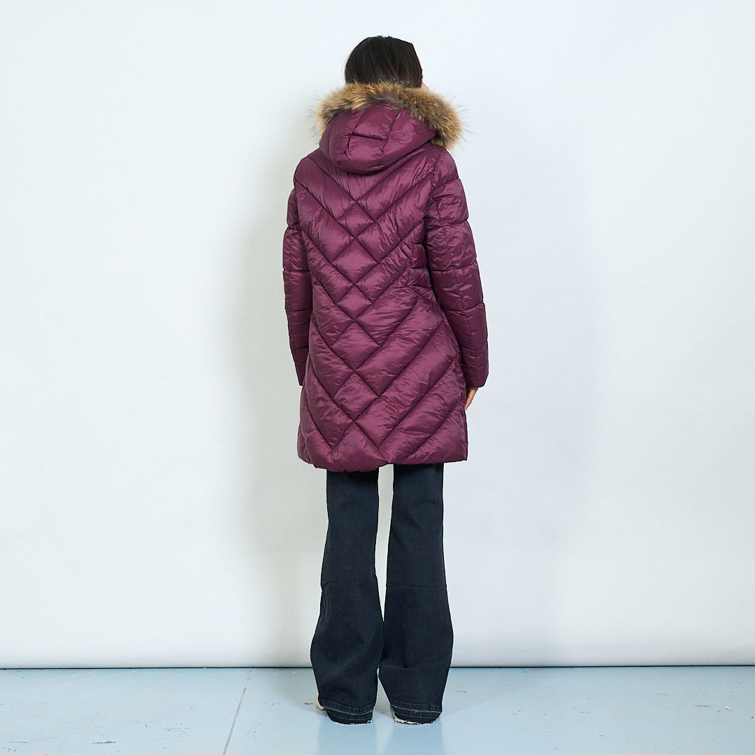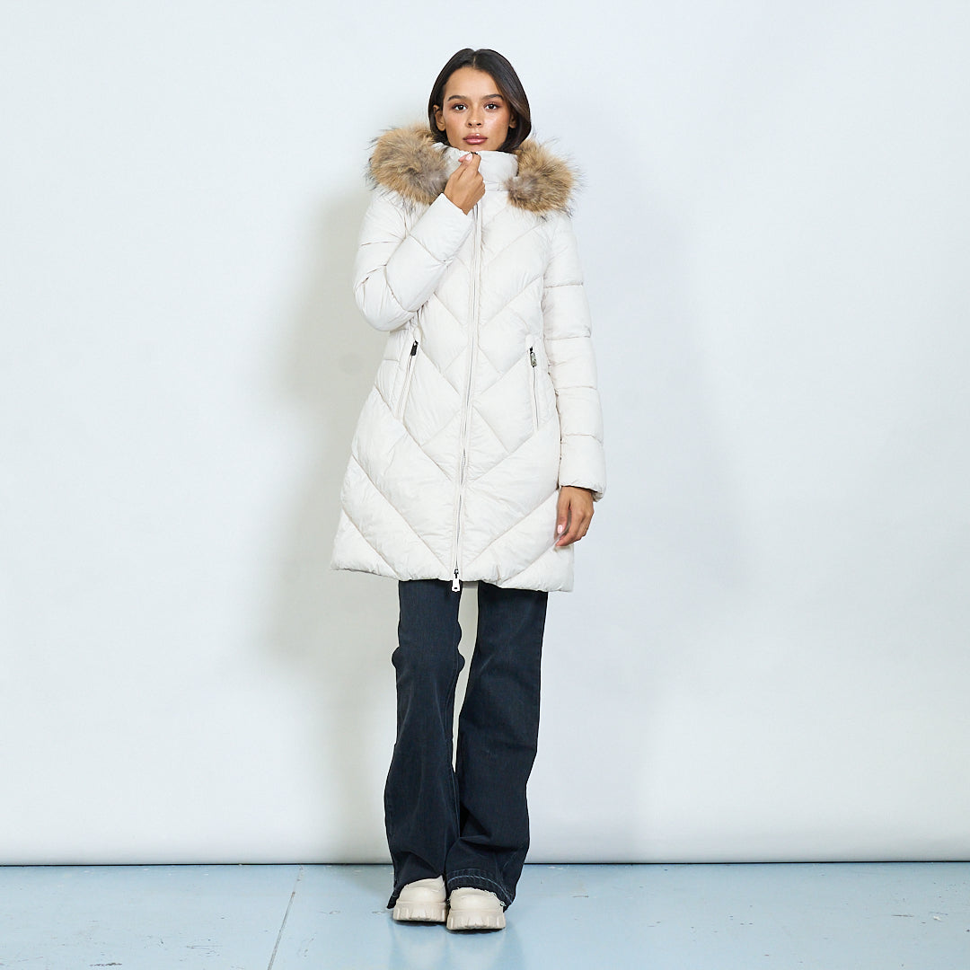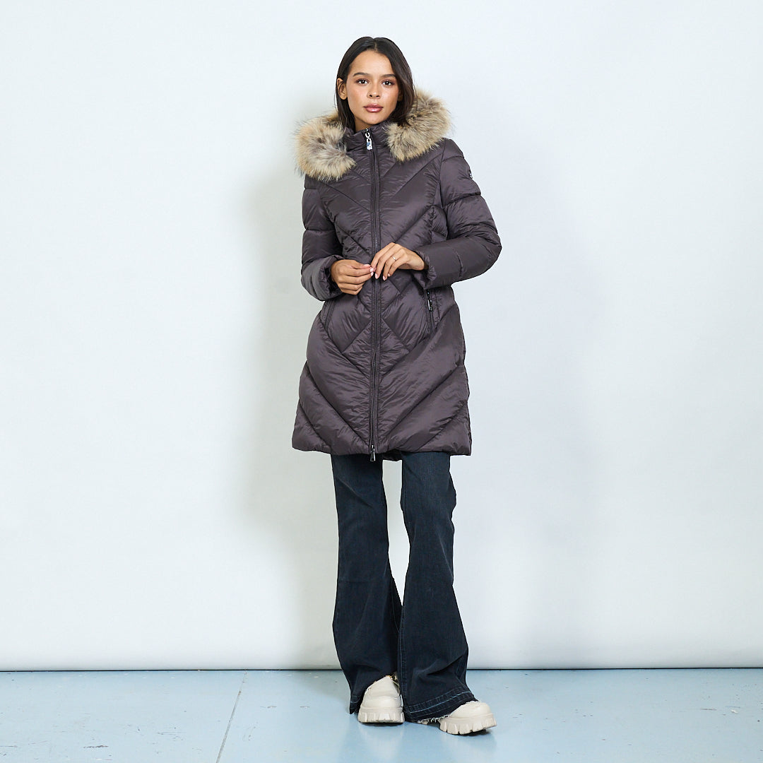 Coffre rembourré matelassé Chevron avec capuche en fausse fourrure en gros