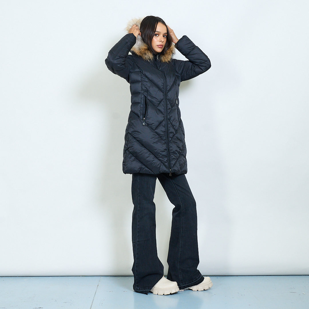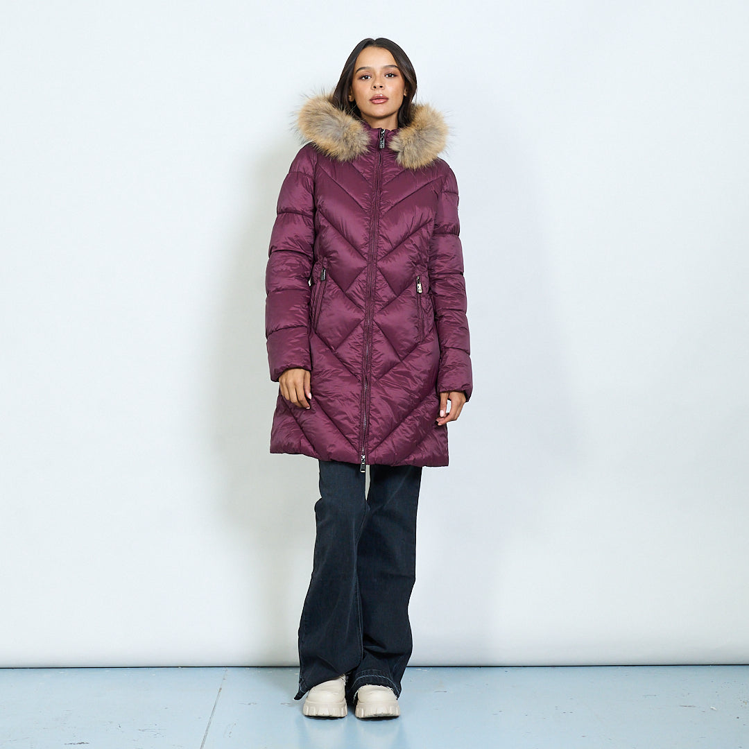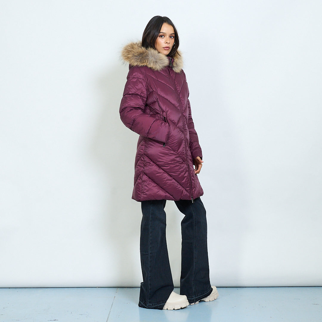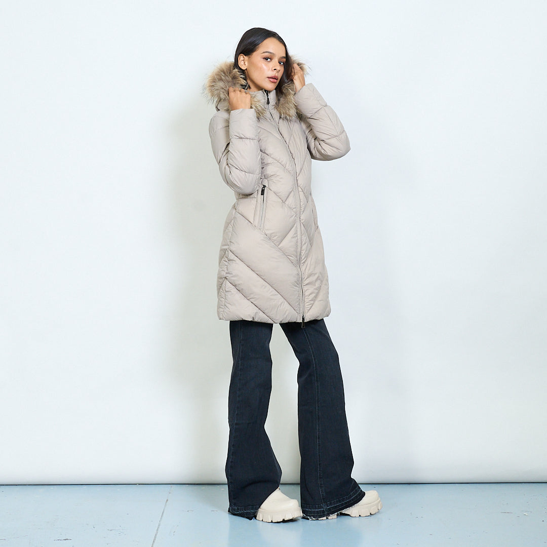 Coffre rembourré matelassé Chevron avec capuche en fausse fourrure en gros