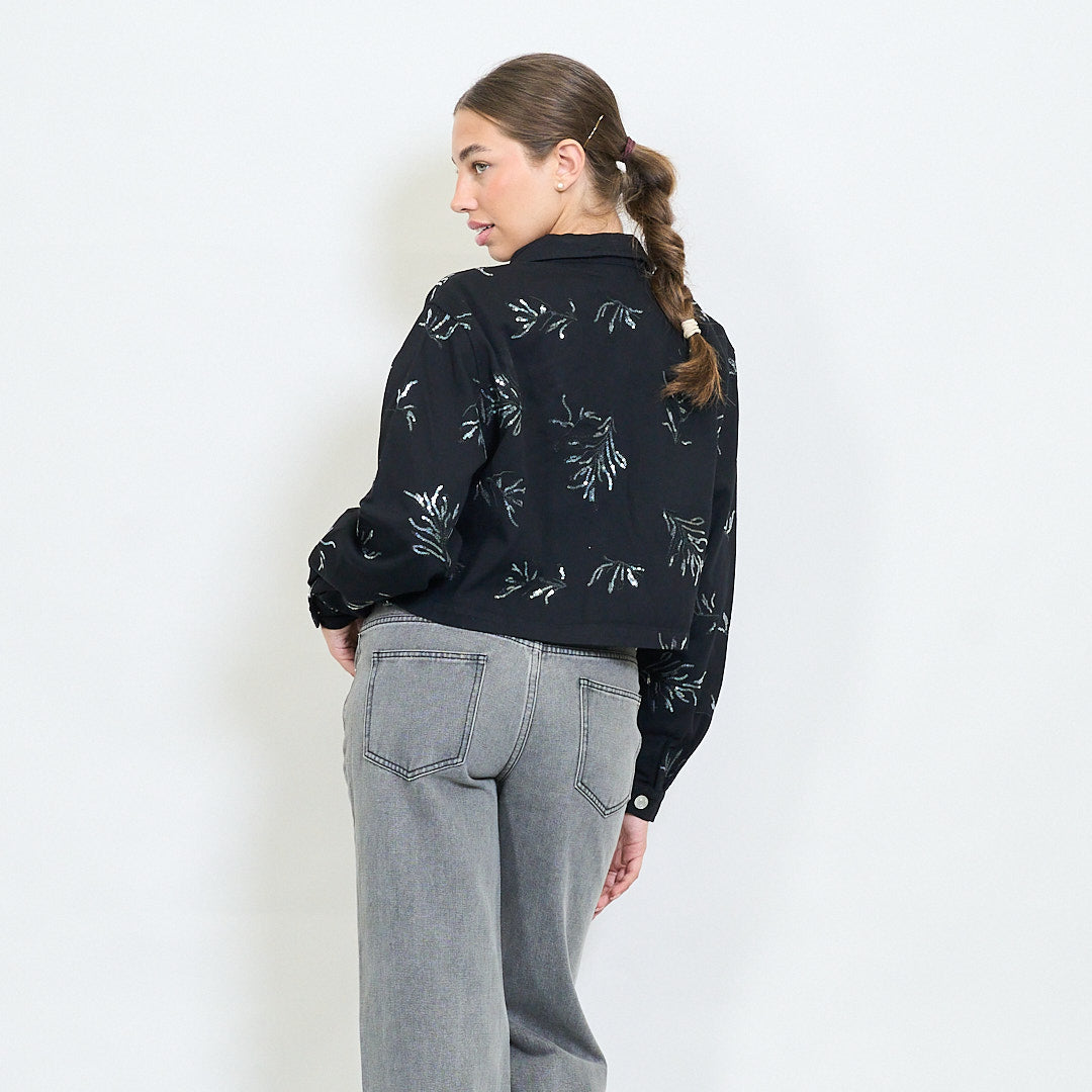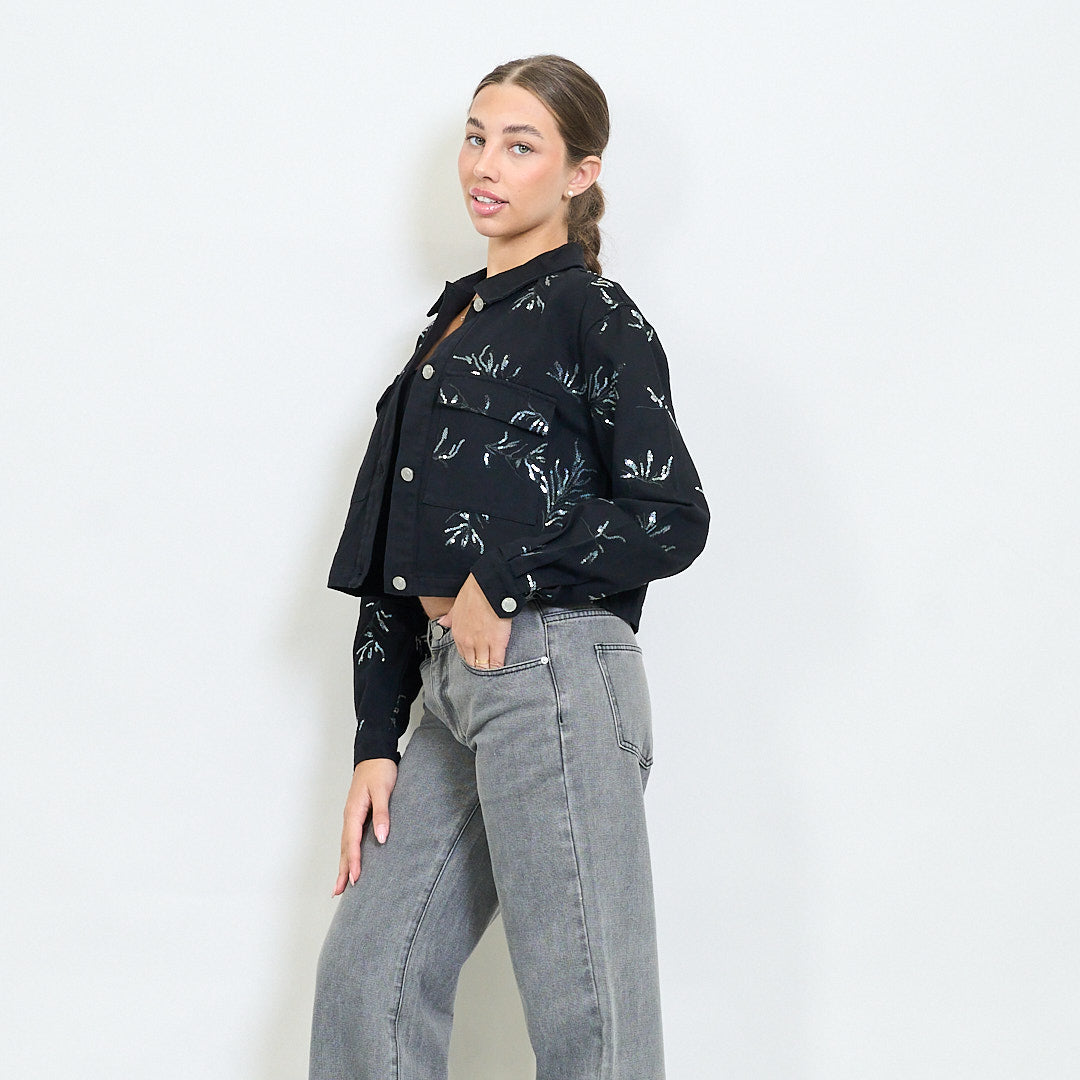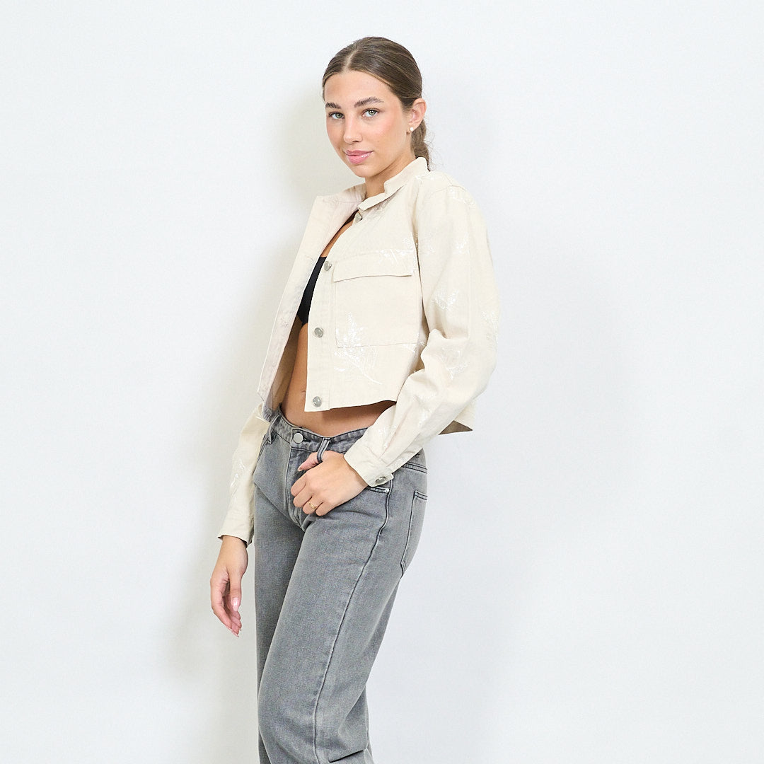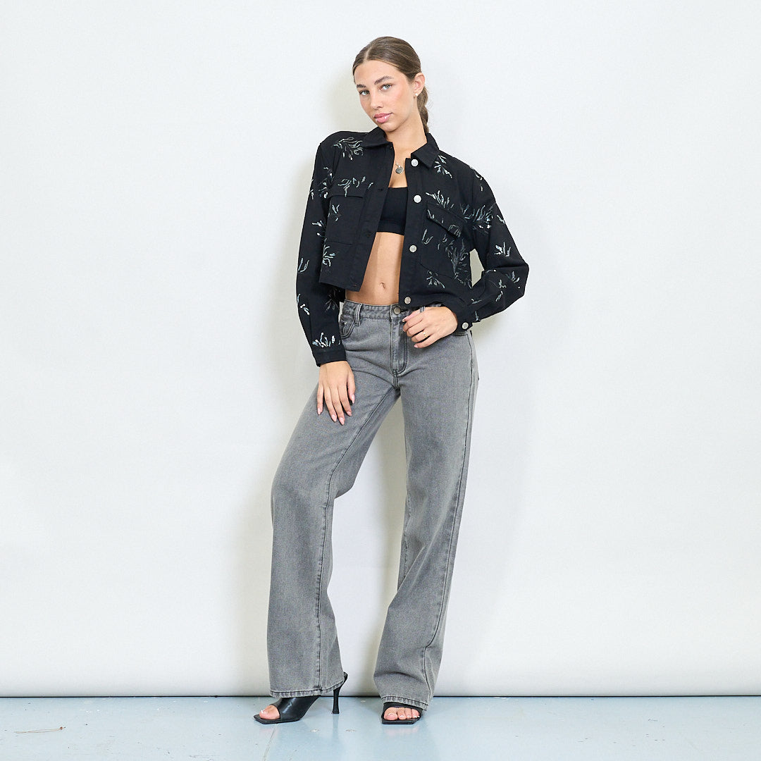 - Veste recadrée avec broderie florale tonale tout au long