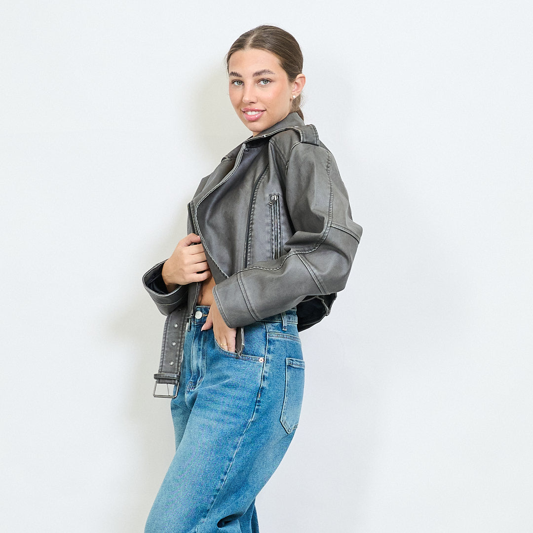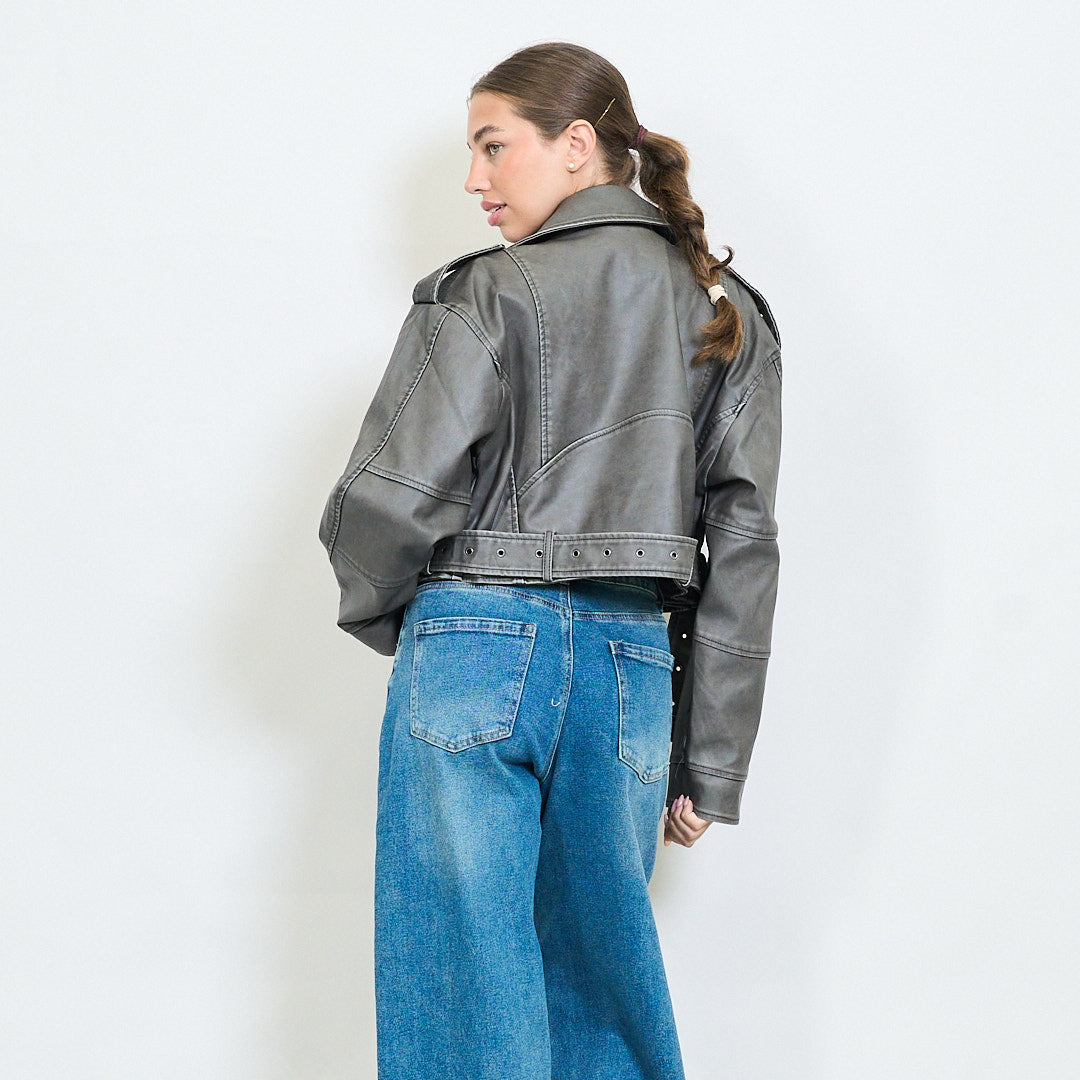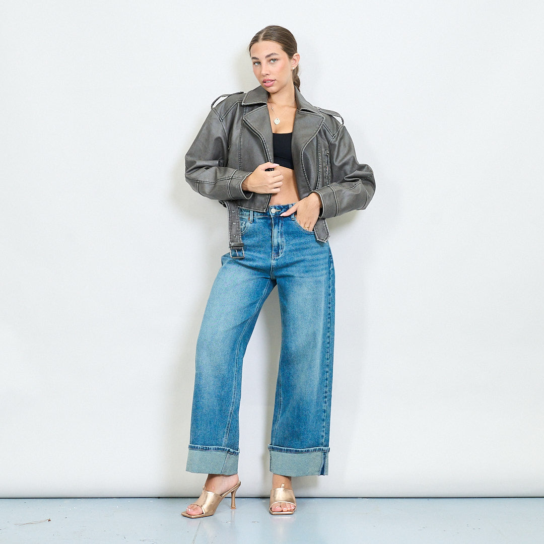 Veste de motard en faux cuir recadré avec épaulettes et taille en gros de la taille