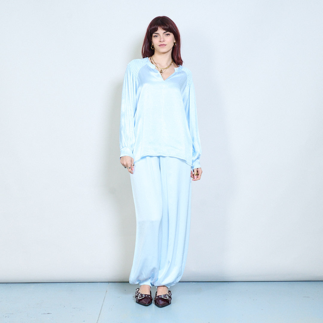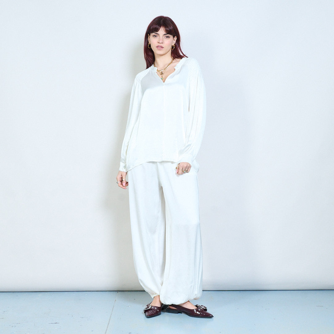 - Les empiècements smockés sur les épaules ajoutent de la texture et de la structure