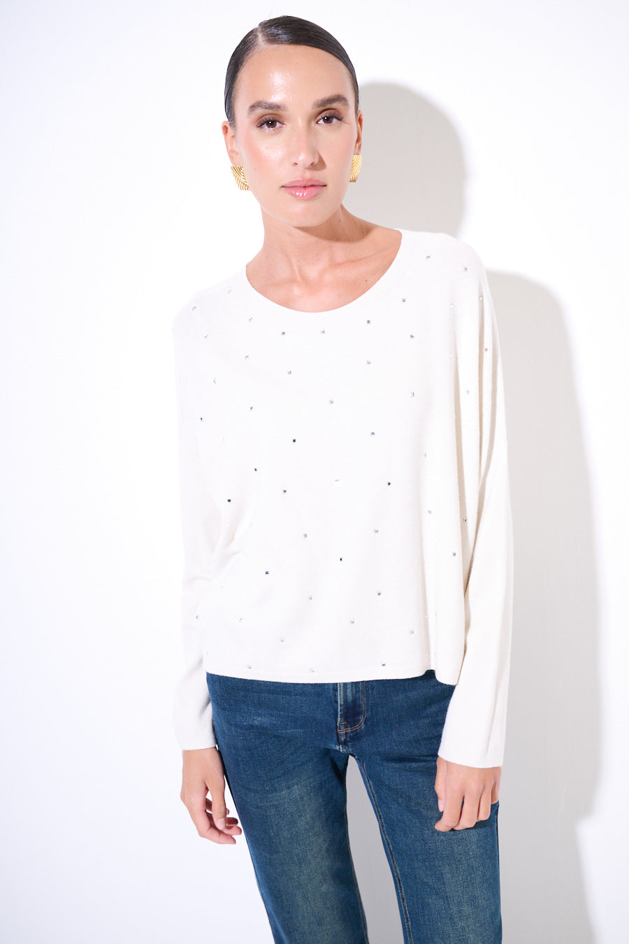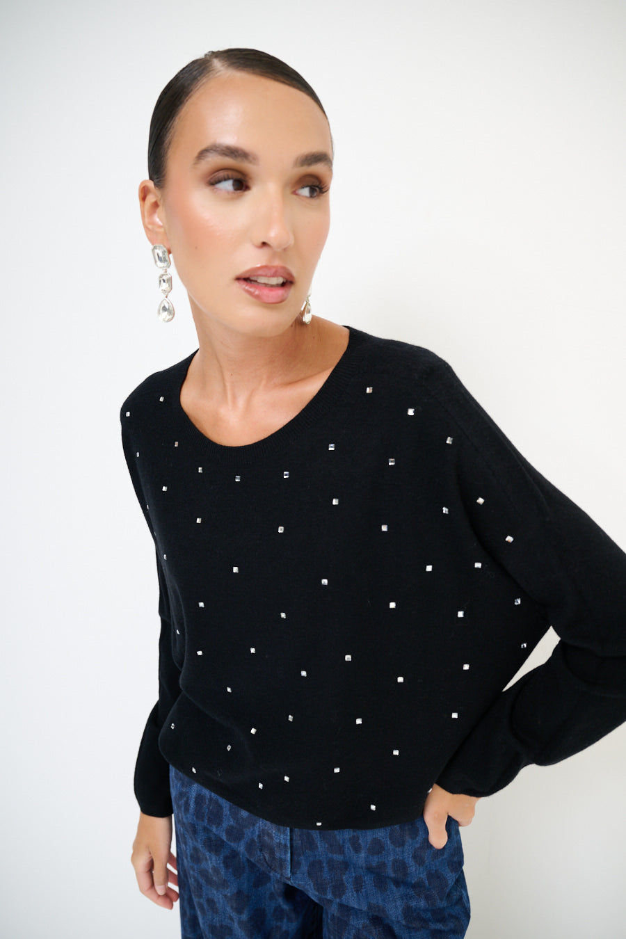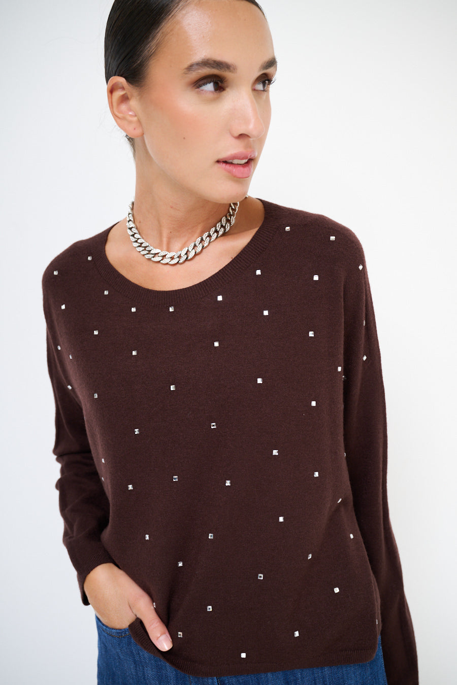 Pull à cou rond avec accents de strass dispersés en gros
