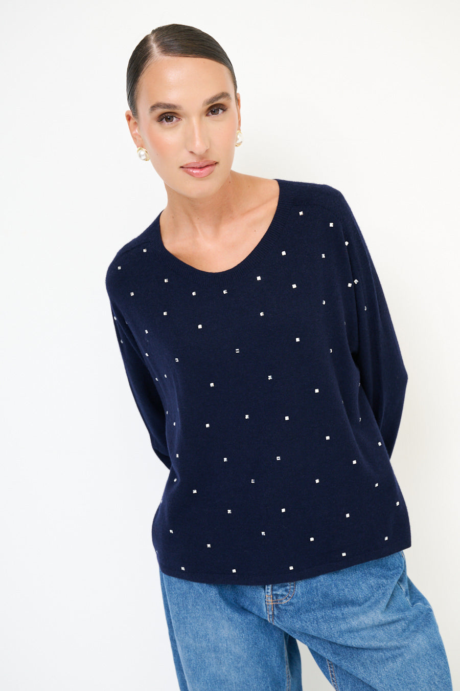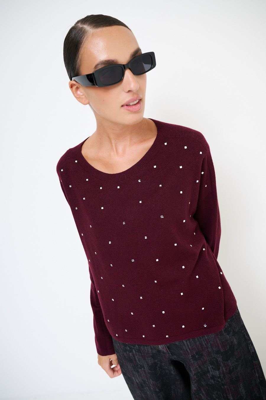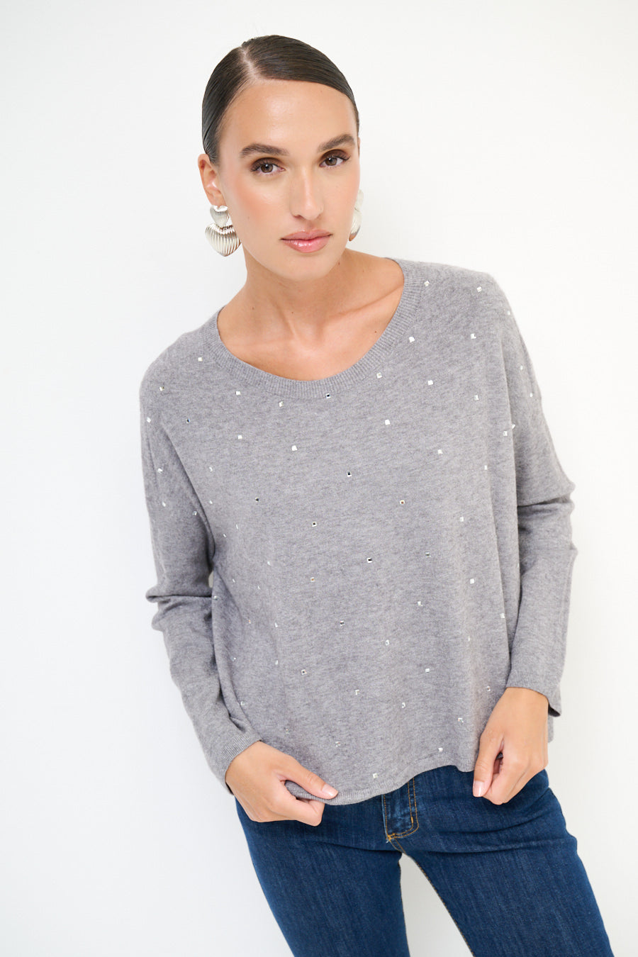 Pull à cou rond avec accents de strass dispersés en gros