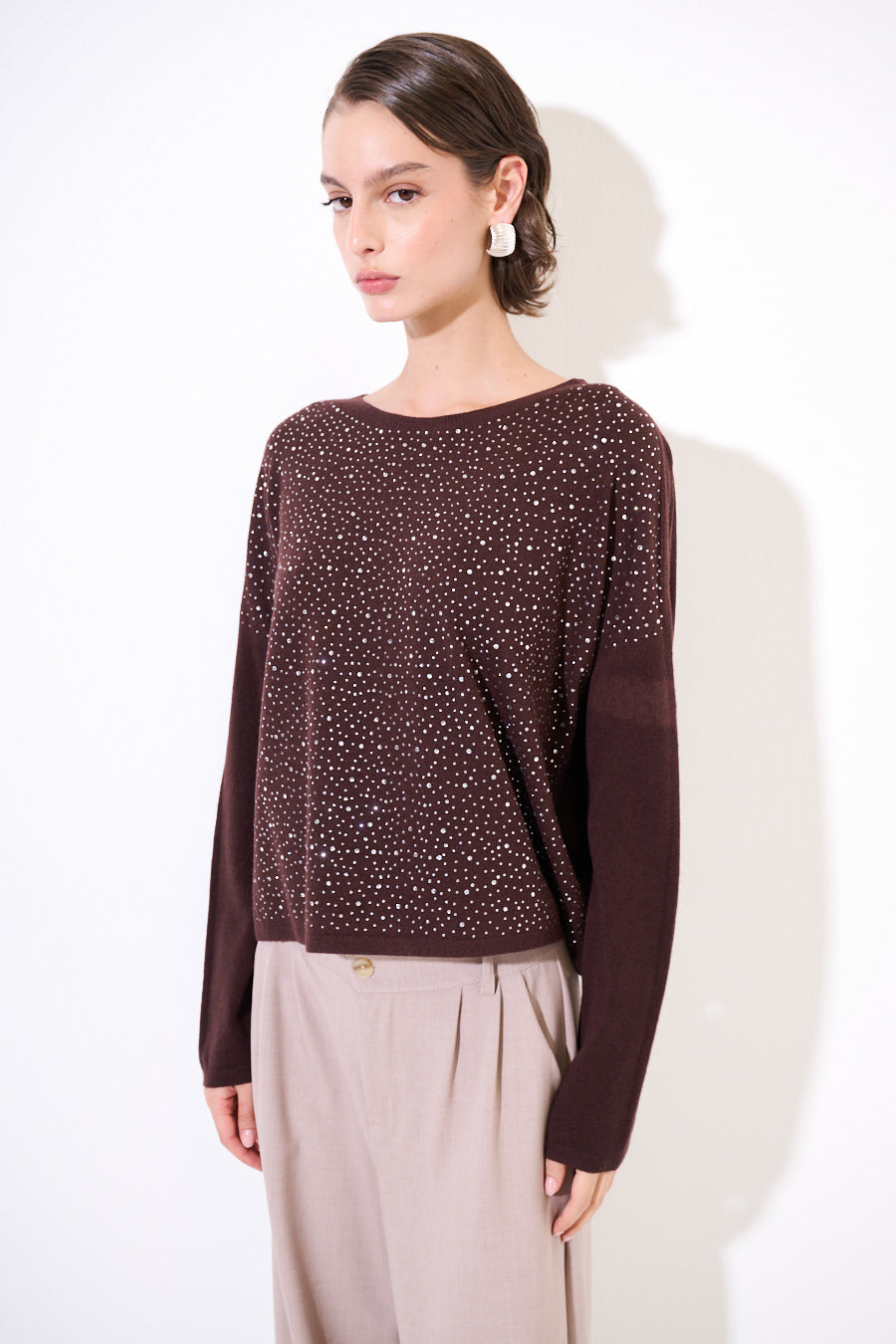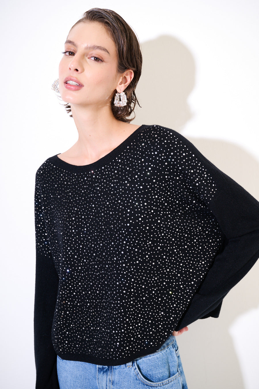 Pull d'équipage avec en gros avant saupoudré en cristal