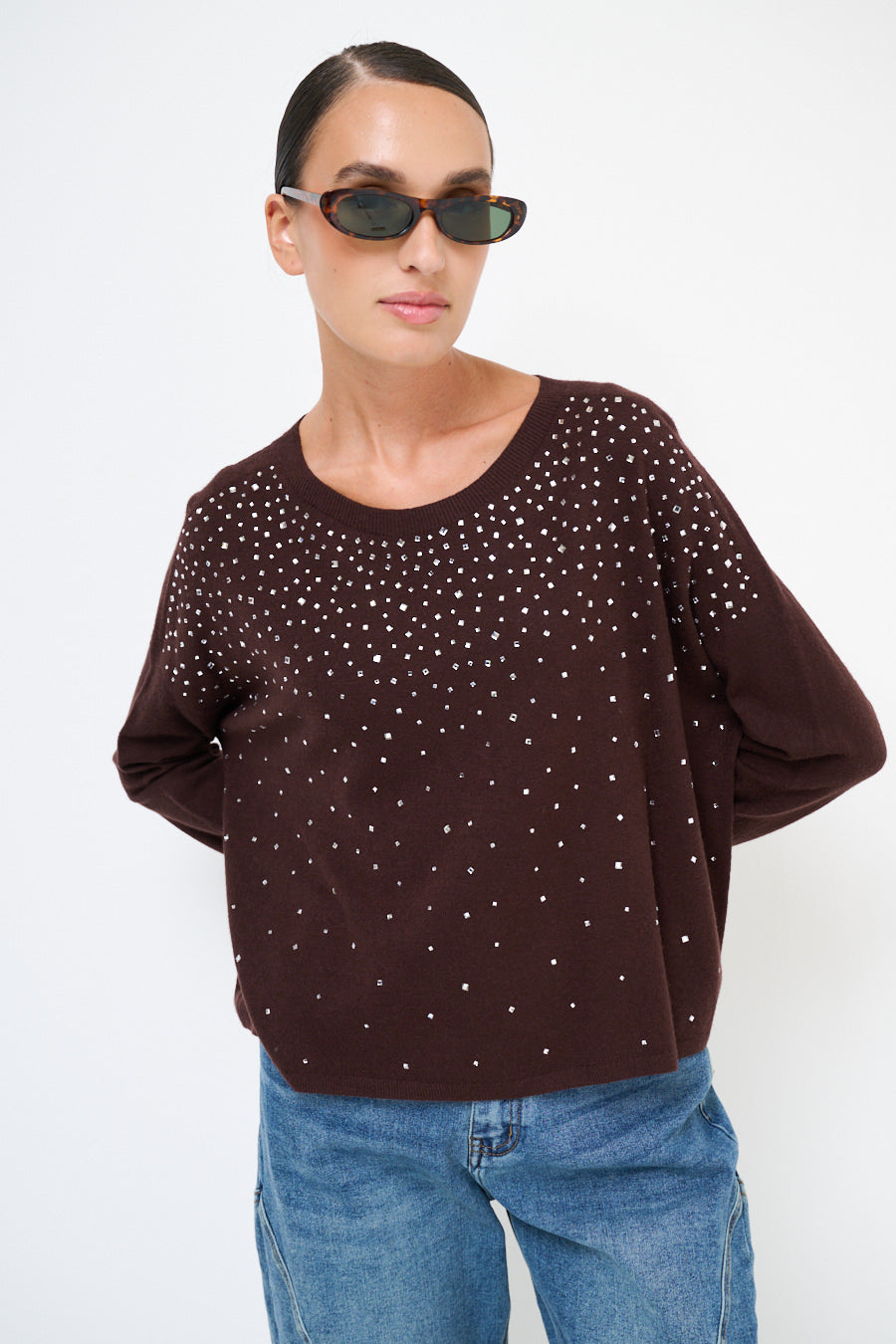 - Pull en tricot doux avec un décolleté d'équipage classique