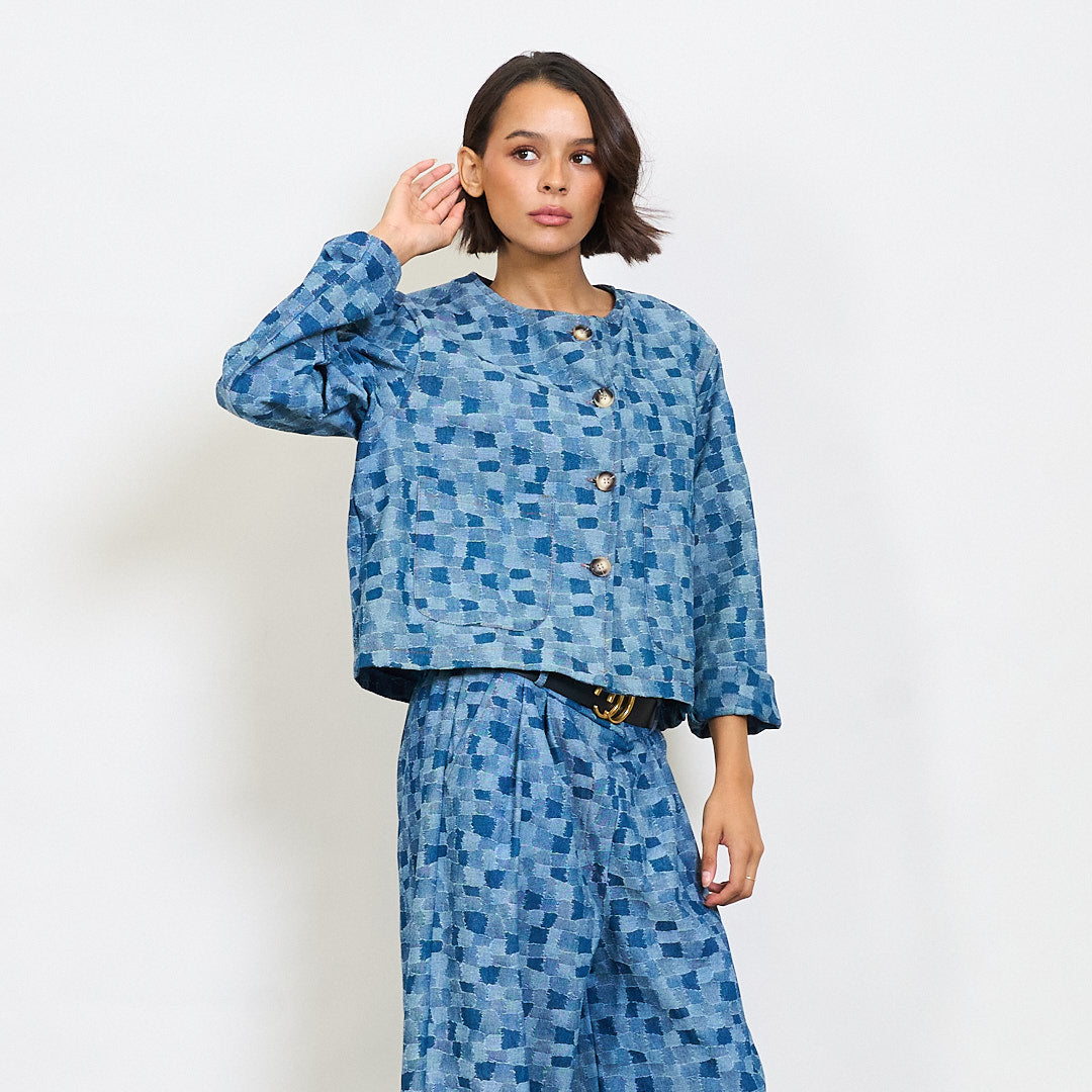 - Silhouette recadrée avec une ajustement détendu pour les vibrations chics décontractées