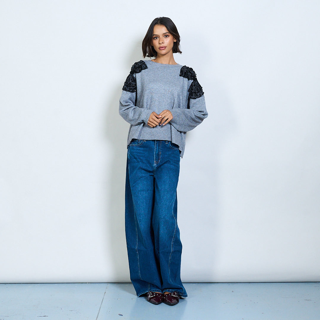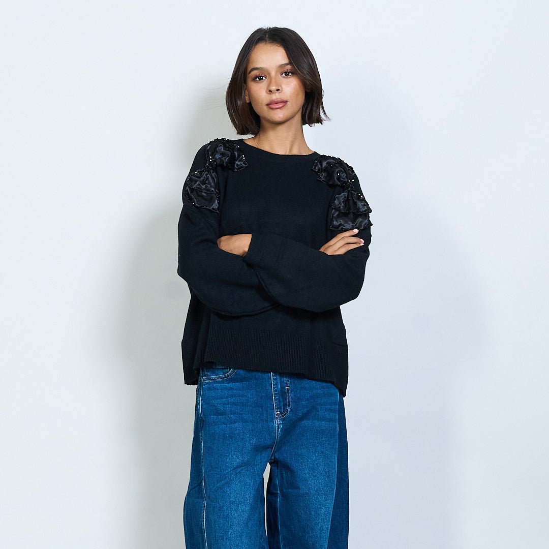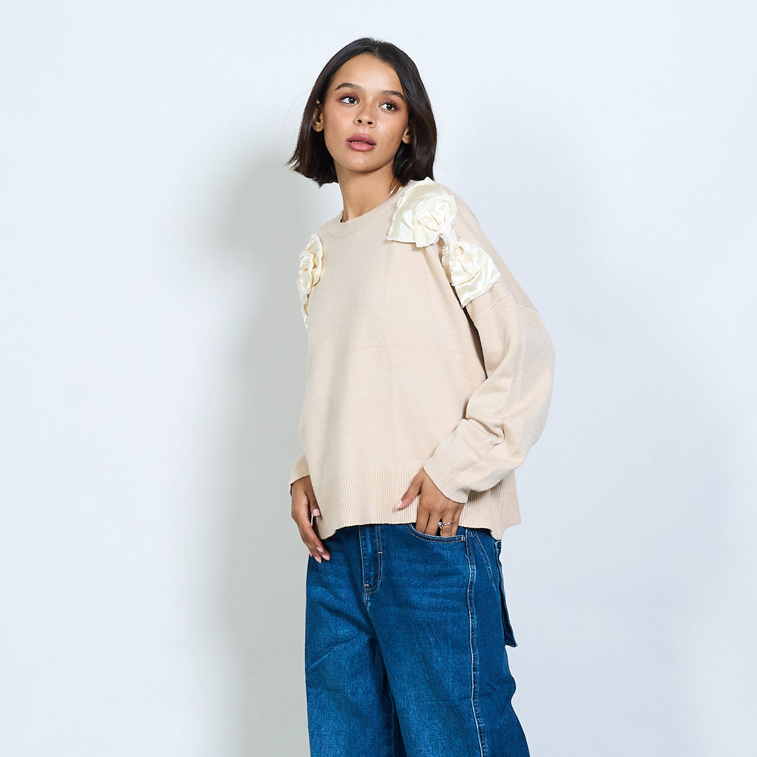 Pull en tricot avec détail en gros de l'épaule florale 3D