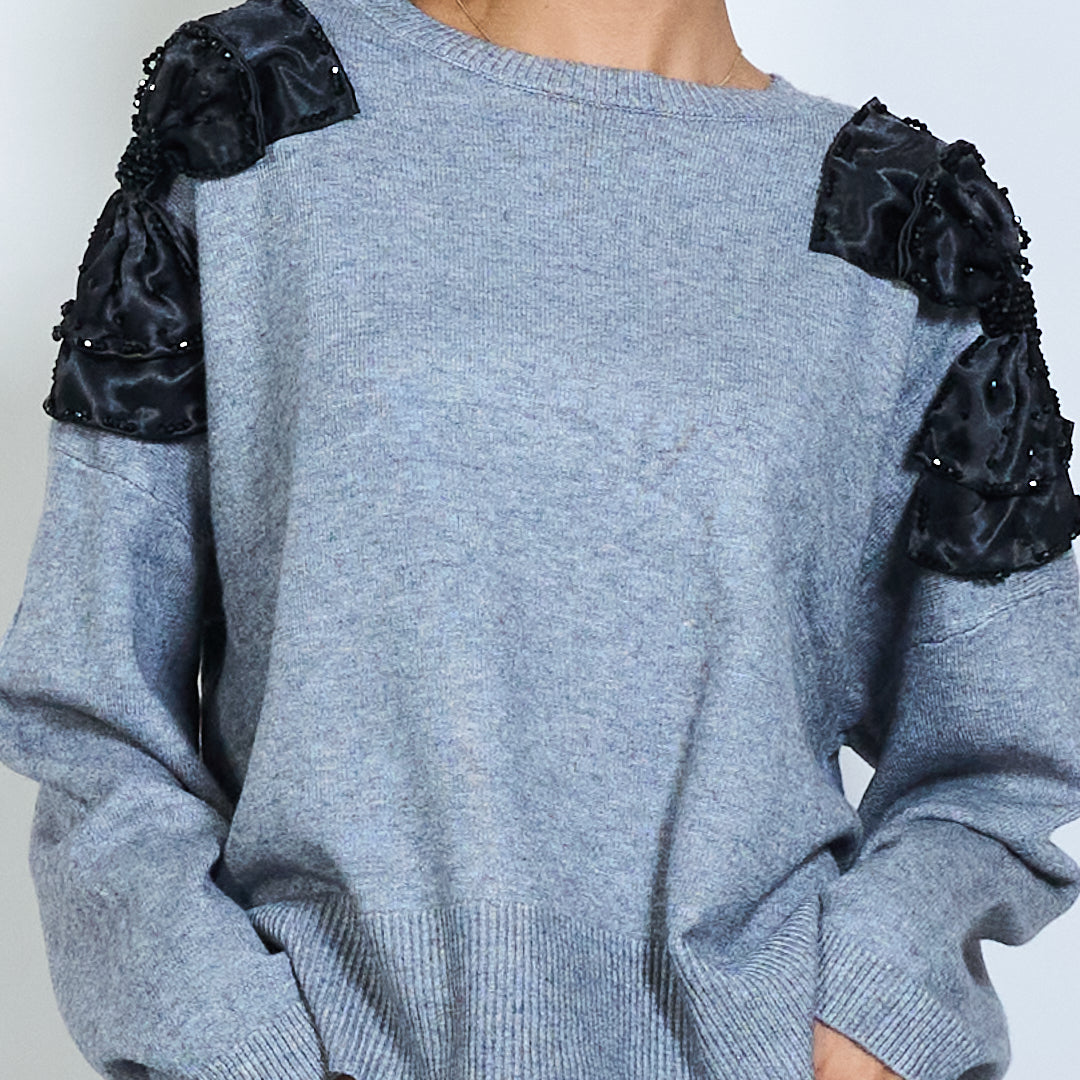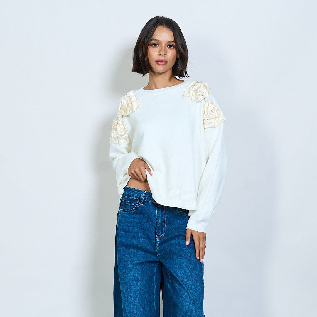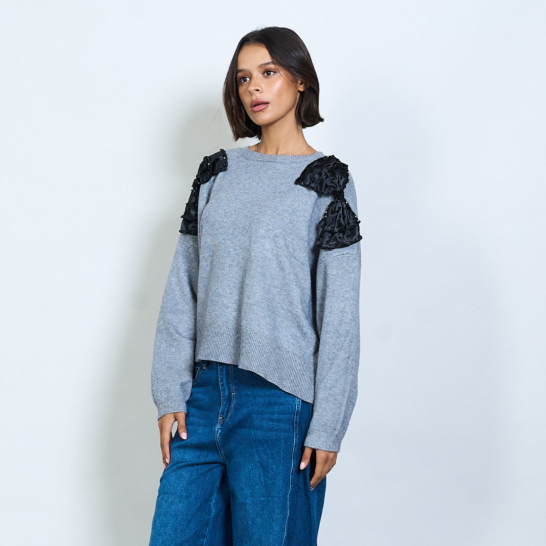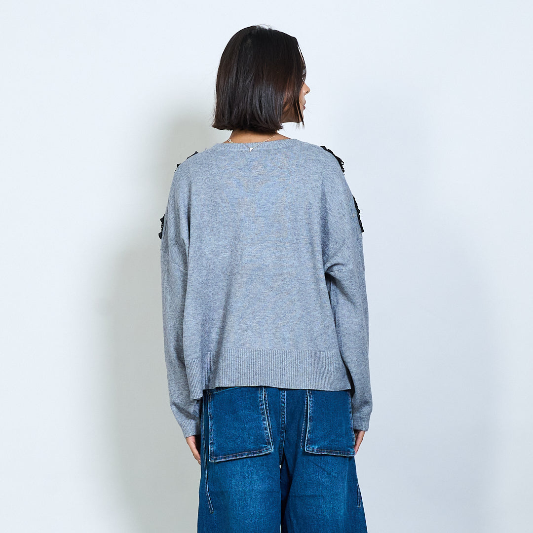 Pull en tricot avec détail en gros de l'épaule florale 3D
