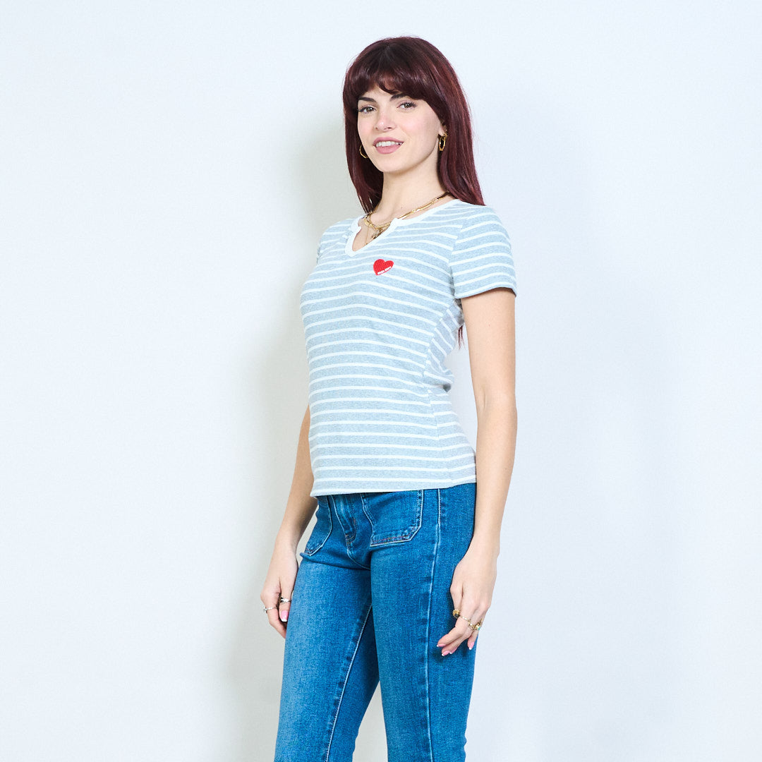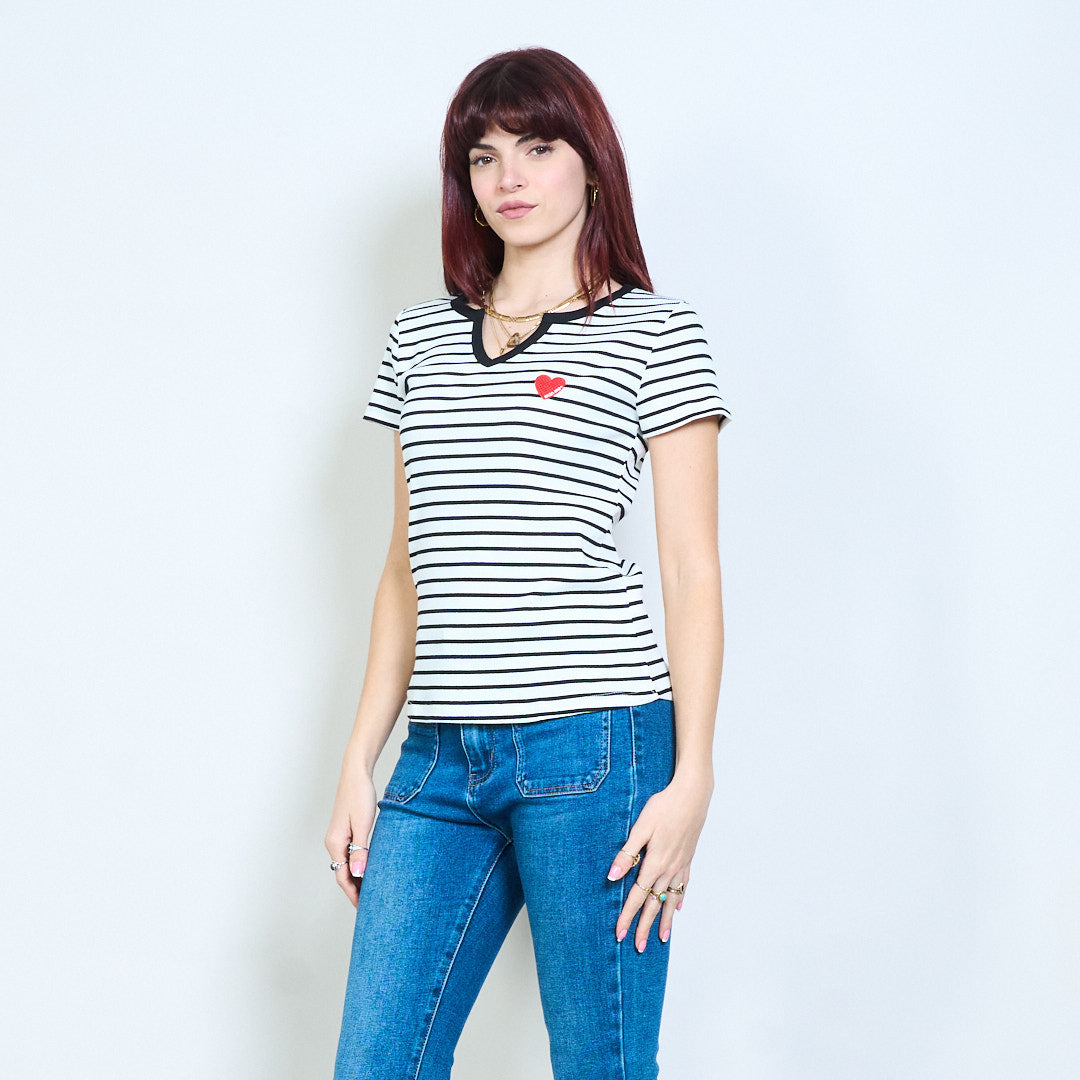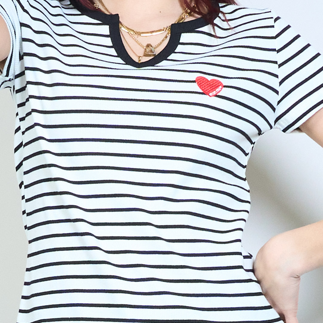T-shirt à manches courtes avec patch coeur rayé en gros