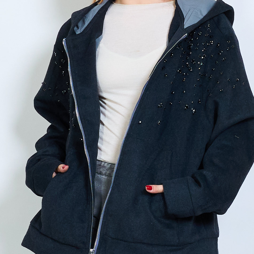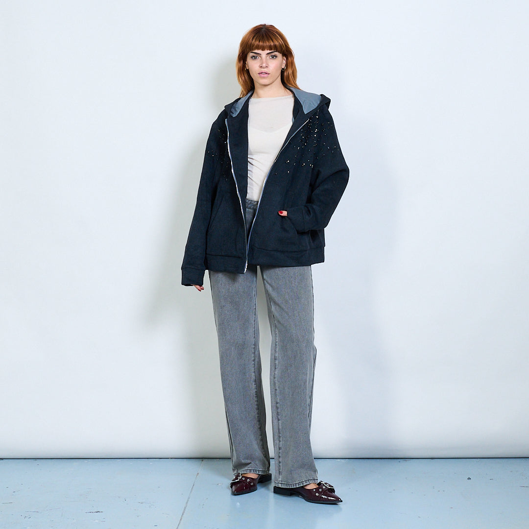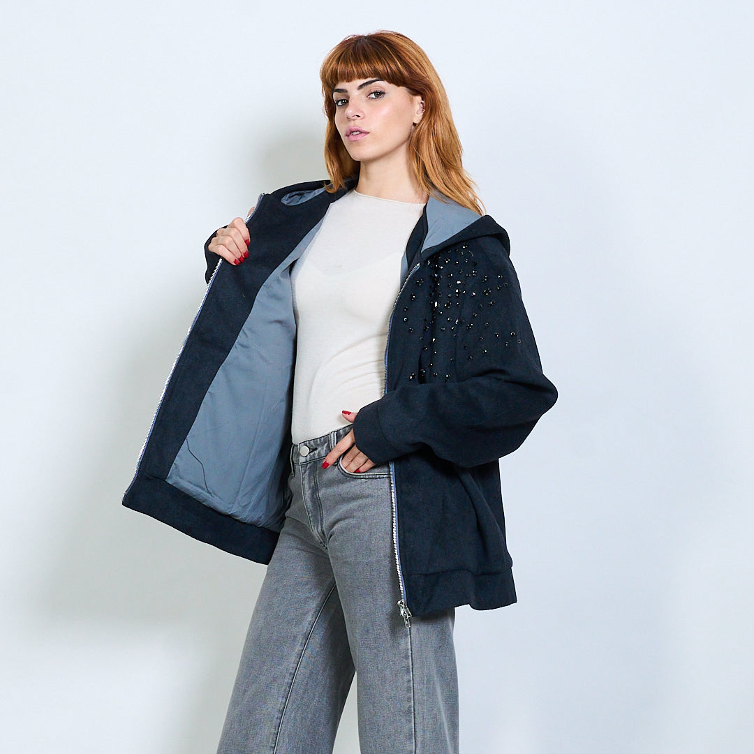Veste à capuche à capuche avec embellissements de cristal en gros