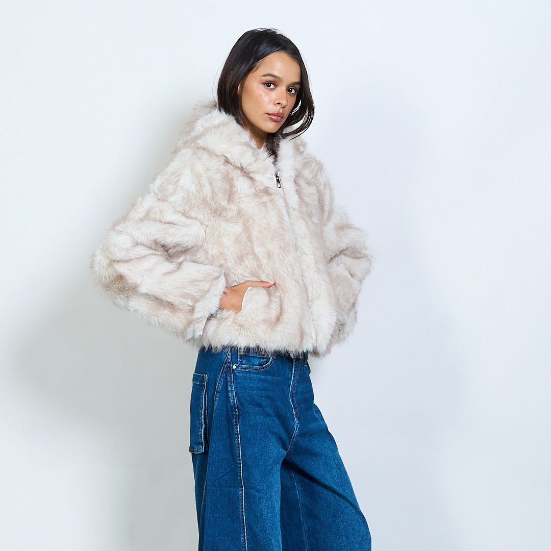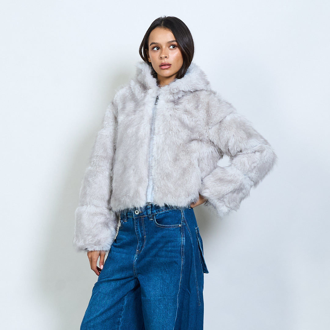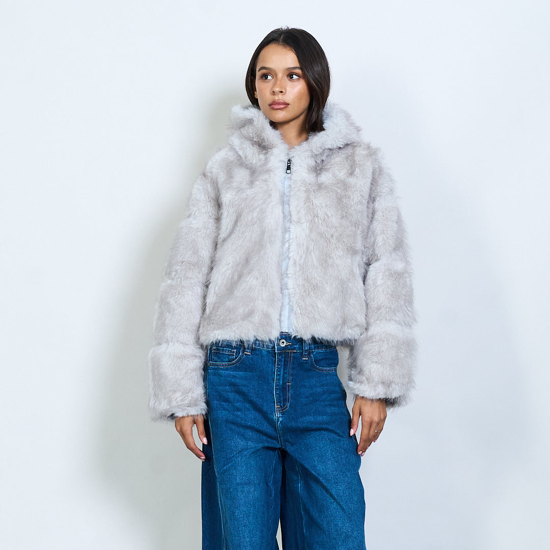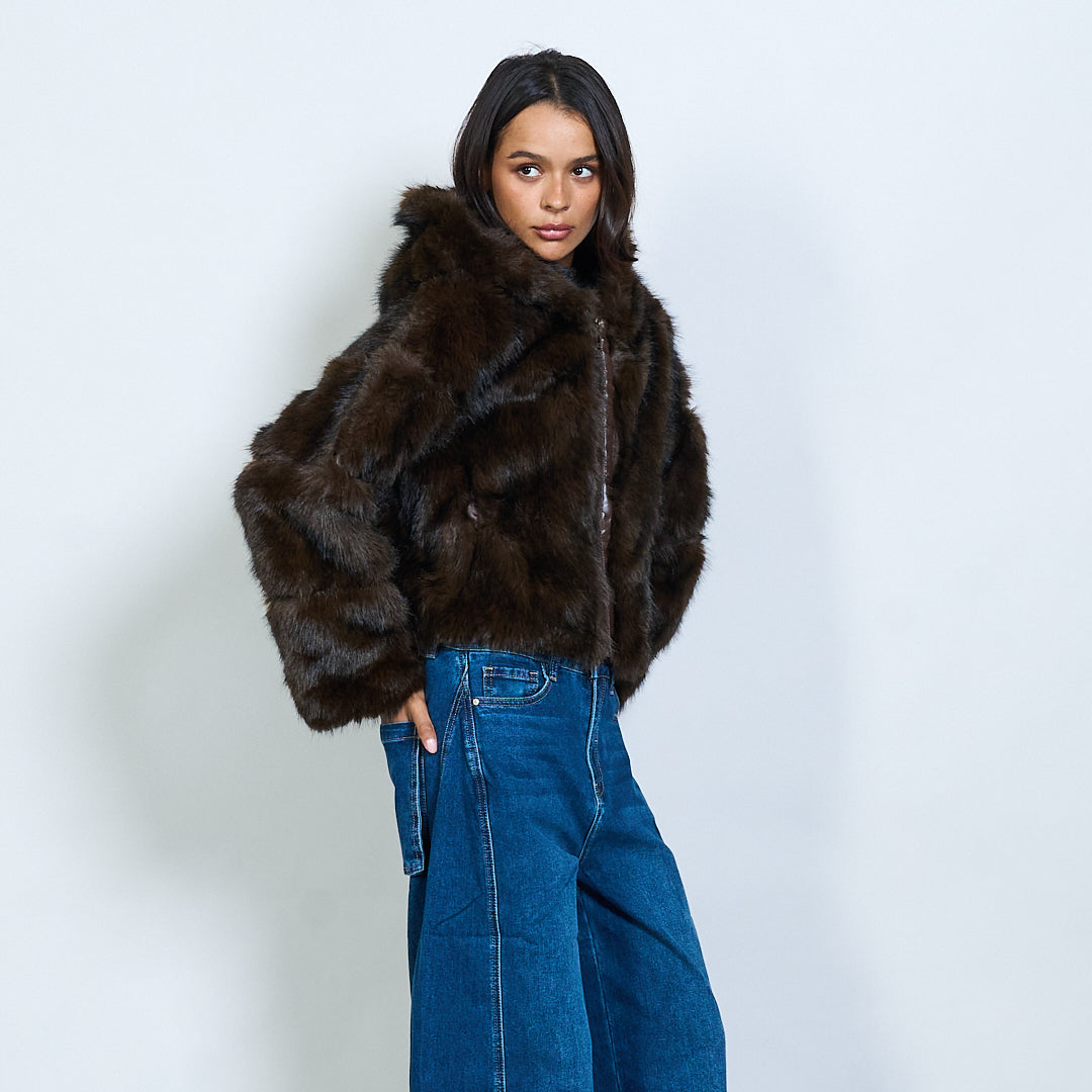 Veste à capuche en fausse fourrure avec fermeture à glissière
