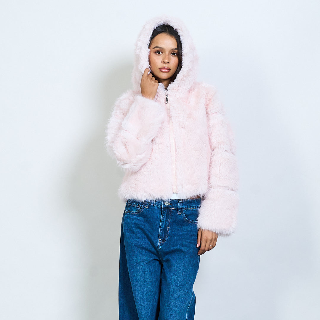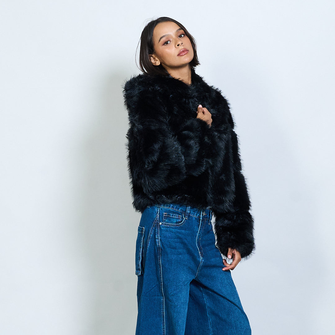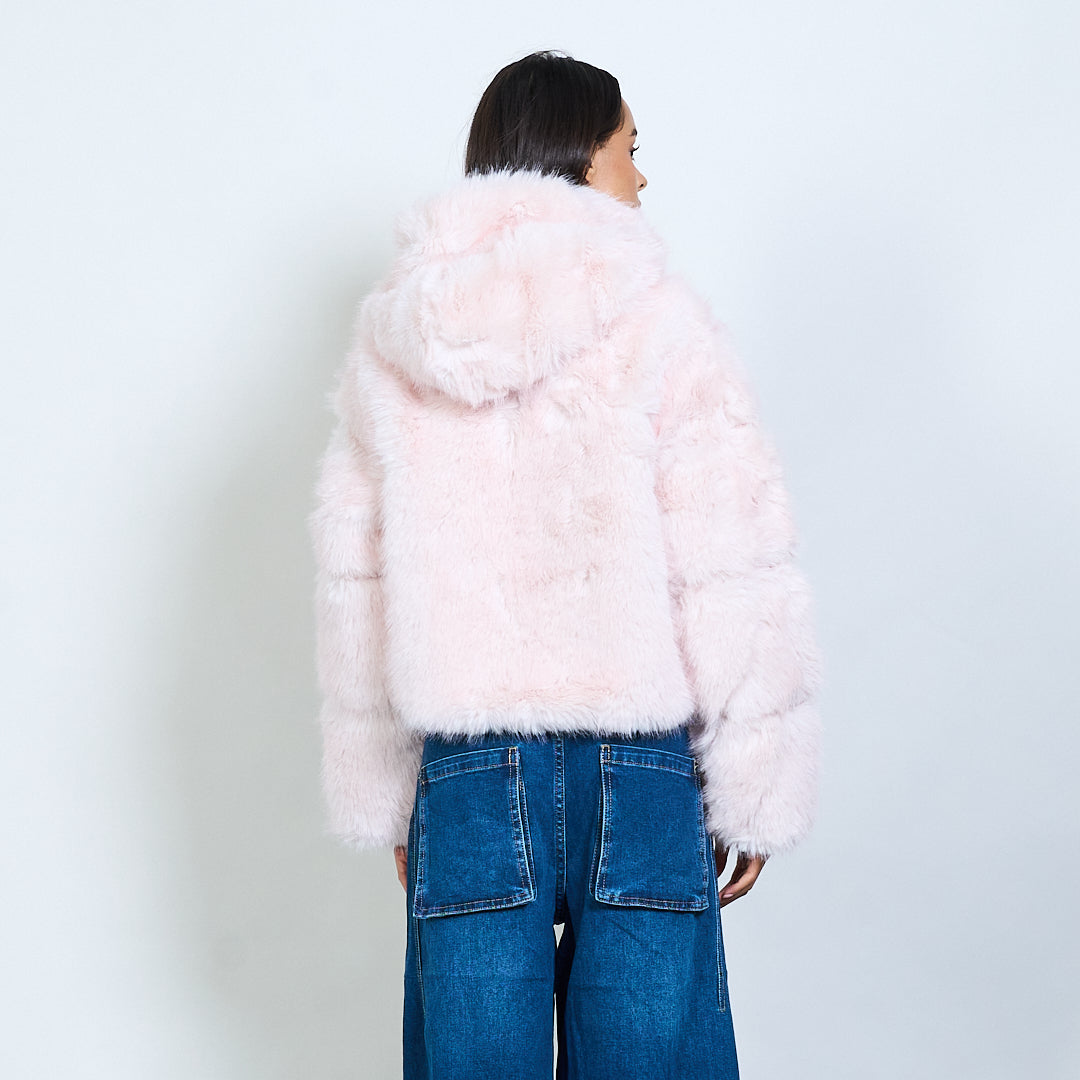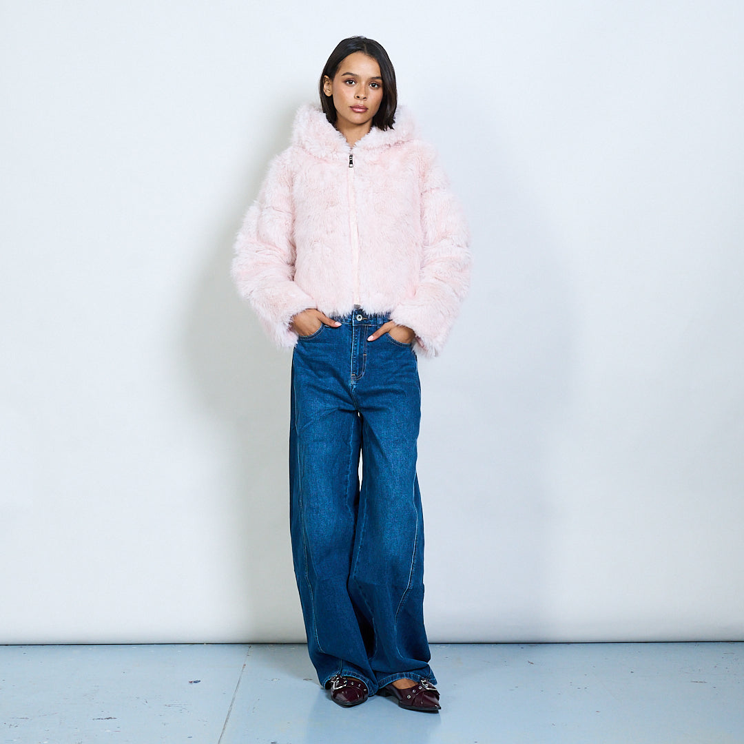 Veste à capuche en fausse fourrure avec fermeture à glissière