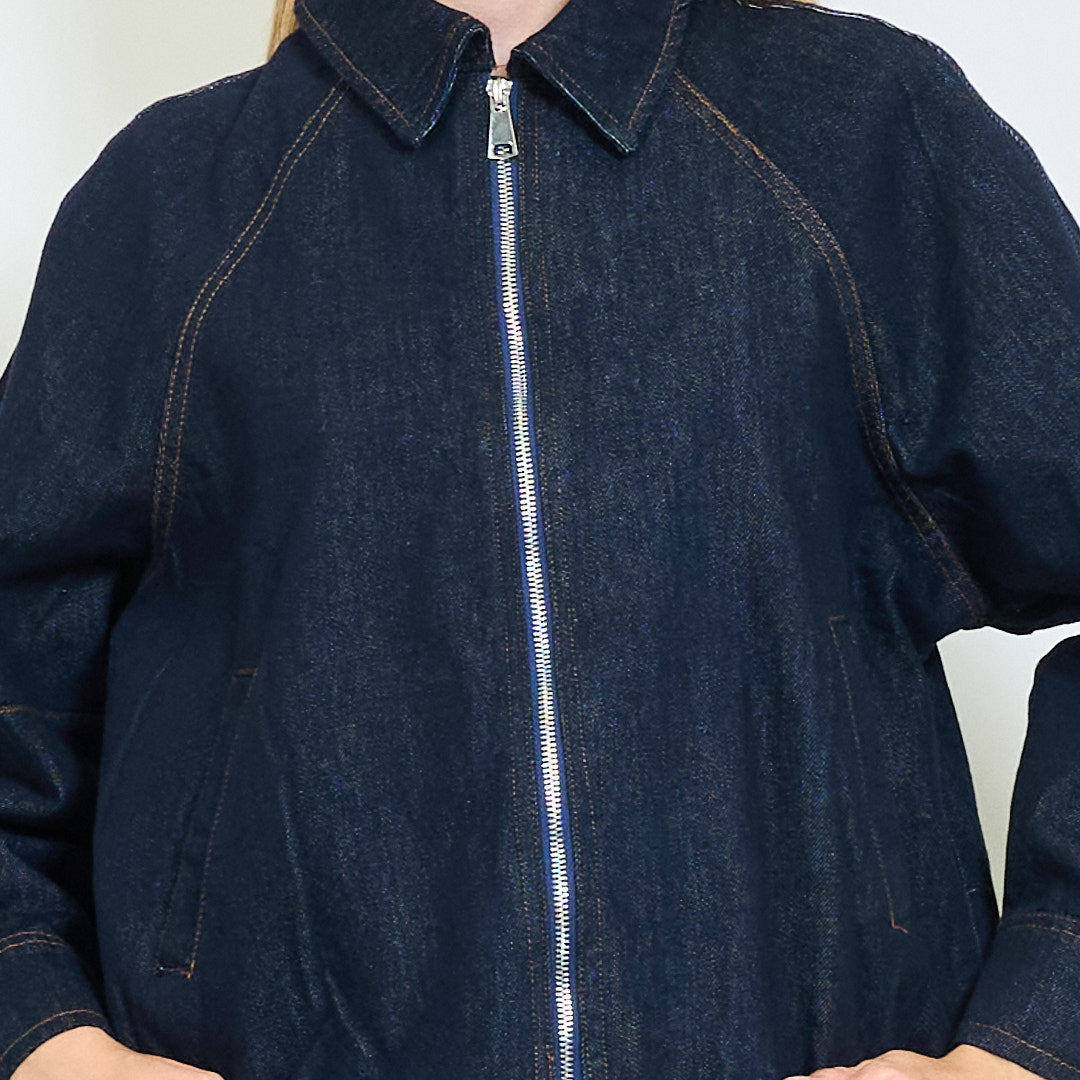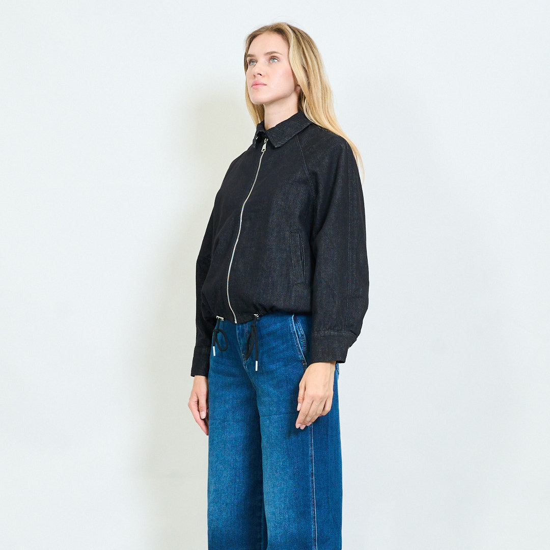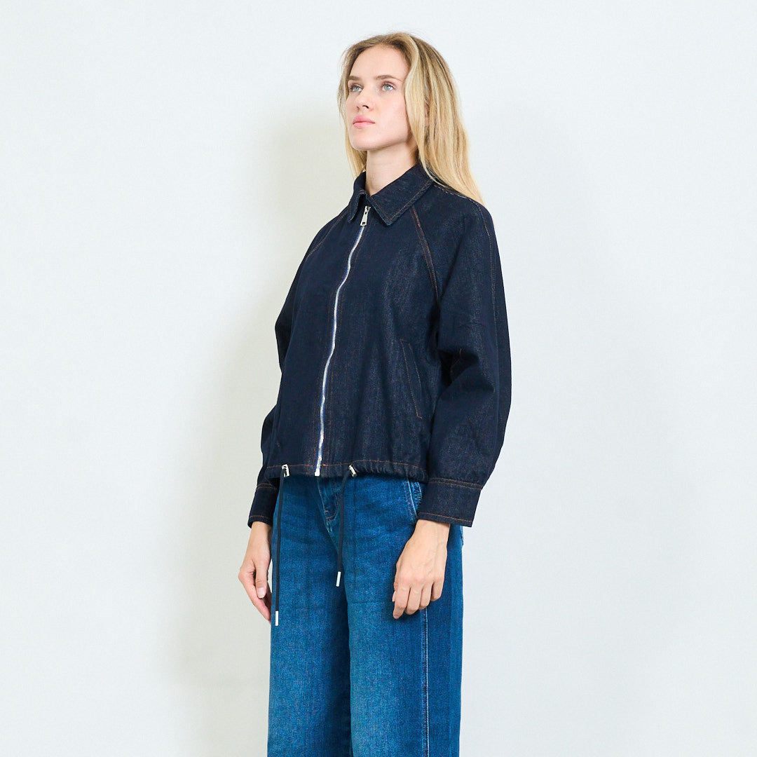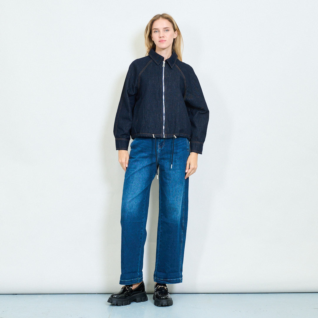 Veste en jean zip-up en forme détendue avec ourlet à cordon