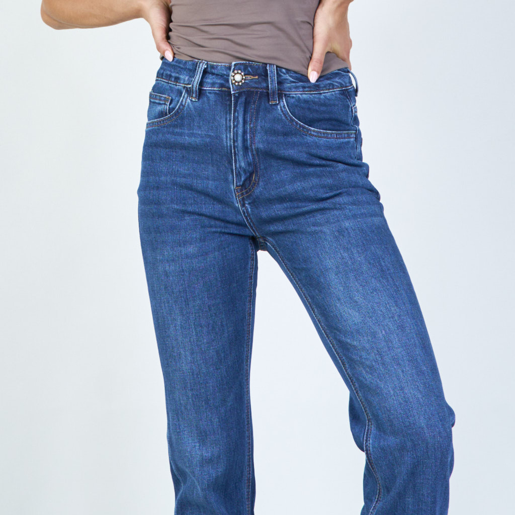 Jeans classiques à patte droite avec bouton de perle en gros