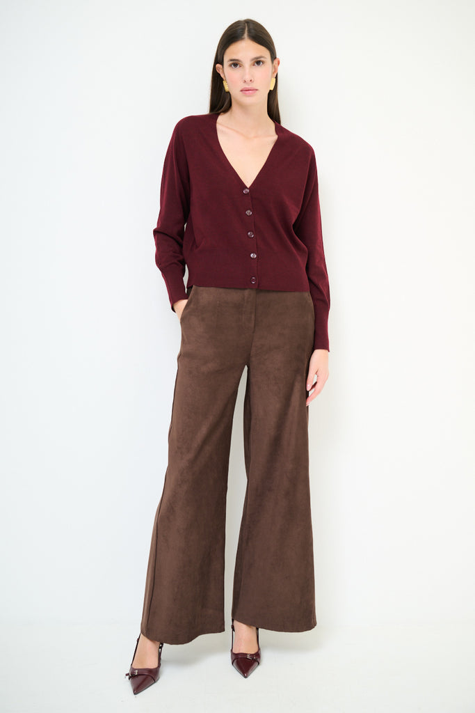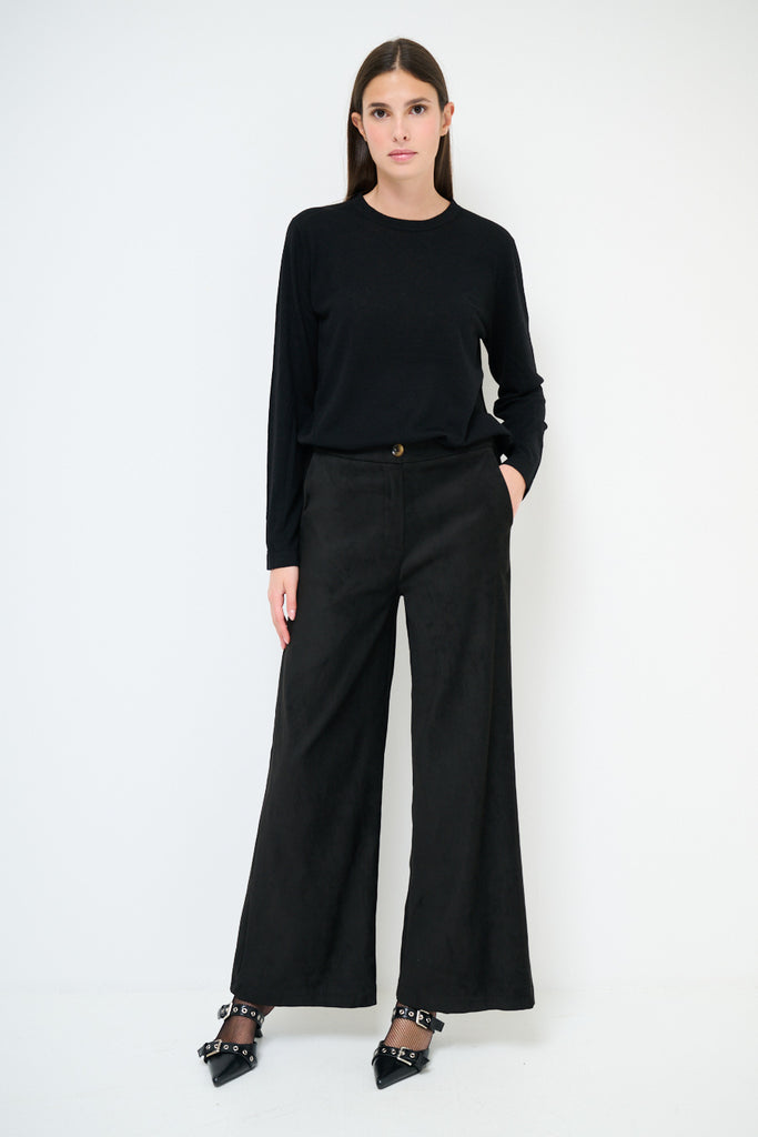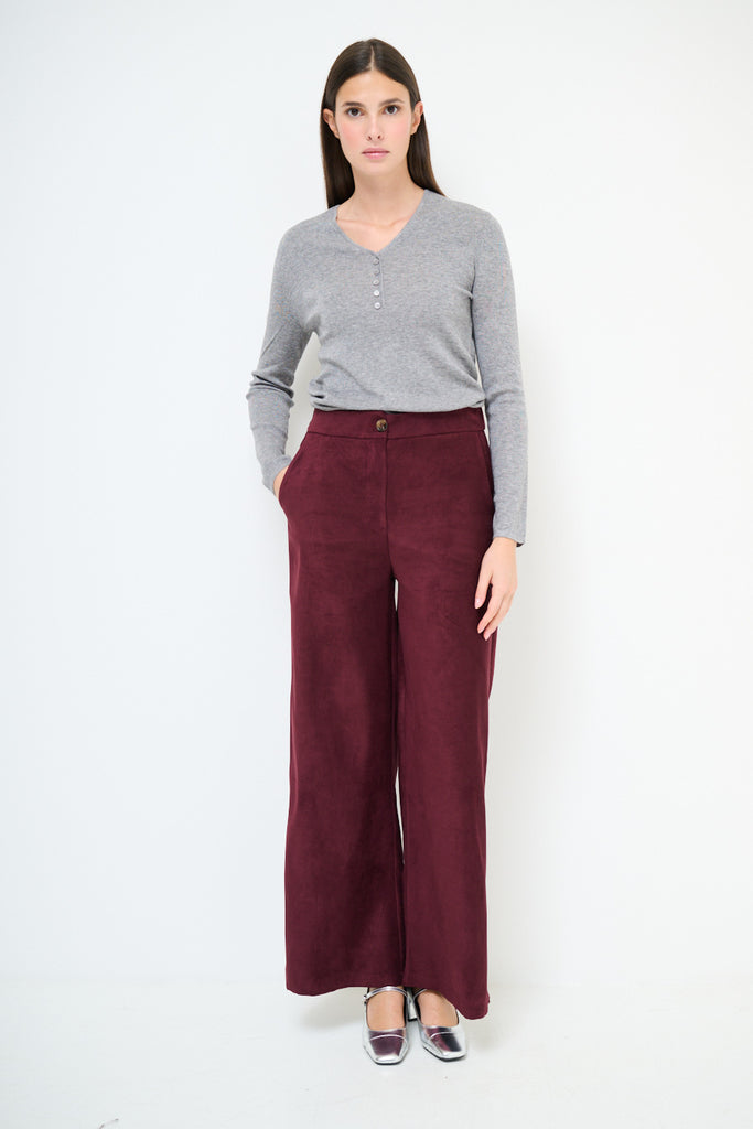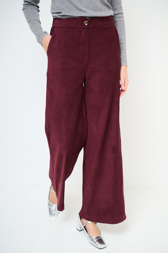 Pantalon sur les jambes larges en daim en gros de la jambe