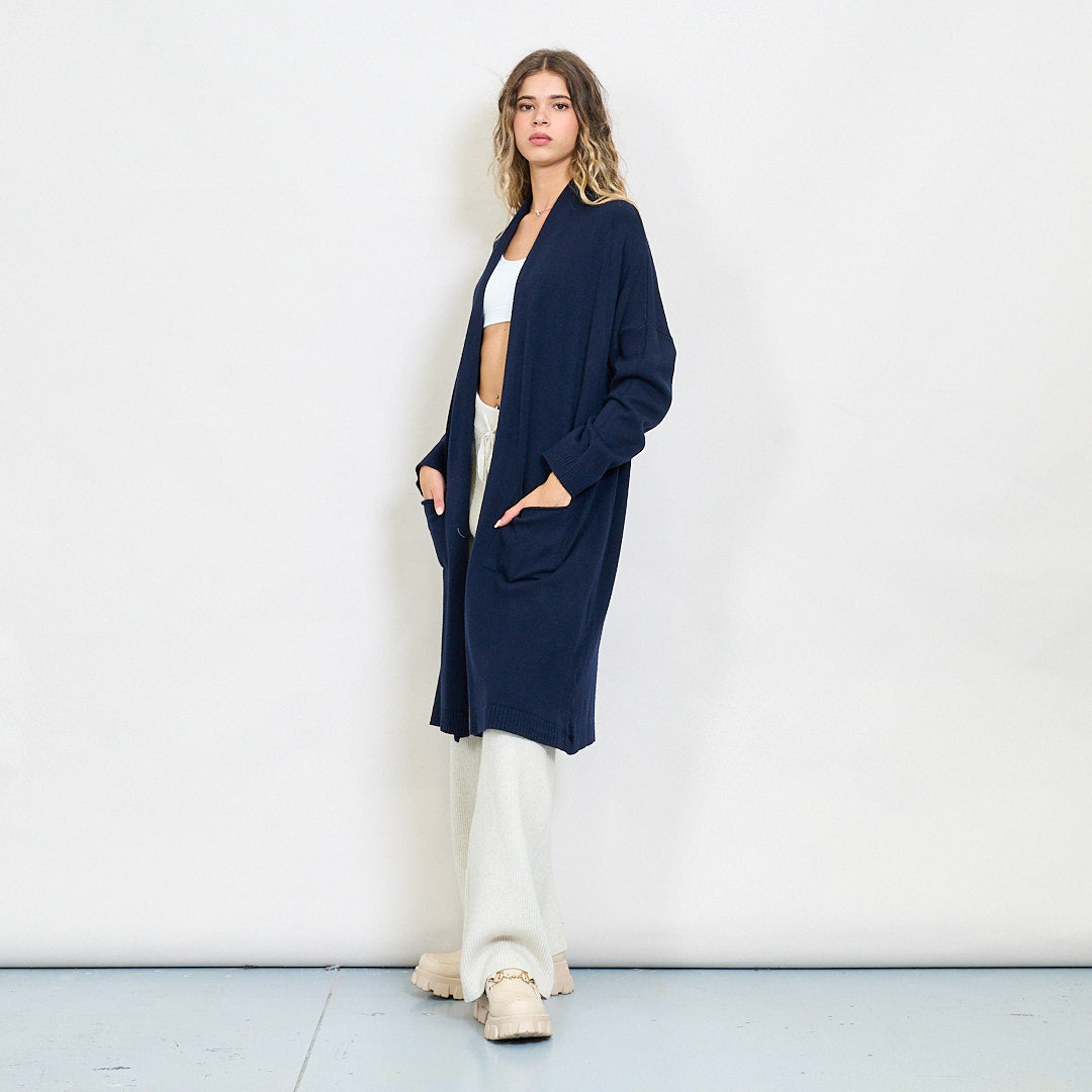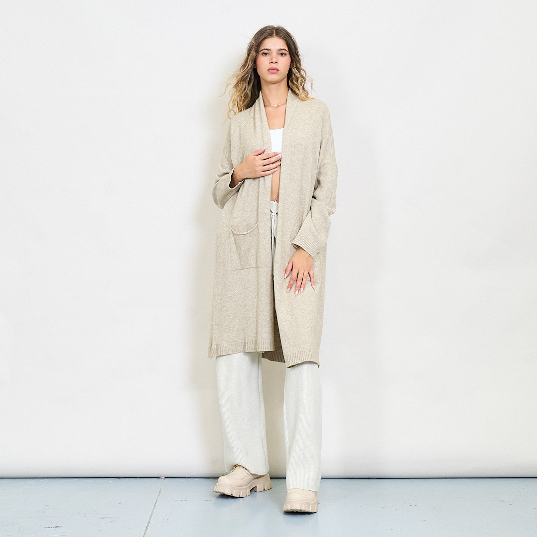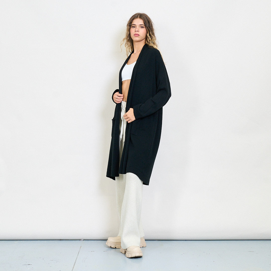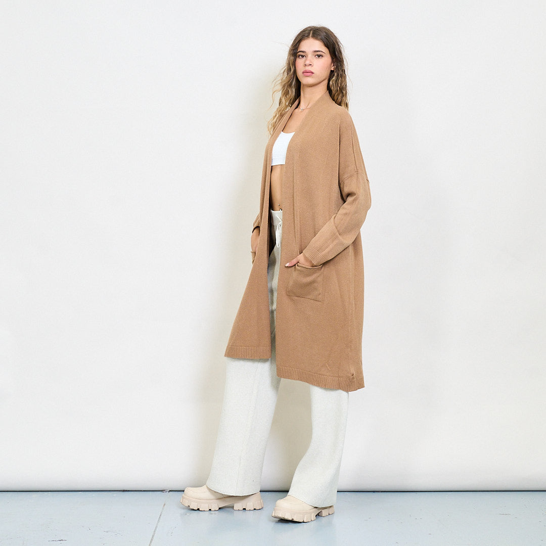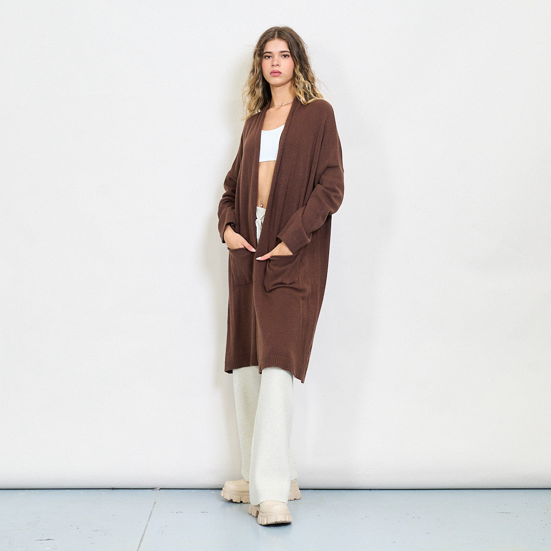 Cardigan en tricot avant ouvert long avec poches de patch en gros