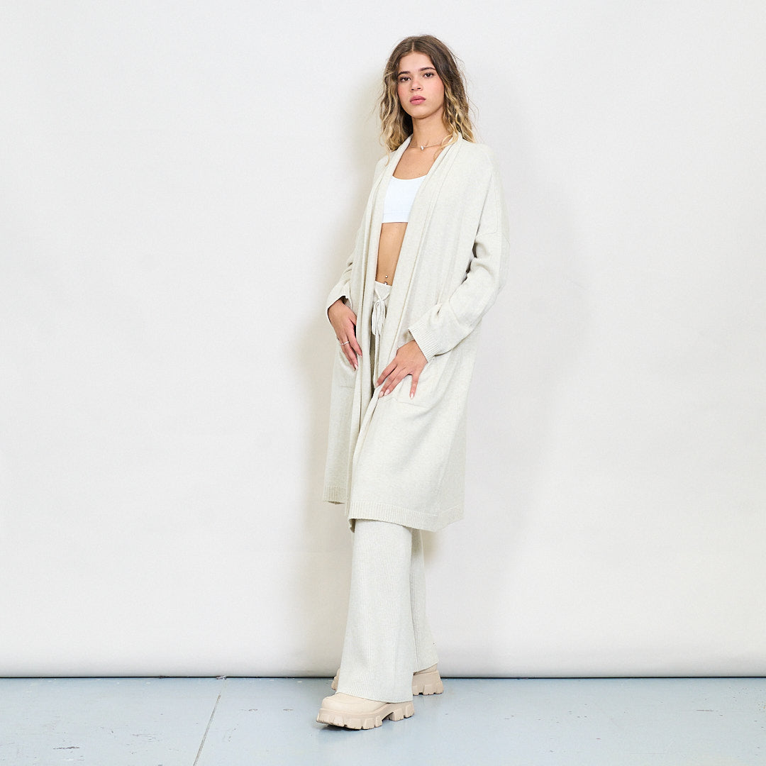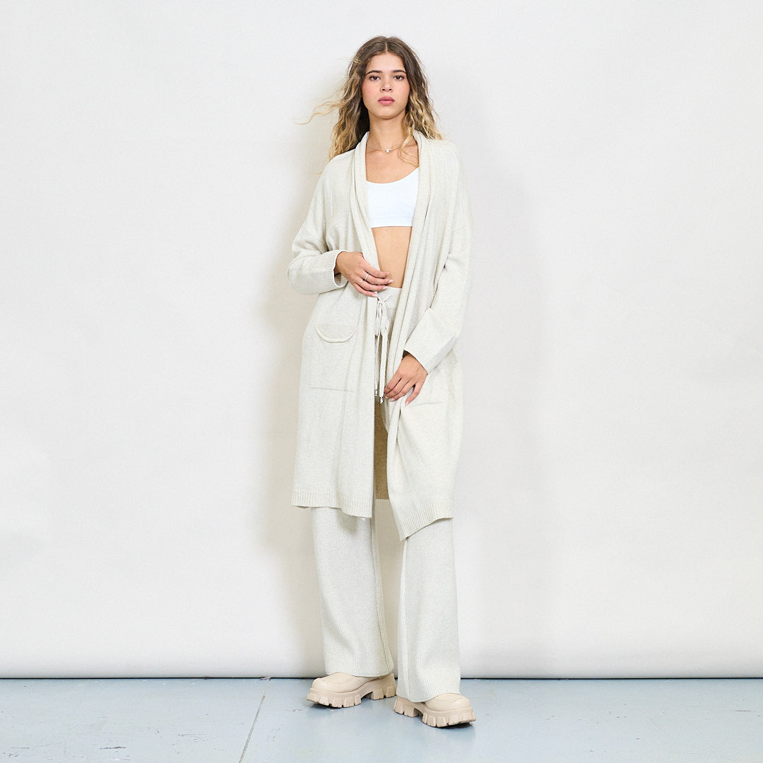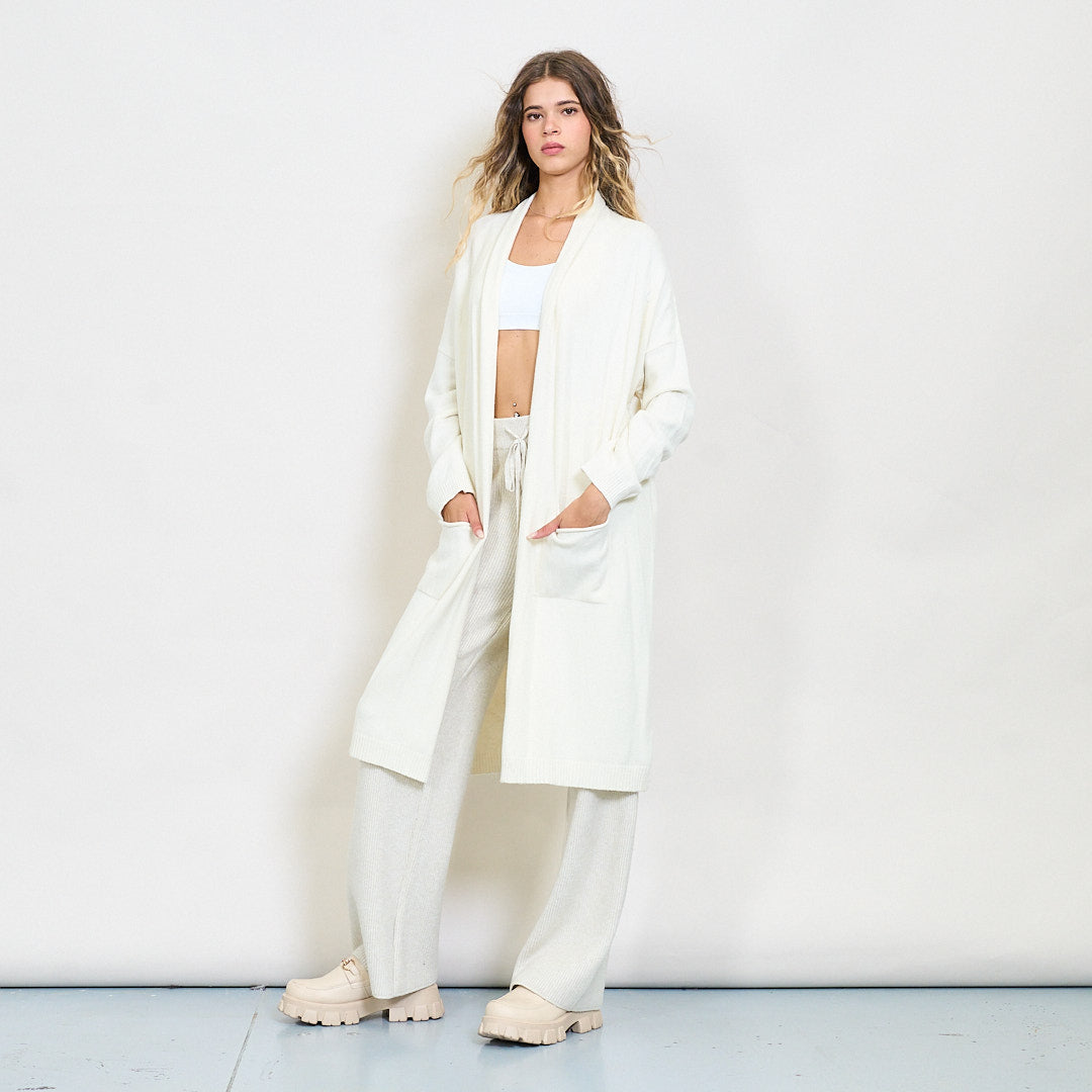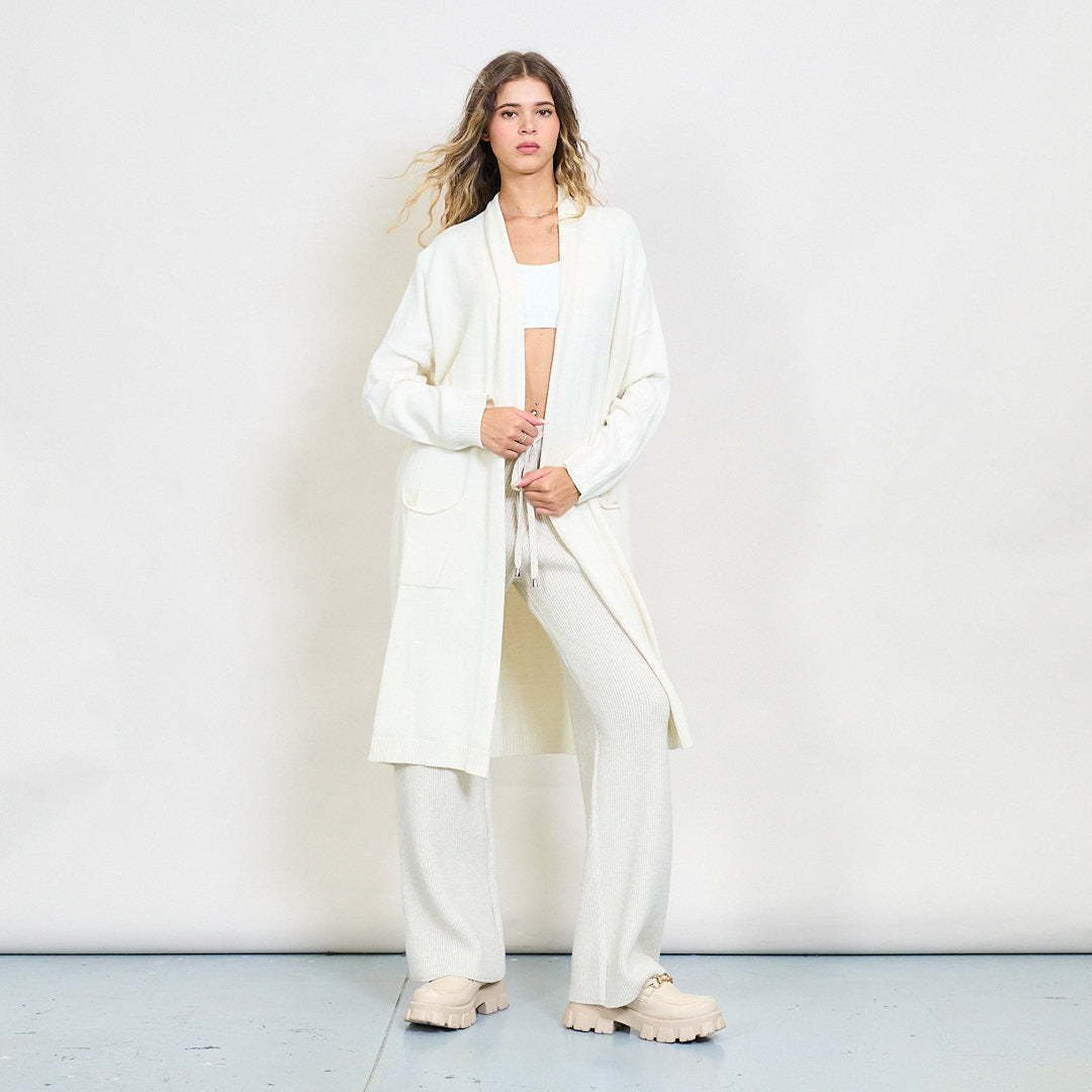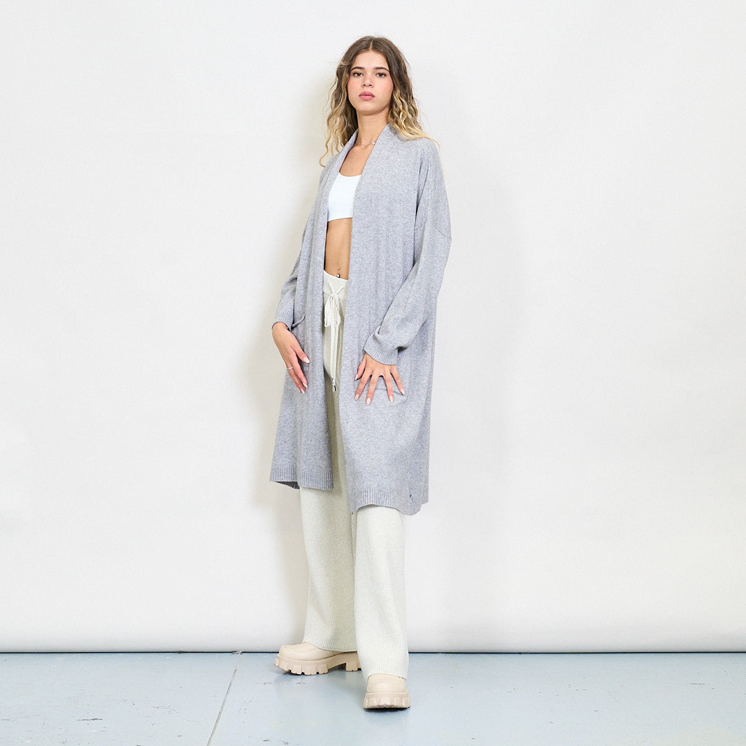 Cardigan en tricot avant ouvert long avec poches de patch en gros